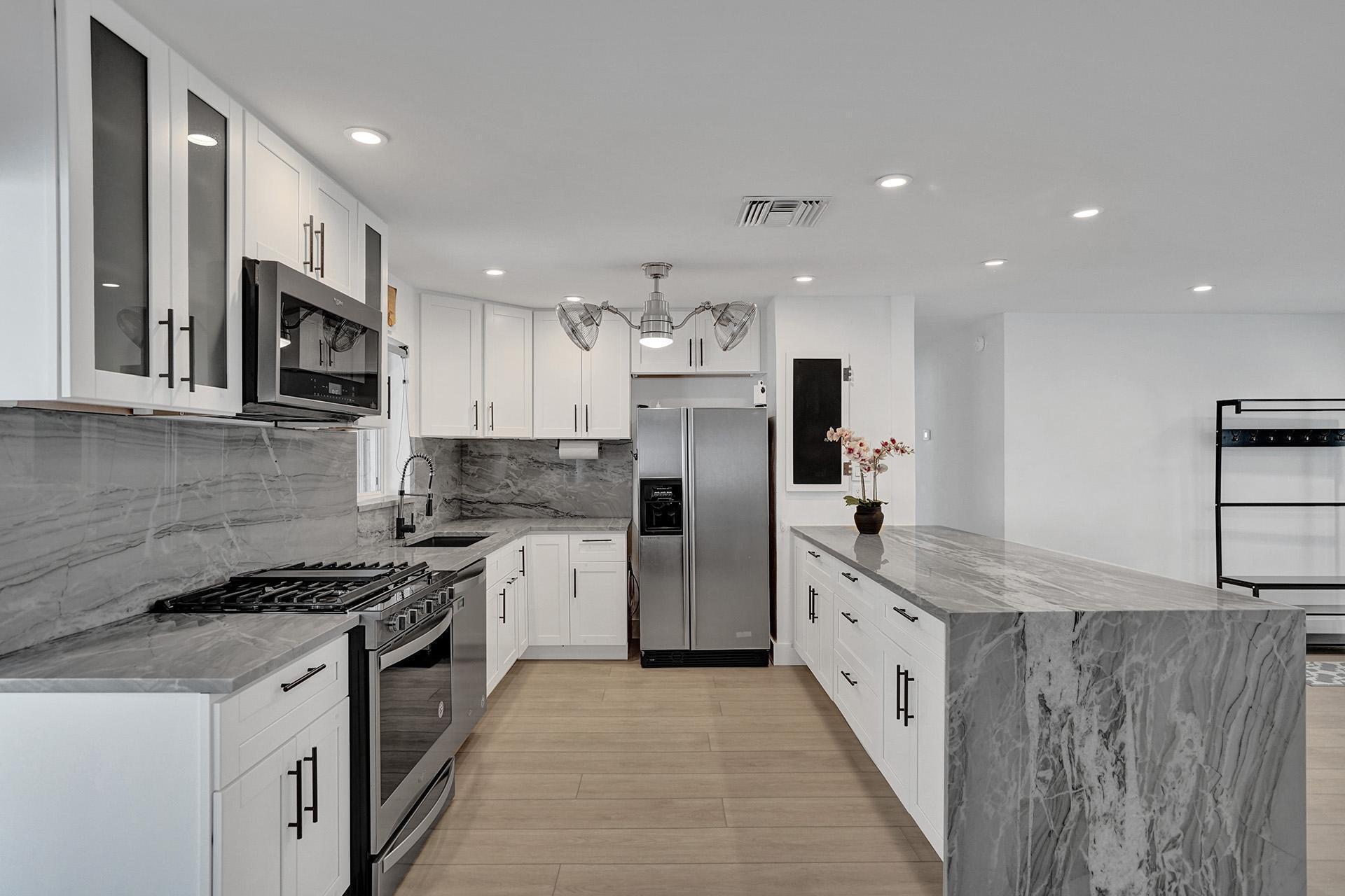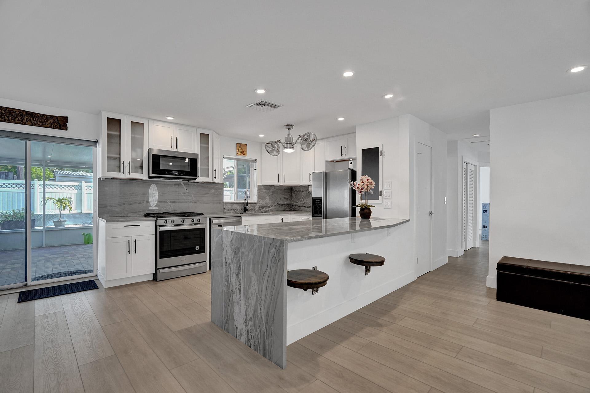 If you are looking for a modern forever home with a fully updated luxurious touch in a peaceful family neighborhood look no further, this is the home for you!Lots of love and imagination has been put into this house, Sellers have spared no expense in completely renovating this home. The property is located just east of Federal Hwy in the highly desirable and prestigious Santa Barbara Estates close to great restaurants, shopping and a short walk/bike ride to the beach! This 3 Bedroom 3 Bathroom and 2 car garage home contains a completely envisioned open concept living area and kitchen with quartzite countertops and top of the line stainless steel appliances (dishwasher, microwave, and gas stove are wifi connected). The home also features a Ring smart home system, security cameras,