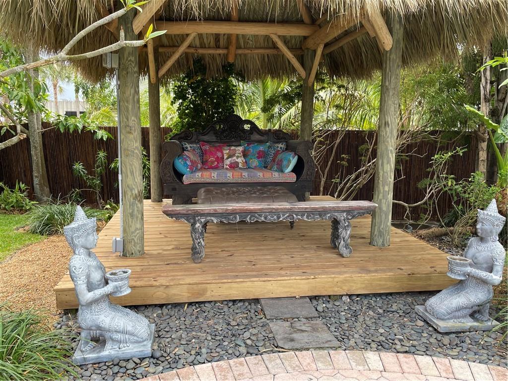 When you walk though the front door of this home you enter your own private oasis. This paradise located less than a block from the intracoastal is on an oversized lot with a pool and lush tropical landscaping, winding paths with canal water views. This home is perfect for intimate or large party entertaining with a large entry foyer opening into an open concept living, dining, kitchen area. It has 3 large bedrooms , 2 large baths and a powder bath, a separate laundry room which also doubles as a butlers pantry. All rooms in the back of the home have double French doors exiting onto the patio. The backyard has covered patios, a tiki hut, separate dining areas, multiple outdoor beds and outdoor storage. The garage was converted to use as add’l living space but can be converted back.