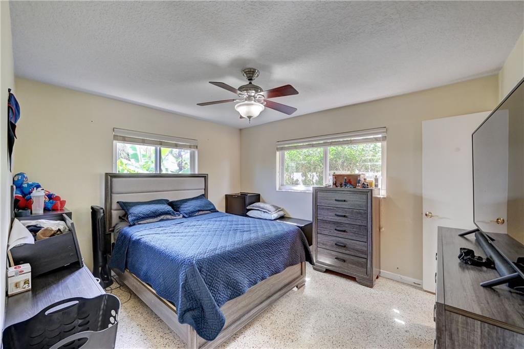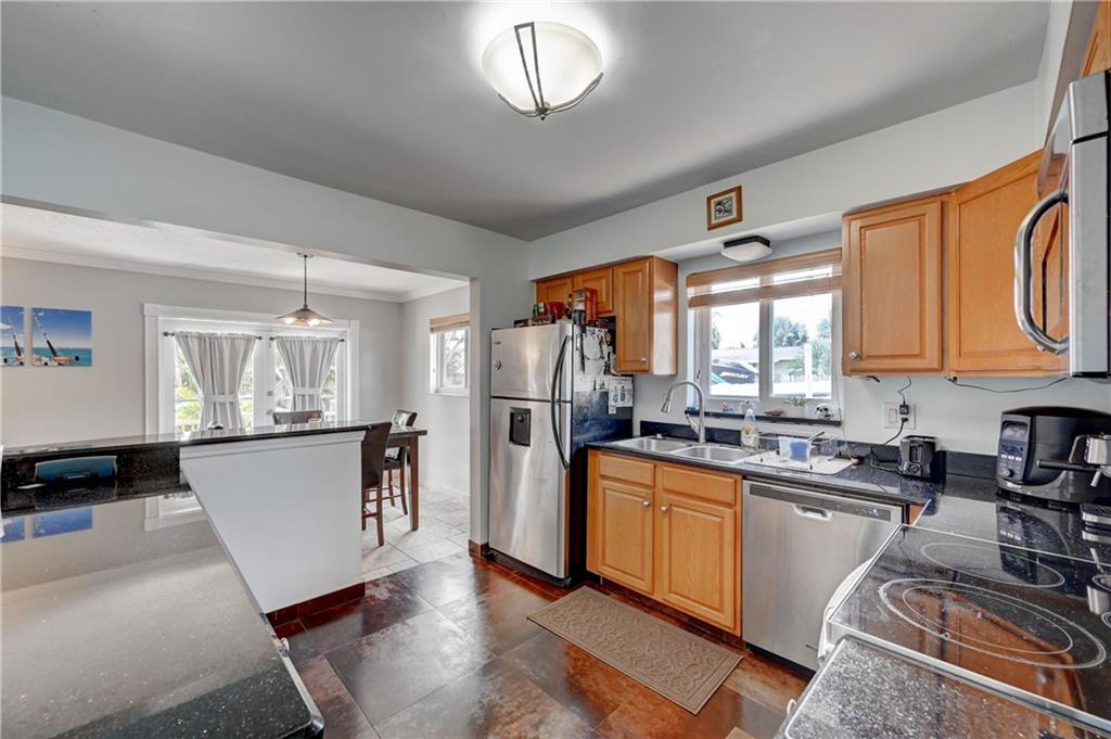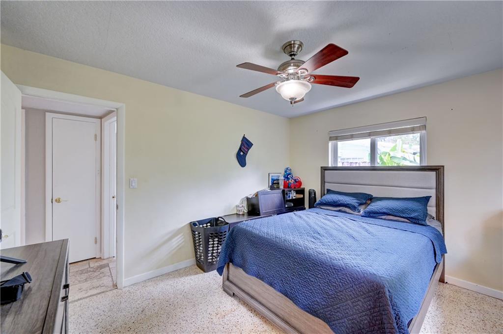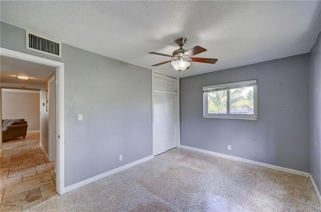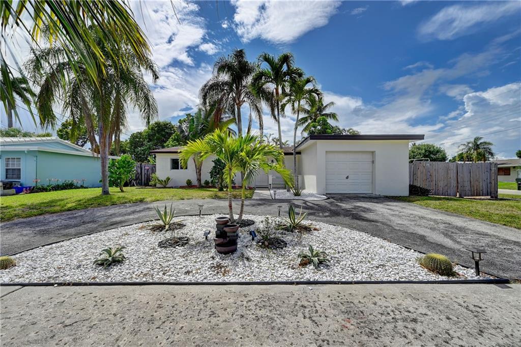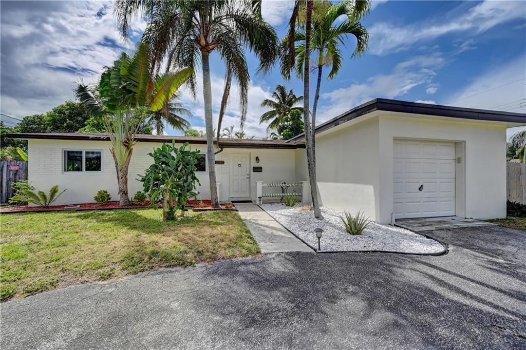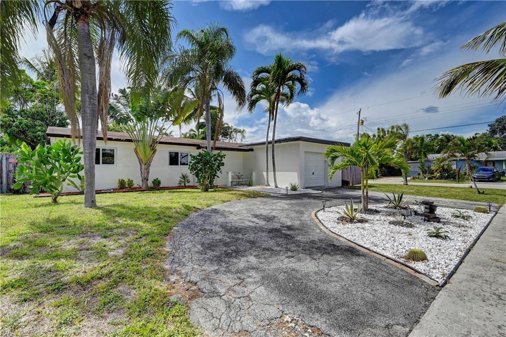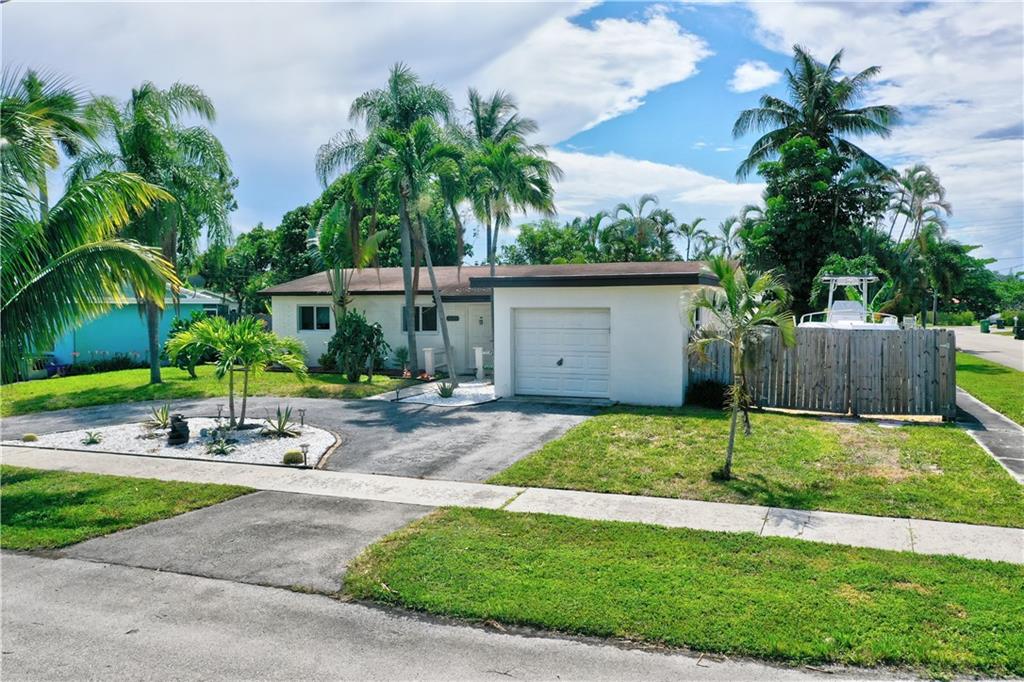 Corner lot 3 Bed/2 Bath house w/garage on 7,500 SF lot in Riverland. Kitchen updated w/ Granite countertops, slate tile floor, and Stainless Steel appliances (microwave over smooth top range, fridge with icemaker, dishwasher). French lay, tile flooring thruout rest of living areas w/Terrazzo in 2 bedrooms, & laminate in 3rd bedroom. Knockdown ceilings. Crown moldings. Large, interior closet. Impact windows throughout with 2 sets of French doors (panels) that lead to 23’ x 10’ tiled patio. Fully fenced yard w/double gate & side boat storage. Room for pool. Avocado & Banana trees. Updated electric. Roof 2007. Washer, dryer, & tank water heater in over-sized garage. Circular driveway on cul-de-sac street. Recently painted inside. Close to downtown Fort Laud/Las Olas, airport, I-95 & 595,