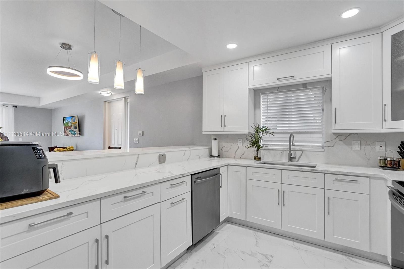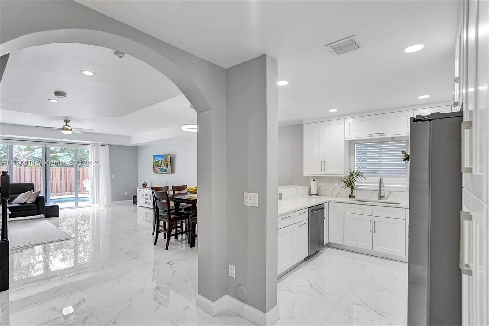 Amazing and rare corner townhouse in Coral Ridge. Completely updated two story Townhouse features 3 bedrooms and 2.5 baths with a private pool and an oversized 2 car garage. First floor consists of a brand new kitchen with quartz countertops and backsplash, half bath, large living room topped off with porcelain floors. All bedrooms are upstairs and have bamboo flooring, master bedroom has his and her closet with a large master bath (shower and a separate tub and dual sinks) with a private balcony overlooking the pool. Tall ceilings and impact windows and doors throughout. Great location with a short distance to the beach, shopping, restaurants and parks. Located in the "A-Rated" Bayview School district. No rent restriction and super low HOA fee ($55/month).