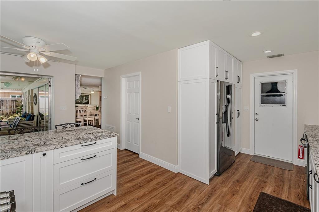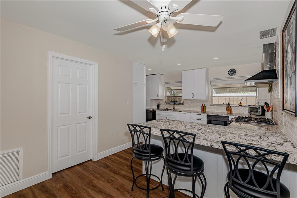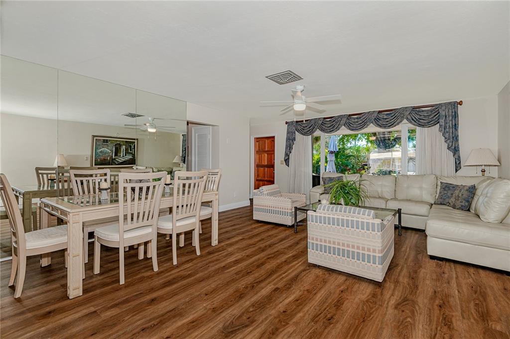 Lovely Pool Home in a Beautiful, perfectly located, and well-established neighborhood can now be yours! There are many recent updates including a gourmet kitchen with high-end stainless appliances, a gas stove, and tons of cabinets and storage space, as well as all new flooring throughout. The two bathrooms have been updated while keeping some Mid-Century charm. The 2-car garage is spacious and has lots of storage cabinets. This is a very friendly and quiet neighborhood, but You will really love dining by the sparkling, heated pool in your private lanai.