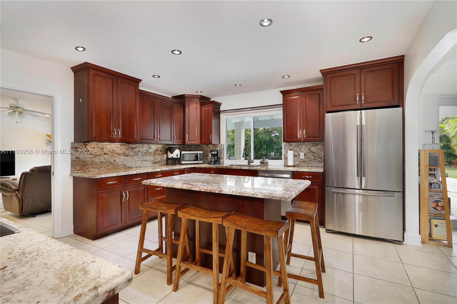 Situated in the heart of Pinecrest, this 3,790 SF home includes 5 BRs, 3 BAs, & has been beautifully renovated, making it the perfect, move-in-ready property! The traditional floor plan is so inviting w/ formal liv & din rms, spacious family rm overlooking the patio & pool, & lovely kitchen w/ breakfast rm. It also includes a split BR plan, w/ 4 BRs to one side and 1 BR& BA located privately to the other side of the home. The ample primary suite has French doors to the patio, large & well-appointed bathroom, walk-in closet, & room for a seating area. Located on a 17,642 SF lot w/ a deep covered patio, pool, & tons of entertaining space, this home also features all impact glass, newer roof, new electrical panel, laundry rm, 2 car gar & much more, making it ideal to just move right in!