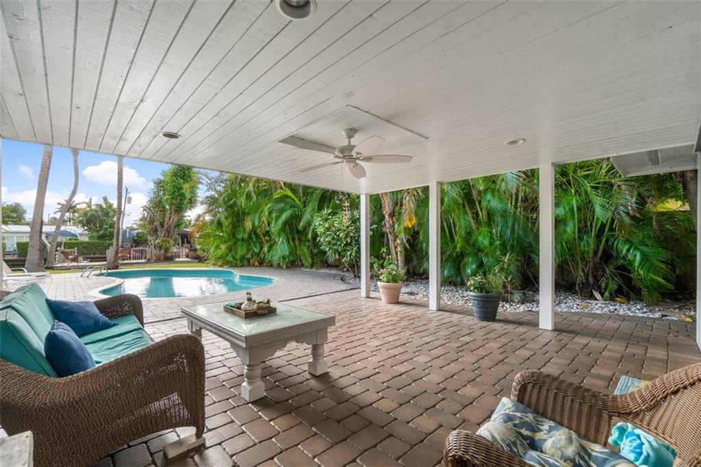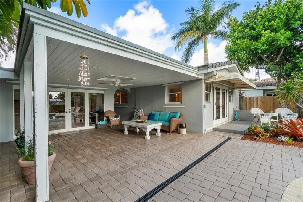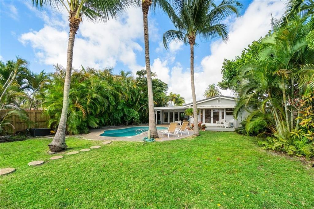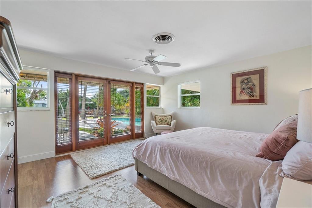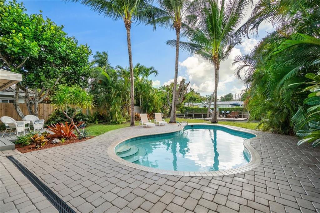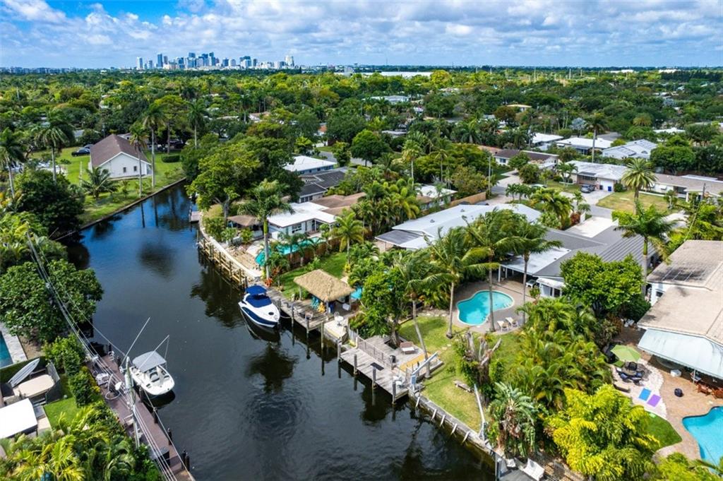 Spacious open floor plan w/ sparkling pool and water views from Living area and Primary bedroom. Living area boasts vaulted ceilings, original fireplace enhanced w/ custom built-ins. Newer open kitchen w/ quartz counters, stainless appliances, and breakfast counter. Gracious covered patio. Tile Roof 2018, AC 2020, and updated electric panel. Situated on oversized 11,027 SF lot!! 180’ deep w/ 60’ of frontage, 26’ boat dock, deck, and davits. Waterfront lifestyle of kayaking, paddleboarding, jet skiing and boating awaits with direct access to the Middle River and just 2 fixed bridges to the Intracoastal & Ocean. Huge circular driveway, plus oversized two car garage w/new impact garage door. Poinsettia Hgts is one of the most sought after areas of FTL with an ultra convenient location!