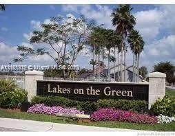Start planing your move now as this cozy 3/2 located at Lakes on the Green in Miami Lakes area with 24/7 staffed security and vast open park behind it will be available to move in August. Build in 1994 and updated throughout the years, this 2,200 sq ft home feature an updated Indian River Oak cabinets, tumbled Jerusalem marble back splash and natural gas for an incredible cooking experience. The central Air is brand new too. It has 20"tile throughout the house and the master bathroom features dual sinks and spacious walk-in closet. One of the nicest feature of the property is the privacy you get as it backs up to the a park where nothing will ever built. The family room features sliding doors on two sides and plenty of bright sunlight to make the house a special find.