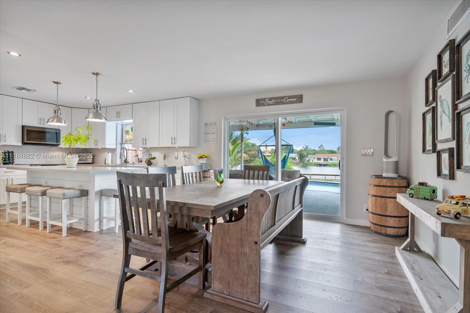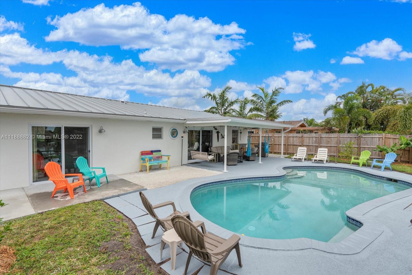 This is Waterfront living at its Best! Renovated 4 bedroom 2 bathroom home in Palm Aire Village is ready for your enjoyment. It has an open floor plan with water views, new flooring throughout, a brand-new kitchen & a new metal roof with a 50-year warranty. The kitchen features wood cabinets, stainless steel appliances, recessed lighting & quartz counters. The large primary suite has an amazing water view, access directly out to the pool & an expansive walk-in closet w/dressing area. Outside there’s a covered patio, pool, fruit trees & plenty of green space. Available w/furniture, exclusions apply. There’s plenty of parking with the garage and circular side driveway. Excellent neighborhood w/ NO HOA! Short Drive to the Beach, shopping, I-95 & the turnpike.
