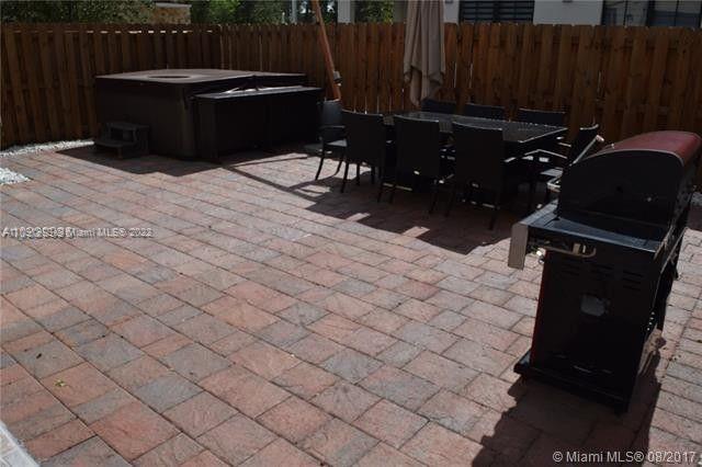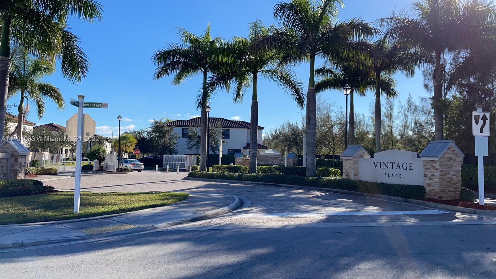 Luxury spacious and bright single corner home with 24x24 porcelain and walnut antique wood floor on stairs and second floor upgrades in the great gated community Vintage Place. Prestigious area in Doral with two club houses, pools, fitness center, sauna, cable and basic internet included. Excellent proximity to highways, banks, shopping and A+ schools. Modern and open layout 3 beds/2,5 baths, large yard and covered living room on patio. Modern style open kitchen with quartz countertops, stainless steel GE appliances. Nice and spacious backyard with brick pavers, custom blinds. Excellent opportunity to move in. Property will be vacant on September 4.