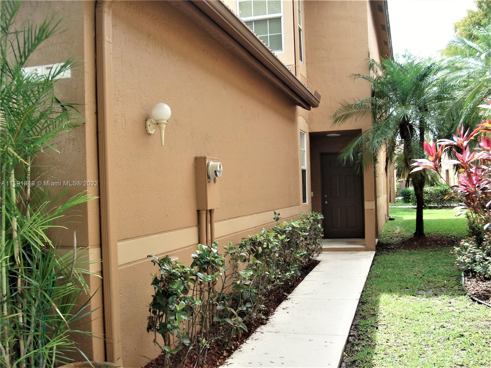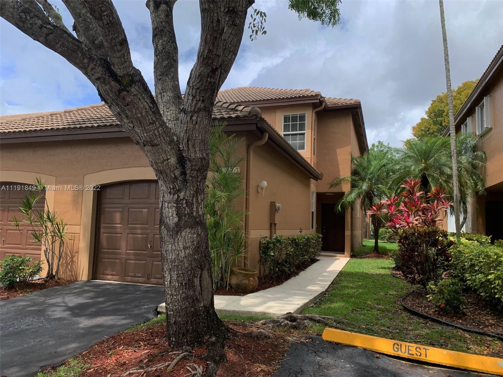 Great opportunity to own this wonderful 2-story, corner unit , 2 bedrooms/ 2.5 baths townhouse in desirable San Sebastian in Weston. It features brand new upgraded laminate floors on stairs & 2nd floor, all popcorn ceiling has been removed, new ceiling light fixtures, brand new washer/dryer. First floor is tiled. All bedrooms are upstairs. Has screened patio with garden view, one car garage and one additional parking in driveway. All "A+" rated schools in Weston school district. Community has pool, playground, sidewalks and lots of lush green common areas. Easy access to major highways. Easy to show. Make it yours!