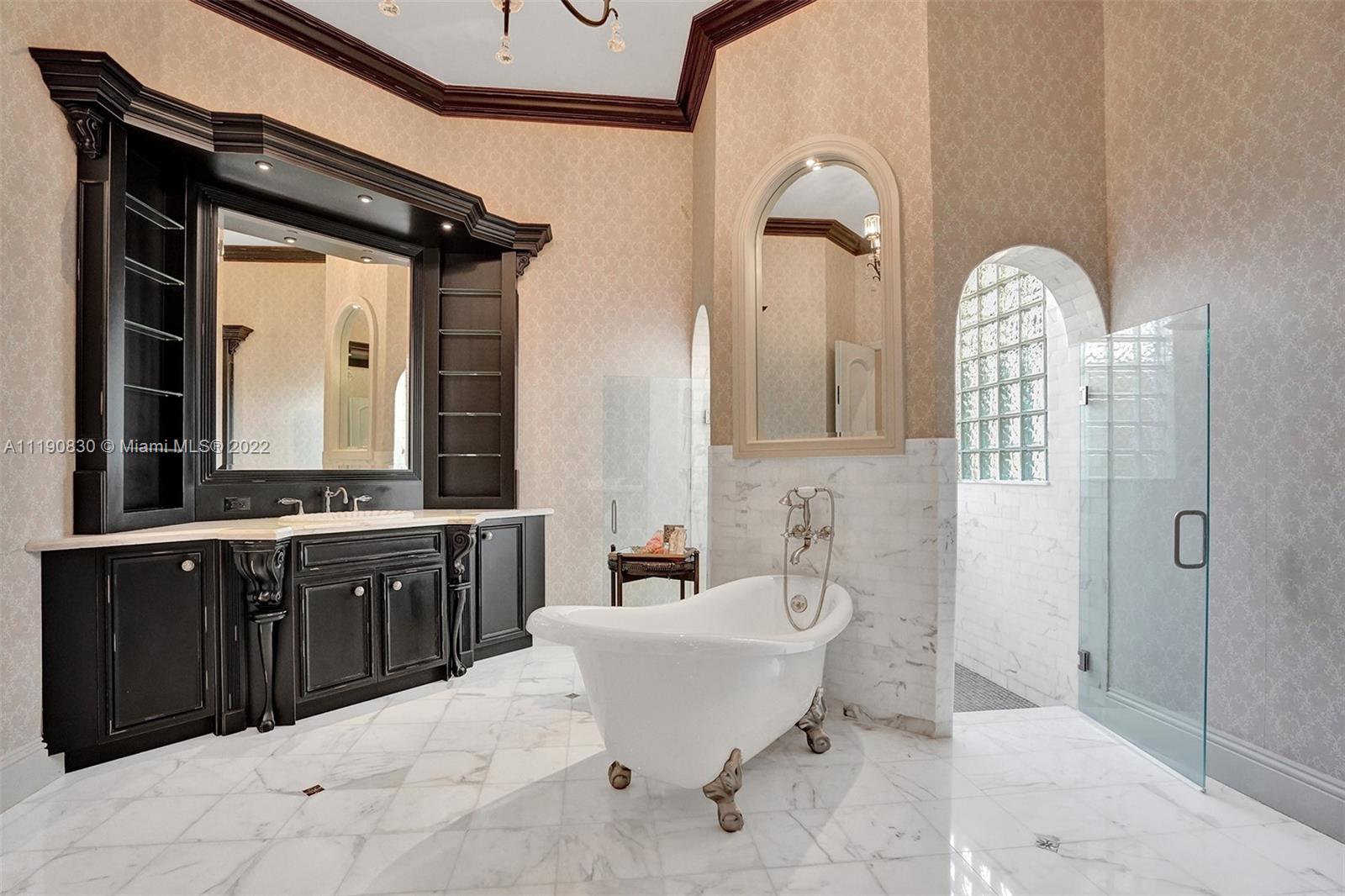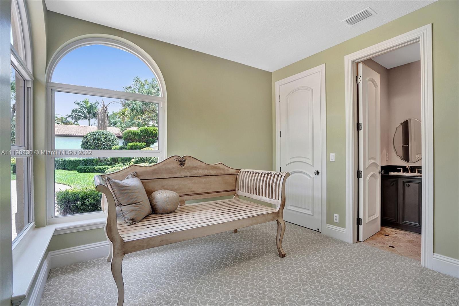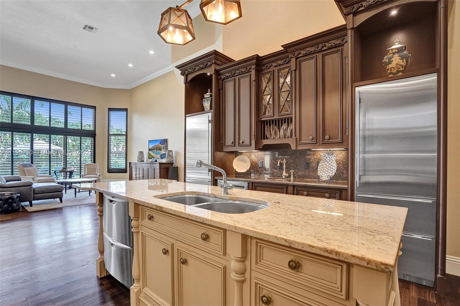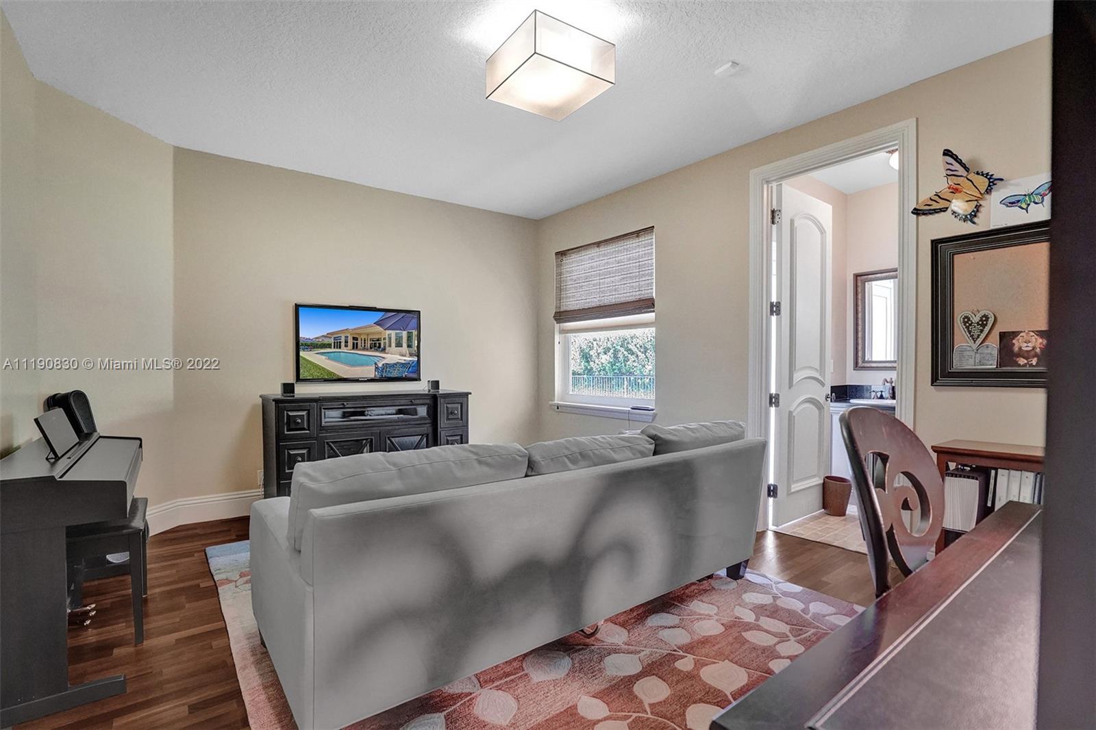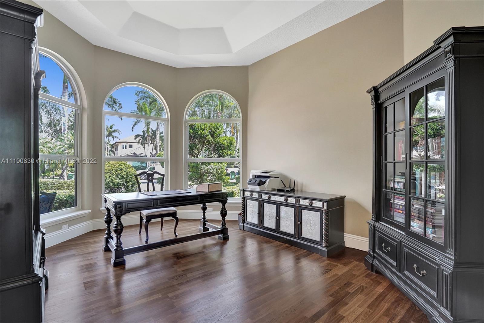 Perfectly placed on royal palm tree-lined cul de sac street in the gated community of Riviera at Weston Hills CC. 4800 sq ft under air, 5 bedrooms, 5.5 renovated baths plus an office. BRAND NEW IMPACT WINDOWS*NEWER ROOF*Real wood floors throughout living areas*volume ceilings*extensive crown moldings*exquisite custom light fixtures throughout*Plantation shutters. Gorgeous unobstructed water views. Renovated kitchen*custom wood cabinetry, center island, granite countertops, Stainless steel appliances, Double Subzero Refrigerator, double oven w/ warming drawer, wine cooler, top-of-the-line appliances, breakfast area. Master suite w/sitting area, his/hers closets, breathtaking, luxurious marble bath w/ vessel tub. Grand covered patio overlooking pool, lake w/lush landscaping. Fully fenced