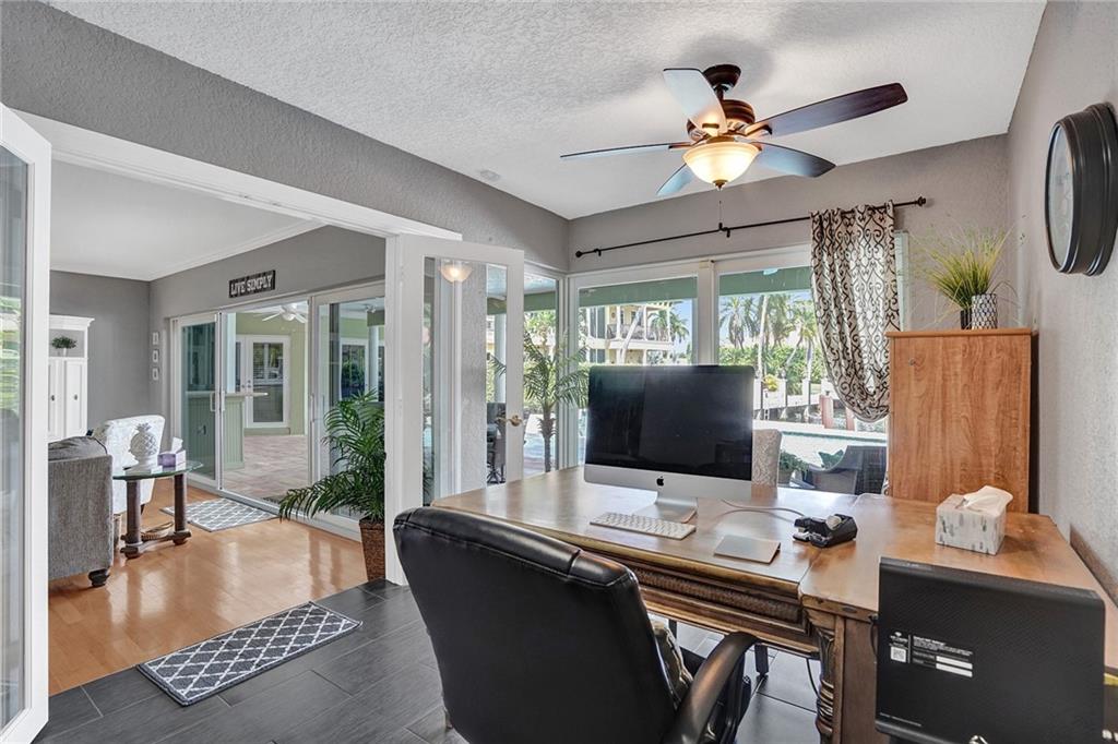 Beautiful 4 bedroom + office 3 bath home in Coral Ridge Country Club. This waterfront home offers long water views. Living area with formal dining, eat-in kitchen and den/office. Gourmet kitchen boasts stainless steel appliances, white shaker cabinetry and amble cabinetry. Spacious primary suite with walk-in closet, sitting area/office. Primary bath has separate tub and shower and duel sinks. Spacious secondary bedrooms. Interior laundry room with storage. Fantastic backyard oasis features saltwater pool, covered patio, dock and beautiful water views.