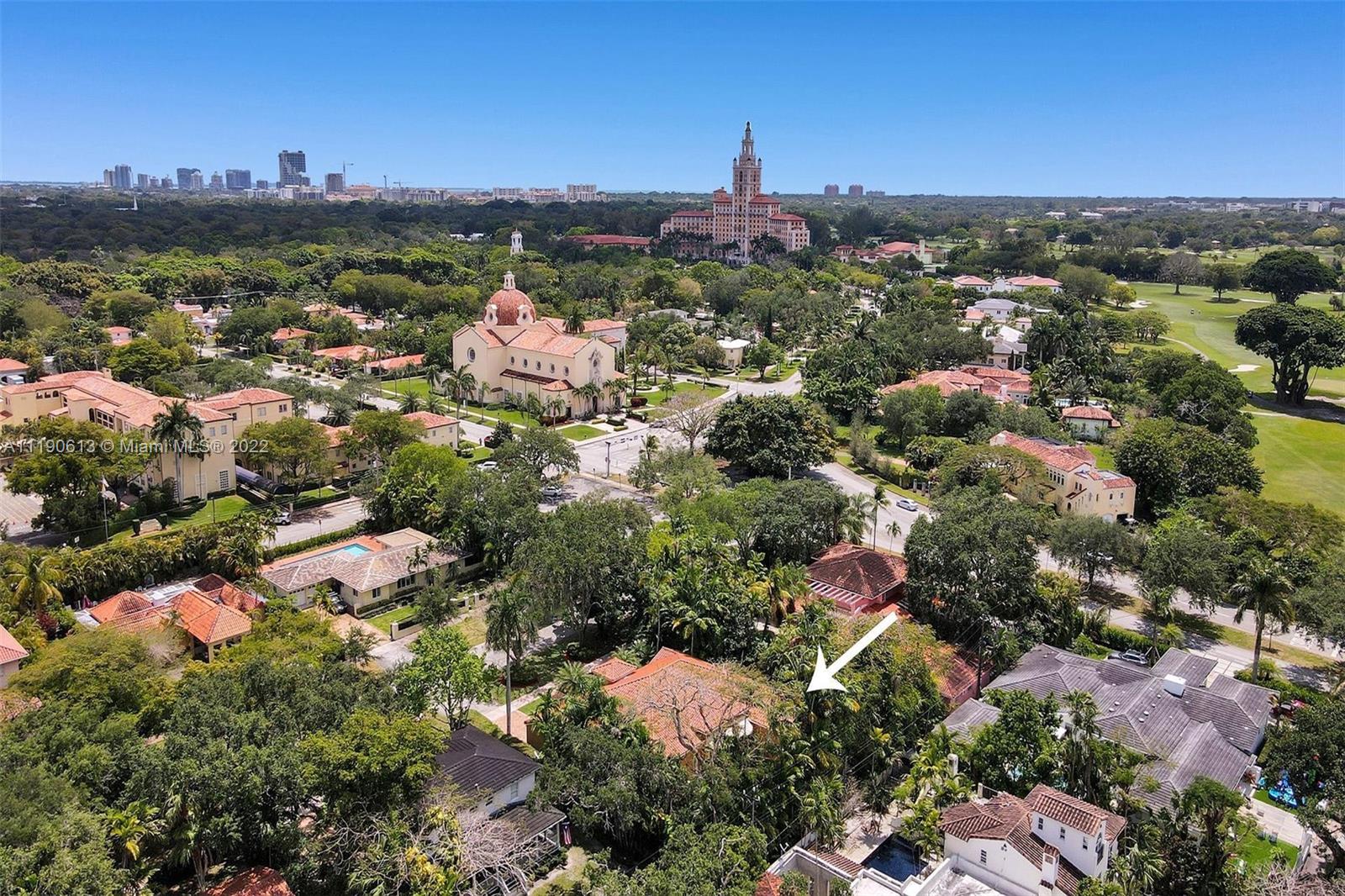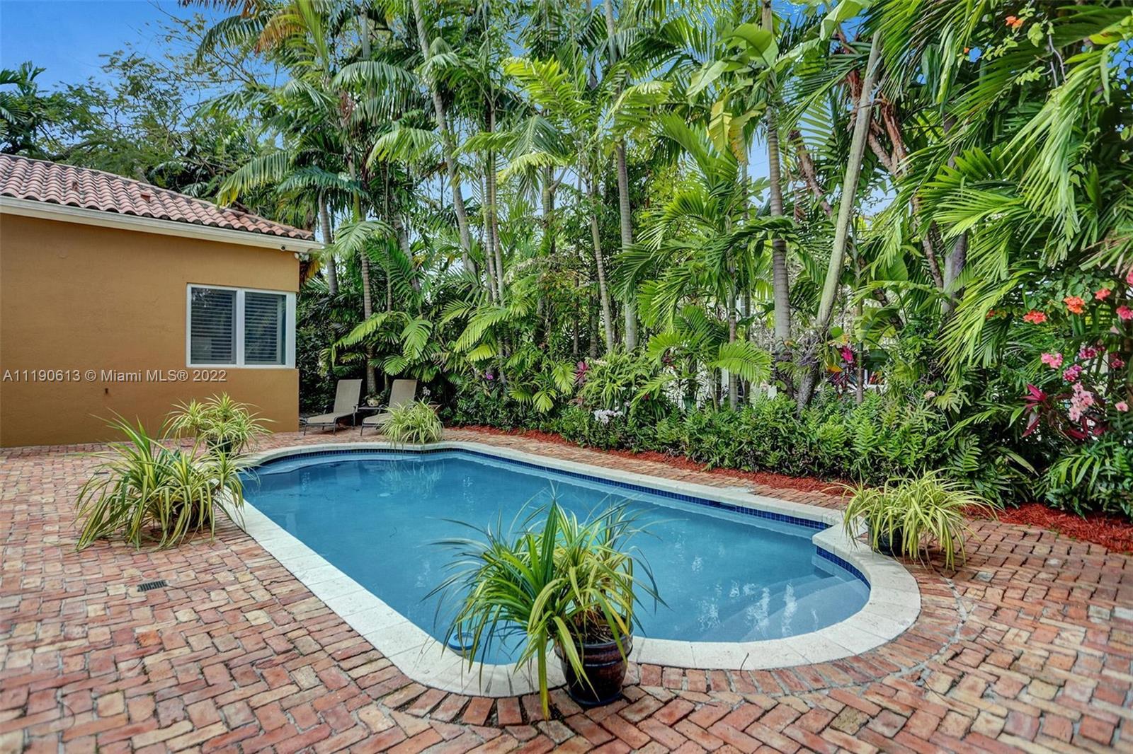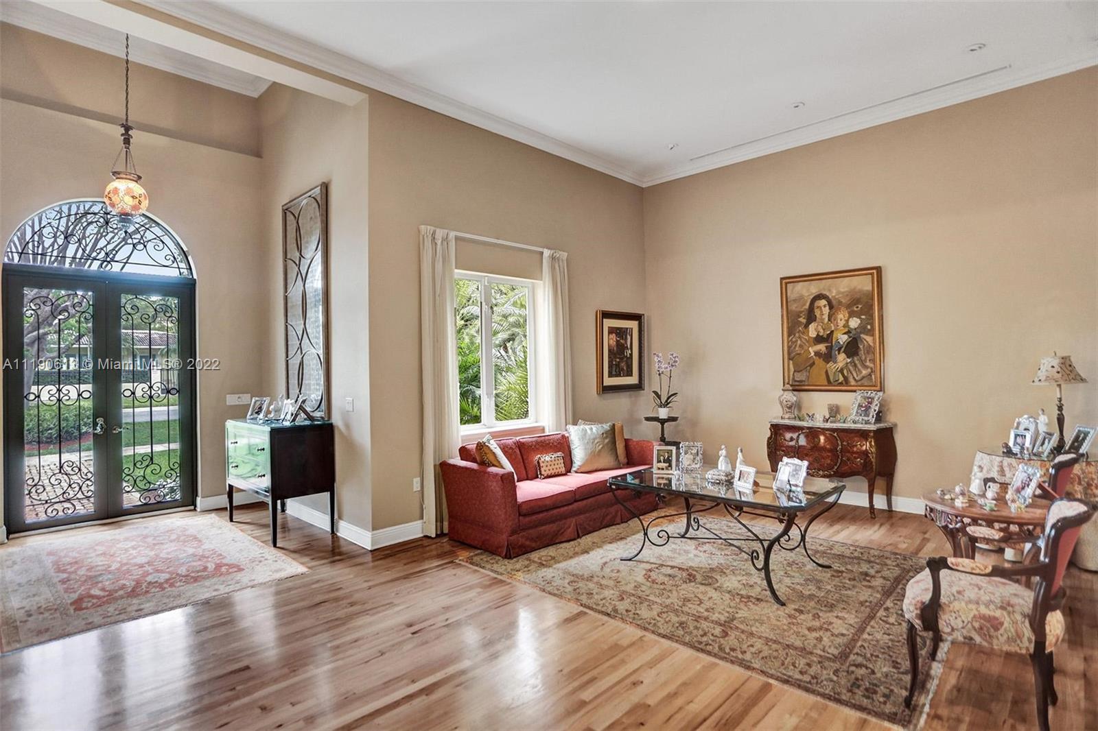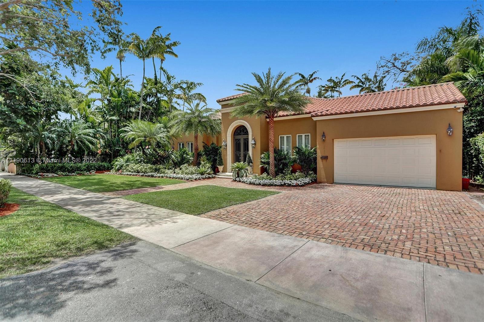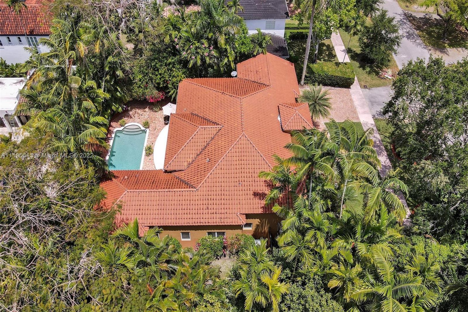 Stunning residence in a sought-after central Coral Gables area location awaits. An inviting foyer leads to a spacious living room, formal dining, entertainment room, and a large kitchen with cooking island with an informal dining area. The principal suite and two bedrooms with a hall bath are on one wing of the home; the 4th bedroom or office is opposite, with an adjacent hall/guest/cabana bath. Soaring ceilings throughout, and a bonus gardener's bath in the garage. Poolside, a covered terrace and pergola with a summer kitchen make the tropical outdoors quite inviting. Expanded and updated in 2002, the property offers a fabulous lifestyle in a desirable residential area, yet close to all the Downtown Gables amenities that our treasured City Beautiful offers.