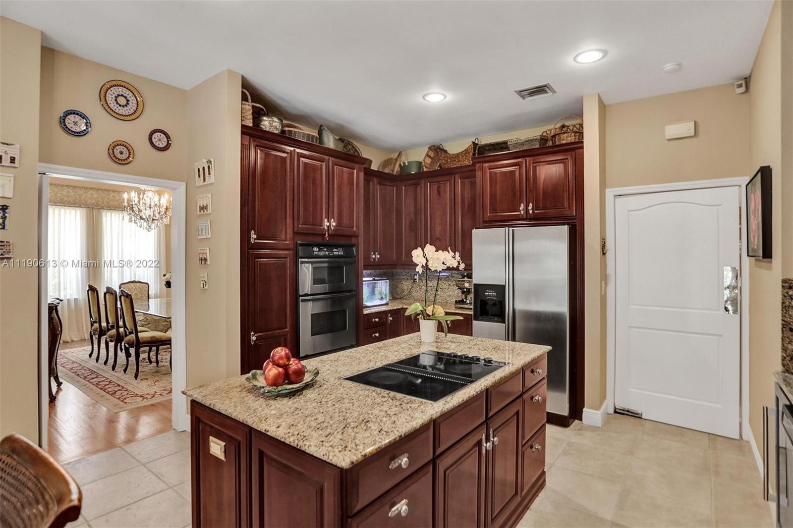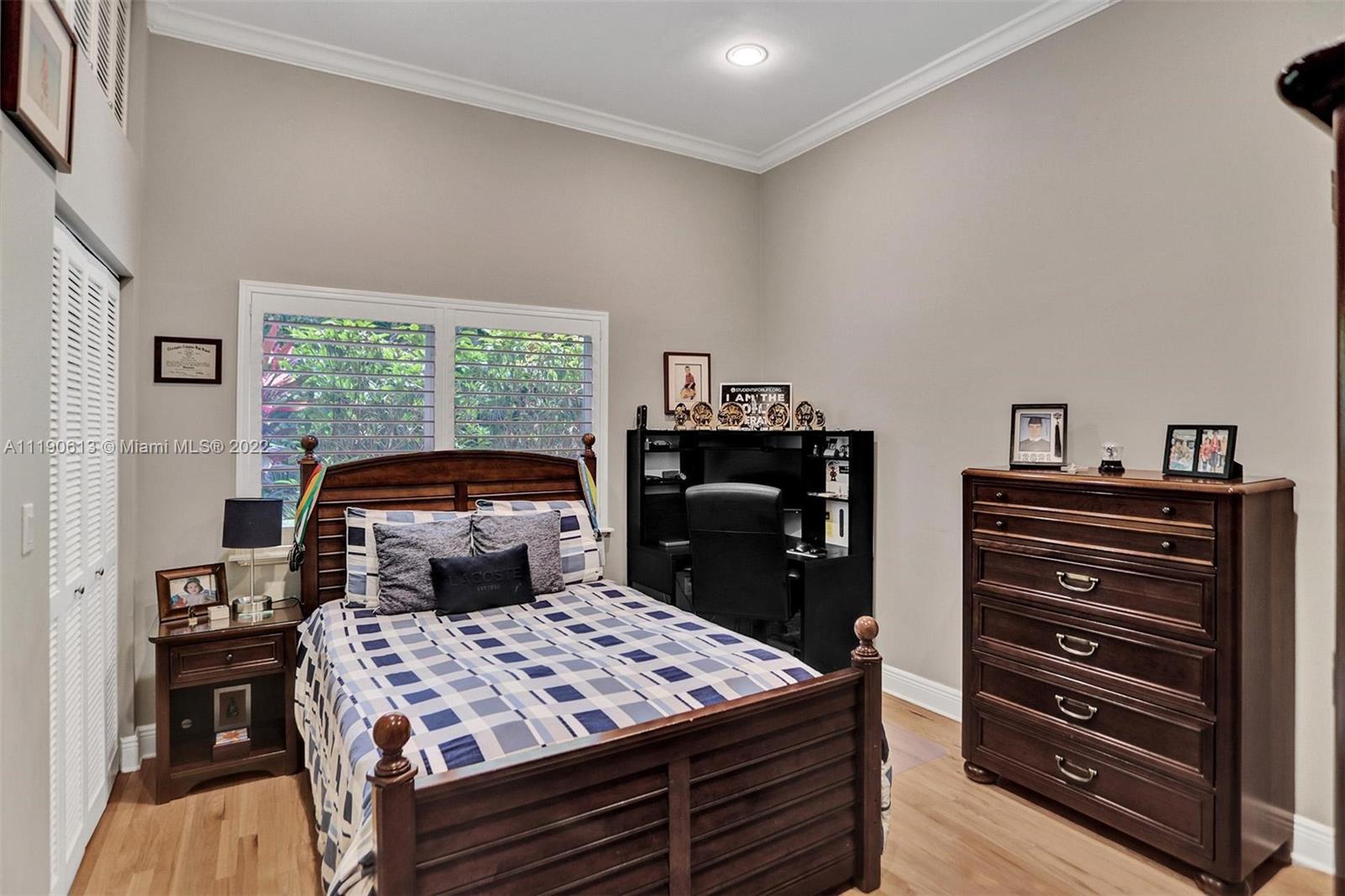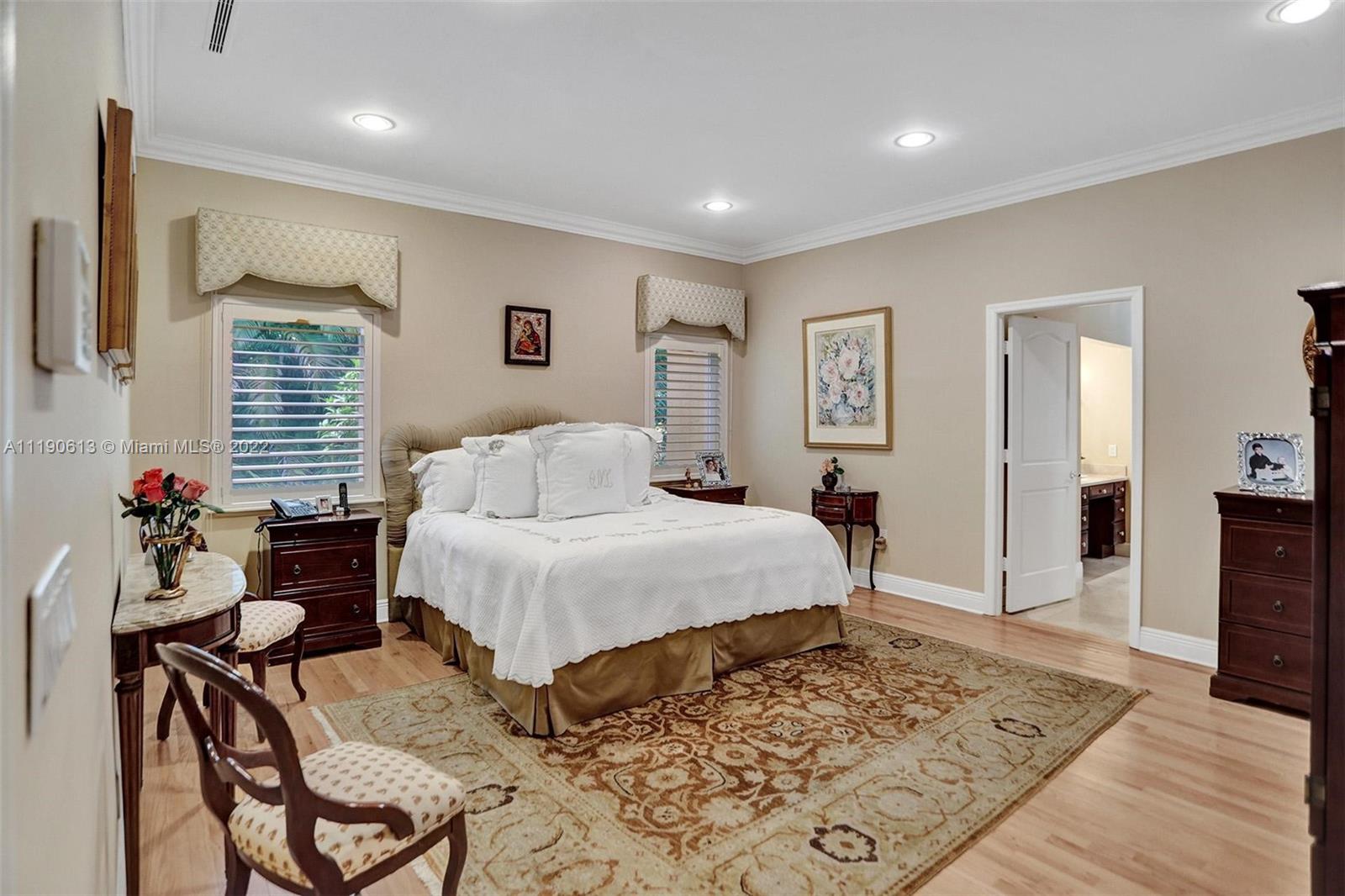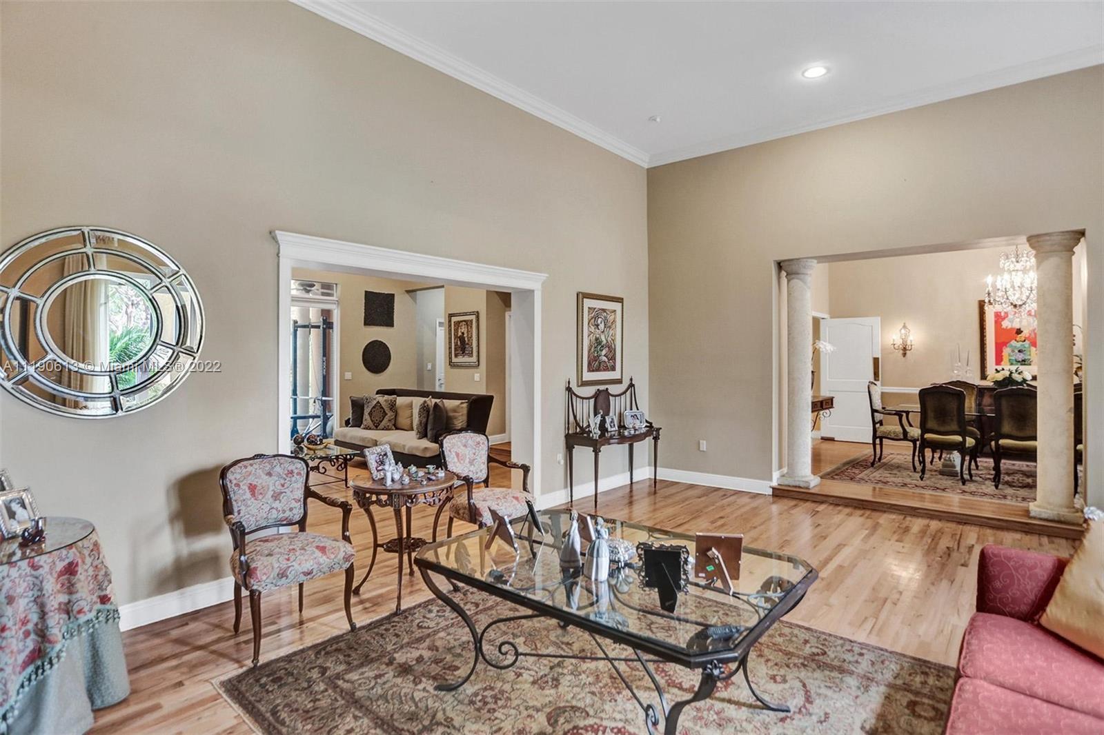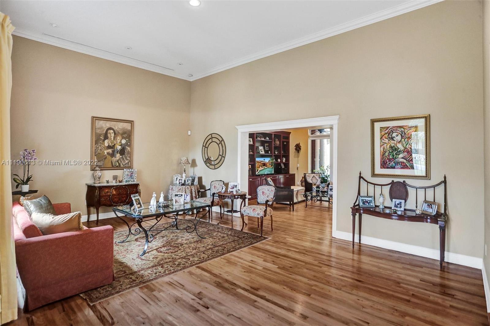Stunning residence in a sought-after central Coral Gables area location awaits. An inviting foyer leads to a spacious living room, formal dining, entertainment room, and a large kitchen with cooking island with an informal dining area. The principal suite and two bedrooms with a hall bath are on one wing of the home; the 4th bedroom or office is opposite, with an adjacent hall/guest/cabana bath. Soaring ceilings throughout, and a bonus gardener's bath in the garage. Poolside, a covered terrace and pergola with a summer kitchen make the tropical outdoors quite inviting. Expanded and updated in 2002, the property offers a fabulous lifestyle in a desirable residential area, yet close to all the Downtown Gables amenities that our treasured City Beautiful offers.
