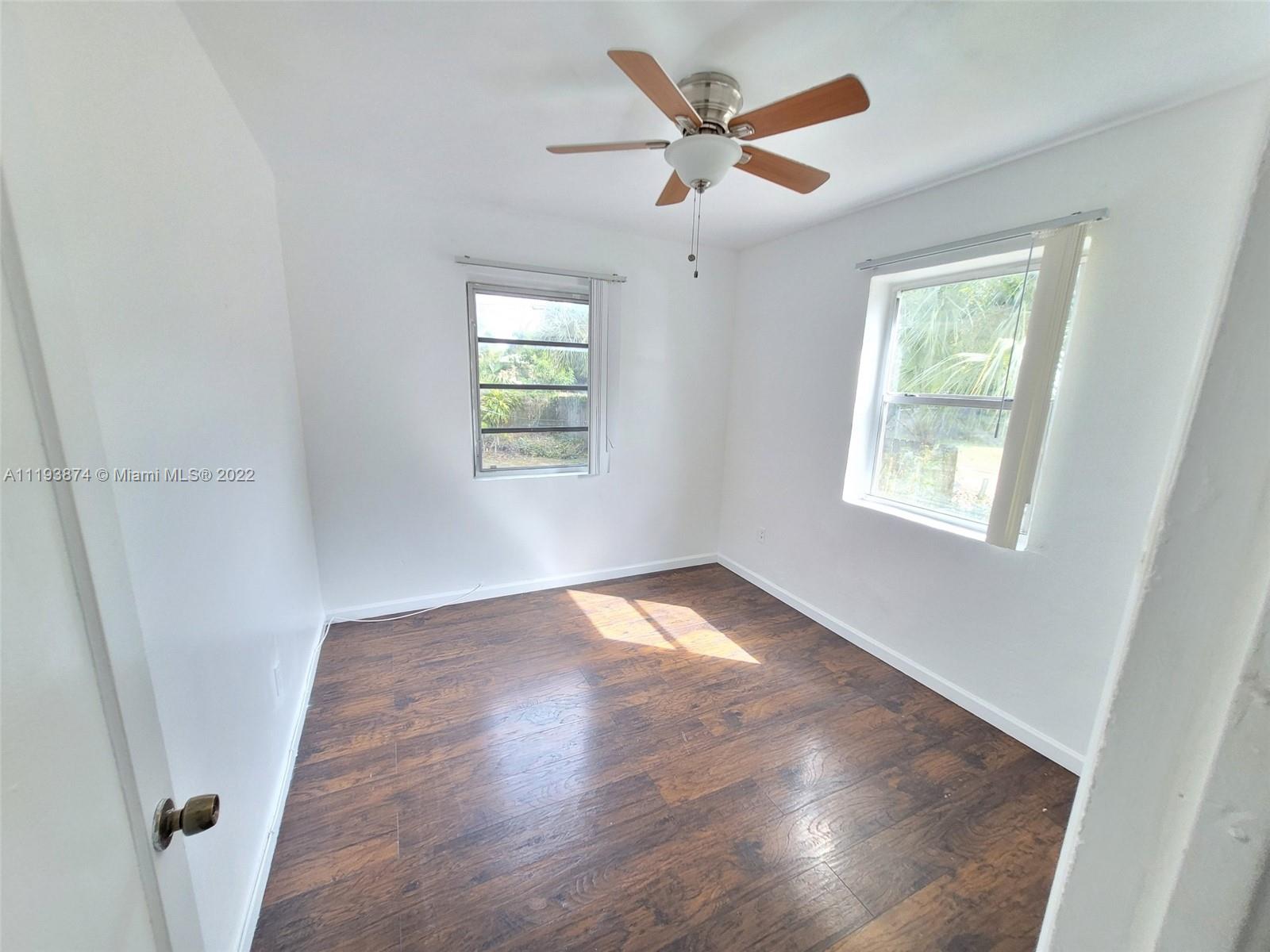 Spacious single-family home newly renovated. No HOA! Move-in ready 4 bedrooms 3 bathrooms fitted with mother in law suite. (3rd. Bathroom) with private side entry. Solar panel on the roof for water heater tank hook up. Not currently connected. The roof is less than ten years old. The central AC was replaced in 2021 Large enclosed secured patio that adds to indoor living space. Beautifully landscaped, fenced-in yard which includes fruit trees in front and back. Long driveway that accommodates at least 6 cars. Centrally located with quick access to I-95. Near the beach and airport.