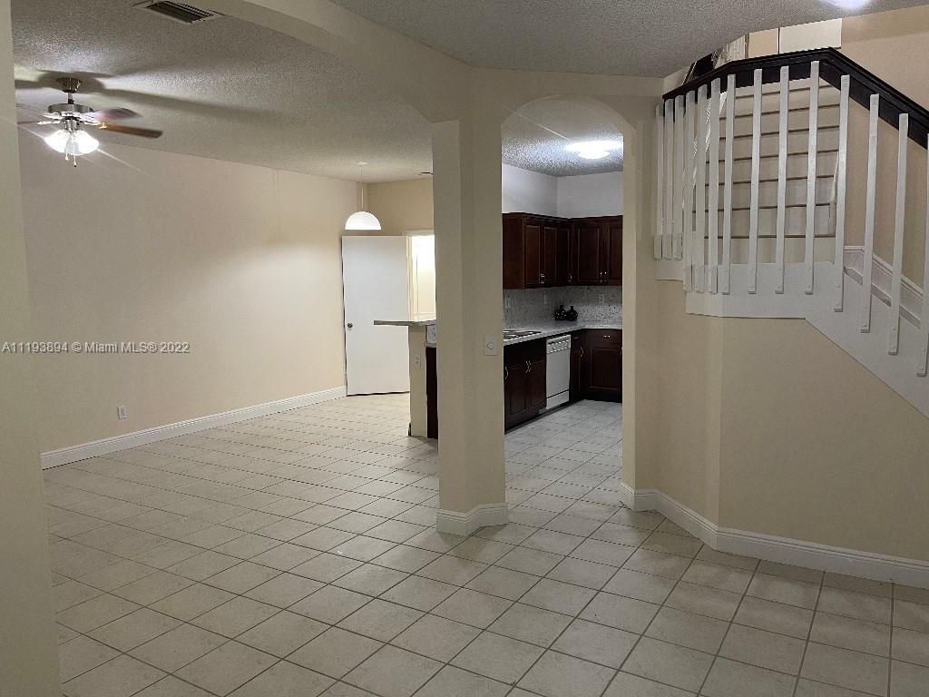 Corner 1498 sq.ft. under AC and 1723 under roof. 1 Car garage. Fully remodeled, 2 full baths and 1 half bath upgraded. New kitchen cabinets, high end expensive Quartz countertop / backsplash and breakfast area. Stairs, bathroom and 2nd Vinyl flooring. New Kitchen sink, Garbage disposer, new water heater. A/C fully serviced. Full house, doors and garage freshly painted. New baseboards for entire townhouse. Exterior door and Garage door will be painted after getting approval from HOA.