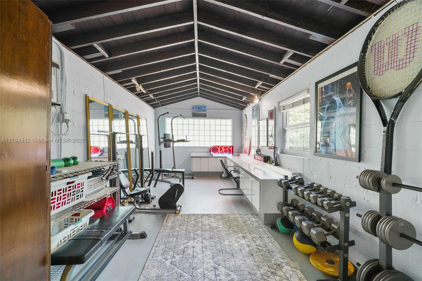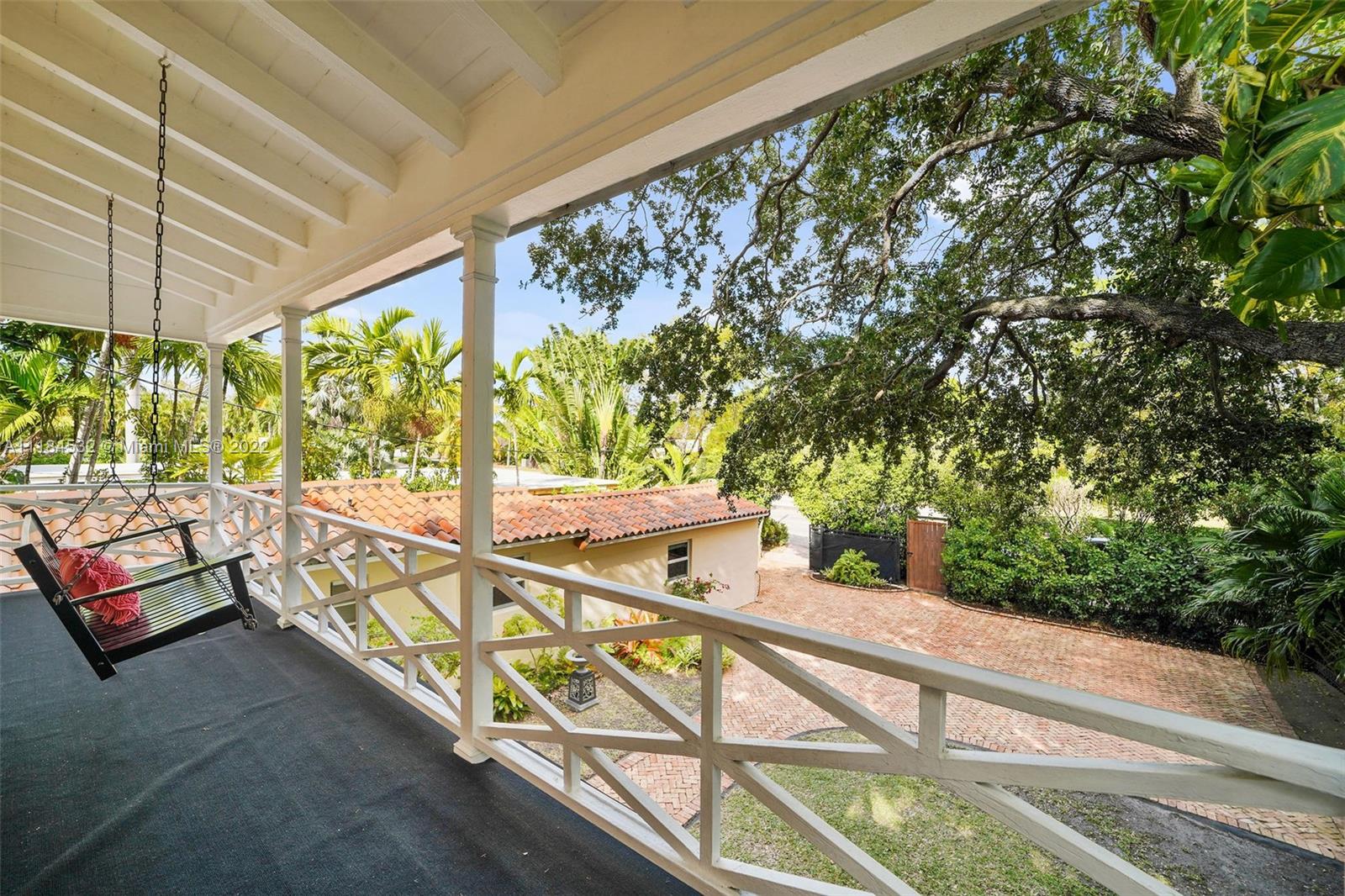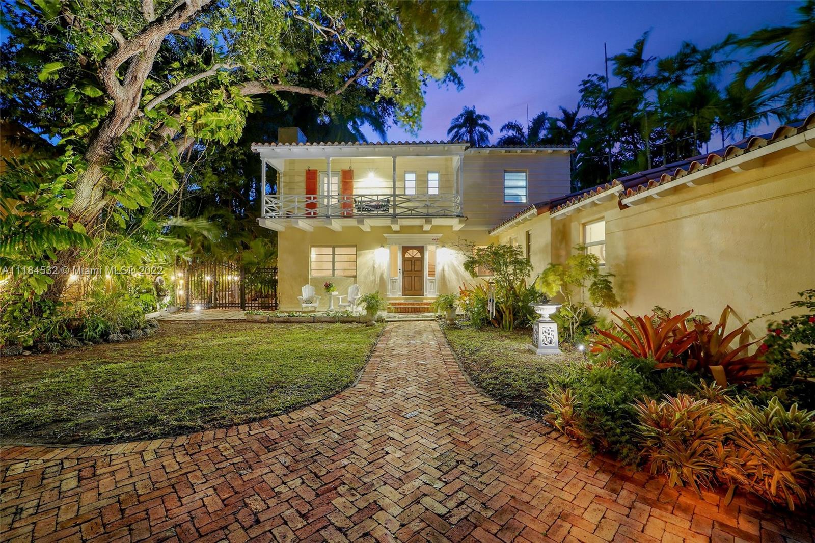 Announcing a rare opportunity to own this beautiful home designed by renowned Miami architect, Carlos B. Schoeppl. Located less than two blocks to LaGorce Country Club or the new 59th St. pedestrian walkway to Biscayne Bay to view the sunsets. This two-story concrete home with balcony enjoys mature landscaping and a large, gated Chicago Brick driveway courtyard that fits parking for three or more vehicles. This well-loved home retains many of the original features, including the large Florida Keystone porch, fireplace, built-ins, crown moldings and original hardwood floors. A spacious gym and home office enjoy a high wood ceiling and so does the sun room/playroom. Flexible floor-plan offers tremendous potential for updating and expansion. Schedule a tour for this bright & happy home.