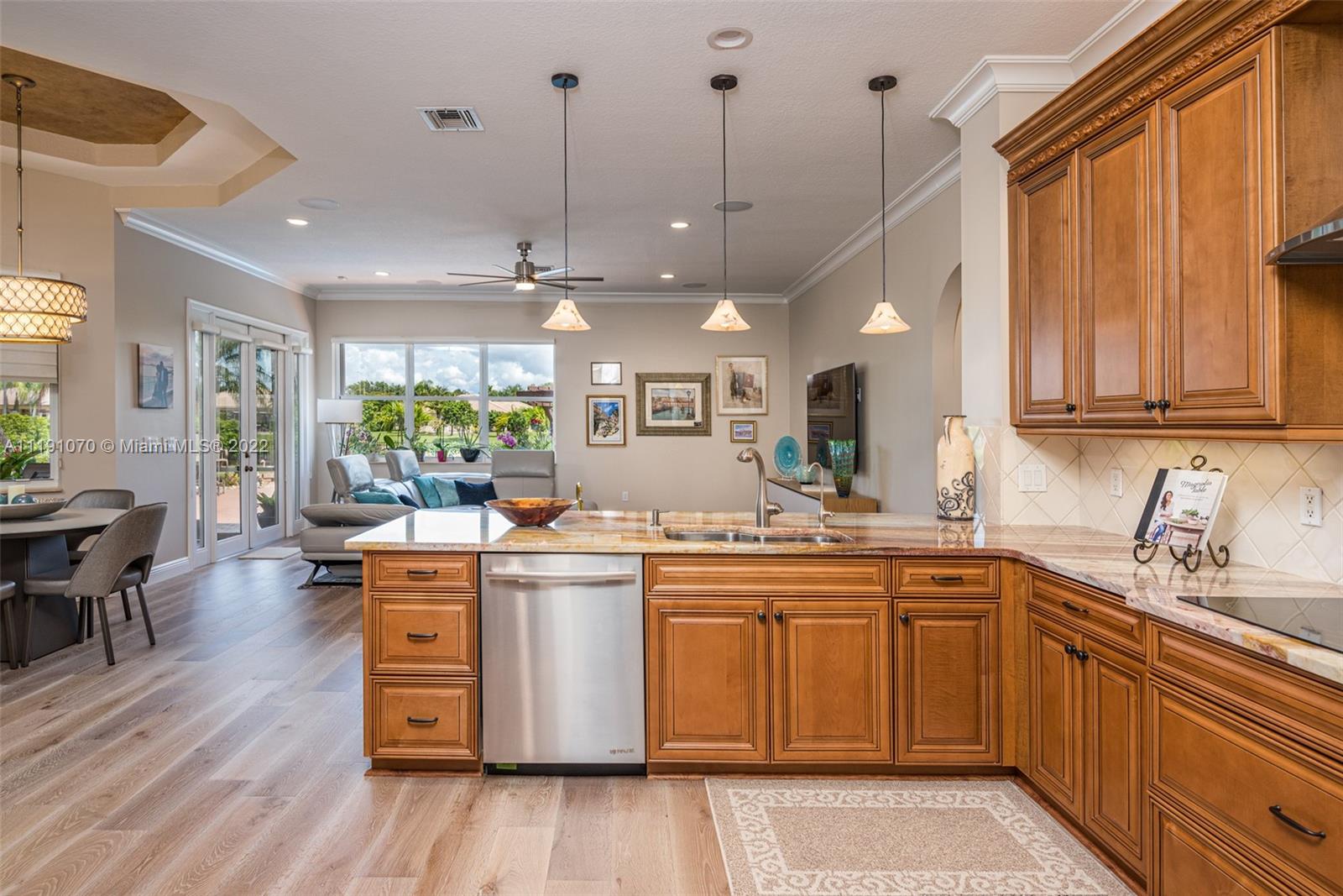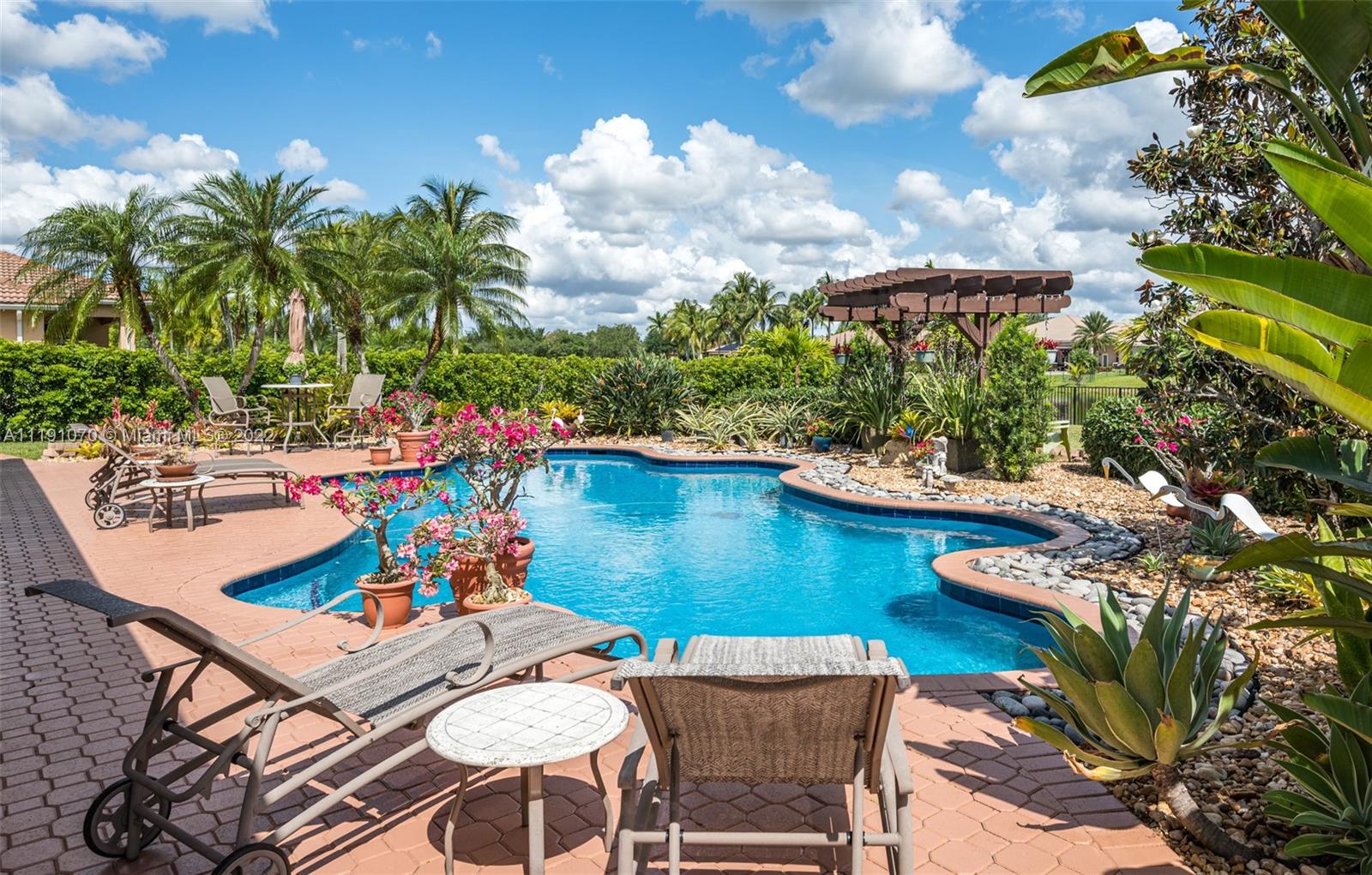 This exceptional Cambridge model is exquisitely unique! Located in the exclusive guard gated community of Imagination Farms! Meticulously maintained. Spectacular lake & pool views from every room. Loaded with upgrades. Gorgeous real, modern style, hardwood floors. Stunning custom bar area is an add on, perfect for entertaining. Updated kitchen has fabulous wood cabinets, beautiful granite counters, SS appliances, range hood, huge snack bar. Family breakfast nook. Formal living/dining rooms. Split bedroom plan. Spacious master suite over-looks sparkling pool & lake & includes crown molding, updated bath with luxurious free-standing tub, separate walk-in shower, dual sinks. Crown molding. French doors. Screened covered patio. Dramatic outside lighting. A+ schools! Easy access to I75/595.