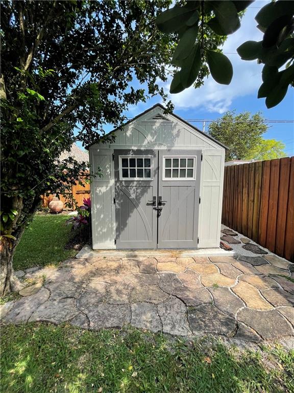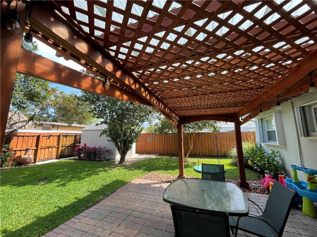 Florida living at it's best! Cozy and bright 3/1 with 1230 sq. ft, large upgraded kitchen, SS kitchen appliances, granite countertops, wood-look porcelain tile throughout, crown moulding, off-street parking for 2, fully fenced in back yard lined with jasmine and palm trees with gated entry x2, screened-in porch, additional patio/pergola, 11x9 gable shed, updated irrigation system with smart/Wi-Fi sprinkler control (2021), 360 hurricane shutter protection, tankless water heater (2022), keyless entry, Central Air (2015 Full Upgrade), 7,500 watt portable generator. Well-maintained wrap-around yard. 2 blocks from Anderson Park and a brand new playground! A must-see!