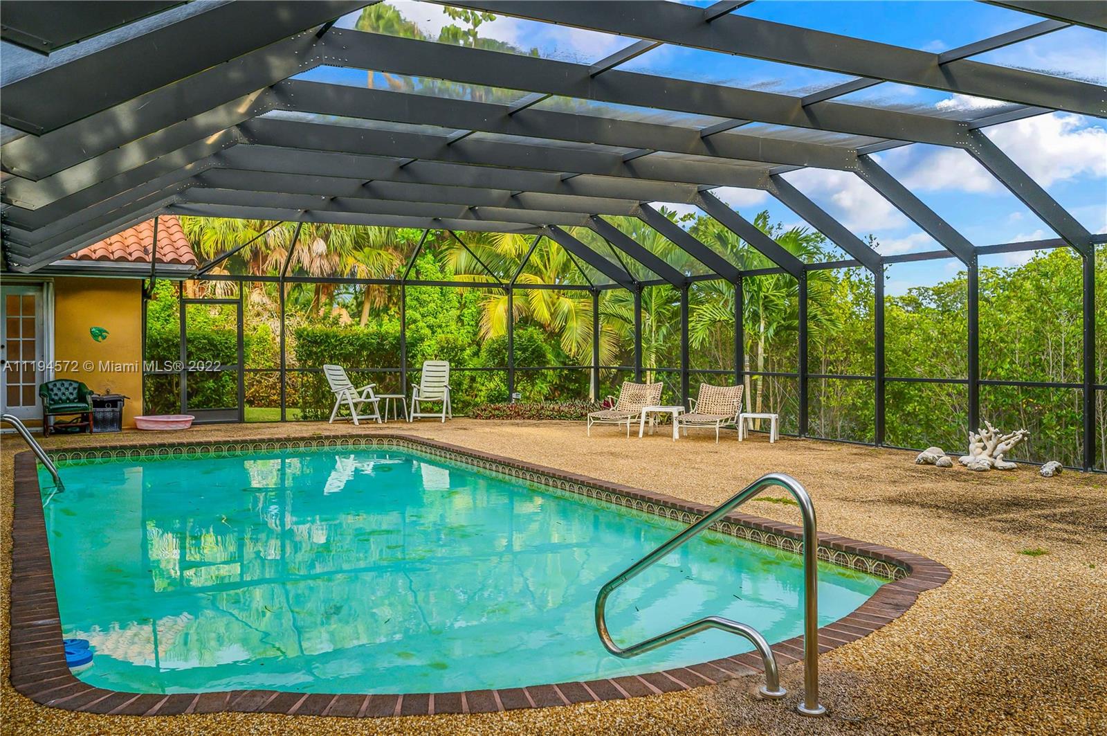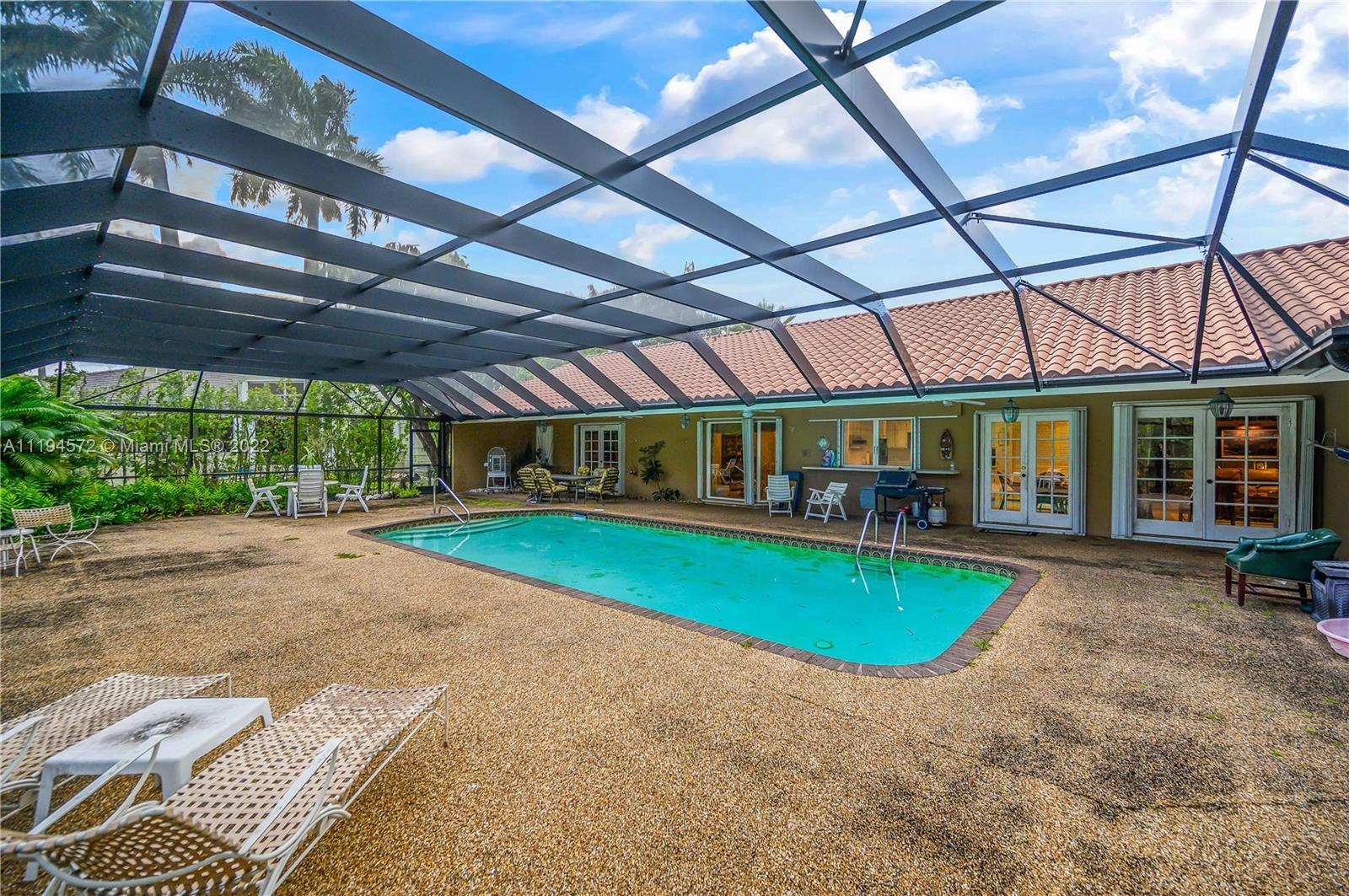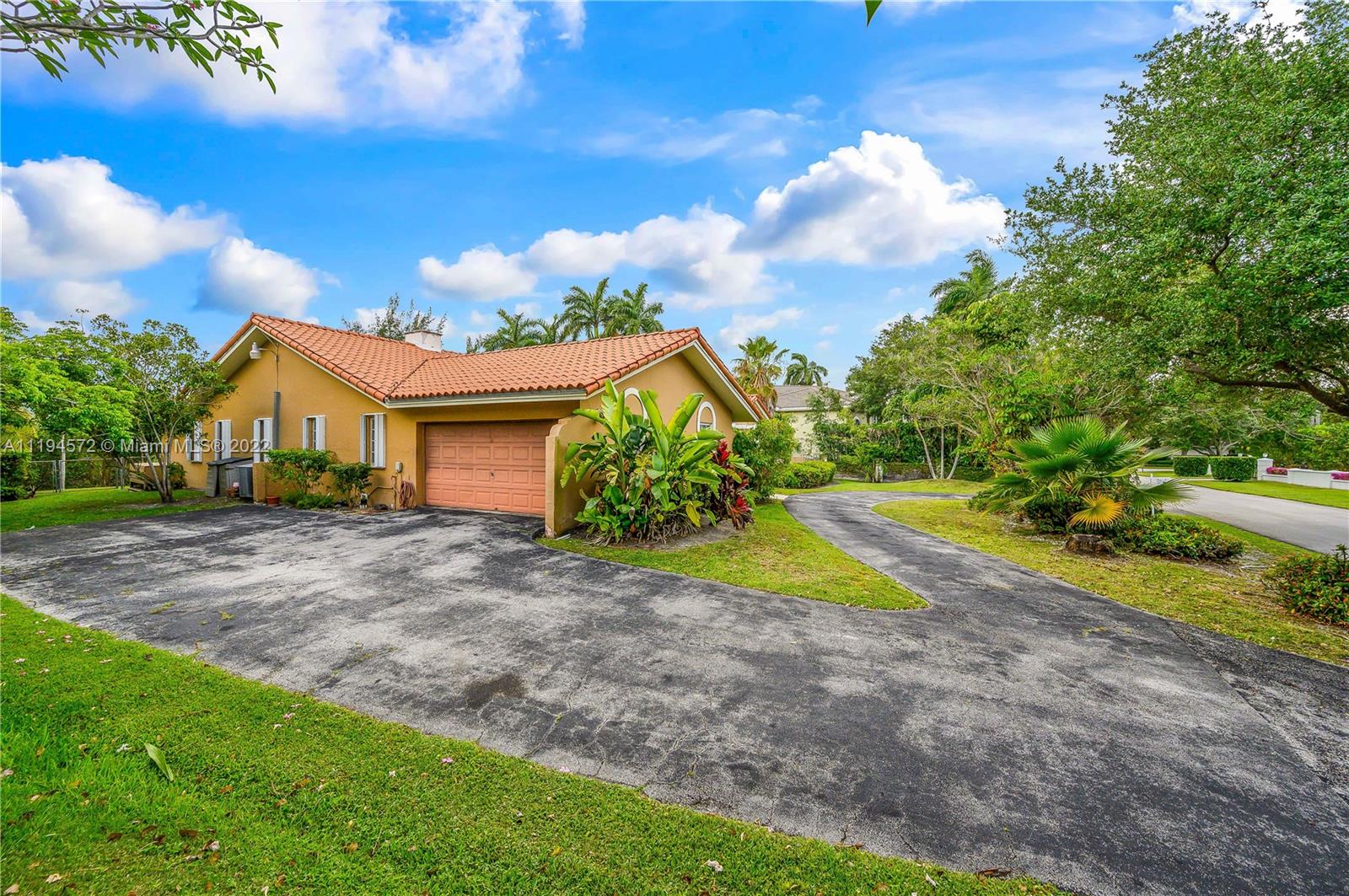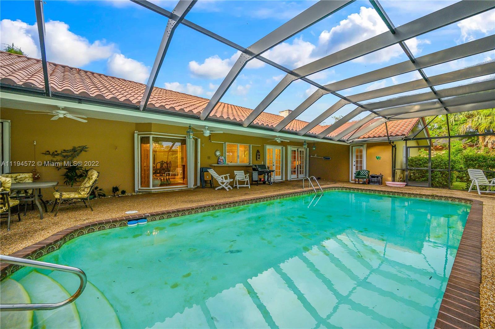 Amazing opportunity in the highly sought after gated community of Hammock Oaks! This waterfront property boasts the perfect canvas and magnificent back drop to create your own masterpiece. Ideal design and floor plan, this home offers thoughtful living space, spacious bedrooms and kitchen with breakfast area overlooking the pool/patio area. Charming characteristics also include a wood burning fireplace, welcoming family room, formal dining room, slate tile foyer entrance and french doors leading out to a tropical paradise. Enjoy a private sunset shimmering off the water from the patio area like a true Floridian. Other features include 2 car garage, circular driveway and screened in pool area. Excellent location in South Coral Gables nearby shops, great hospitals and top notch schools.