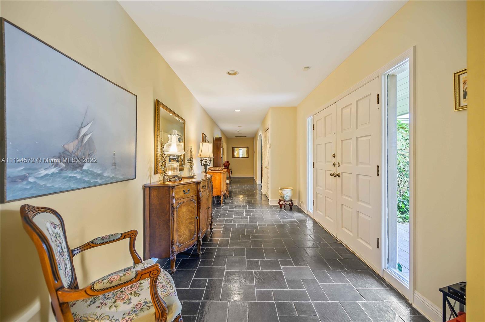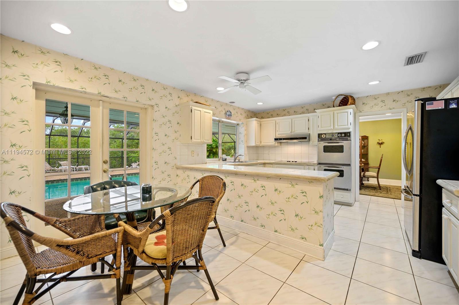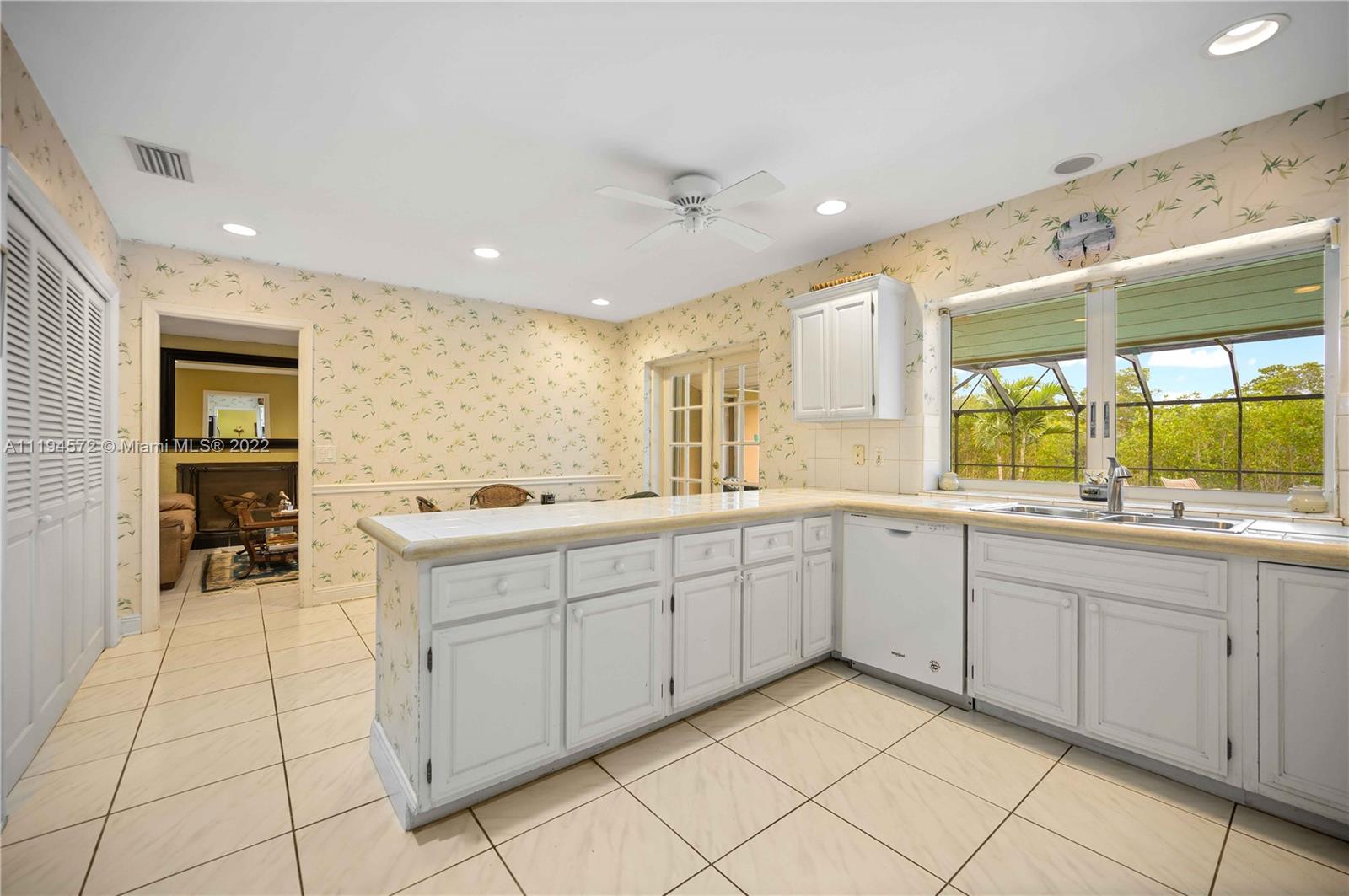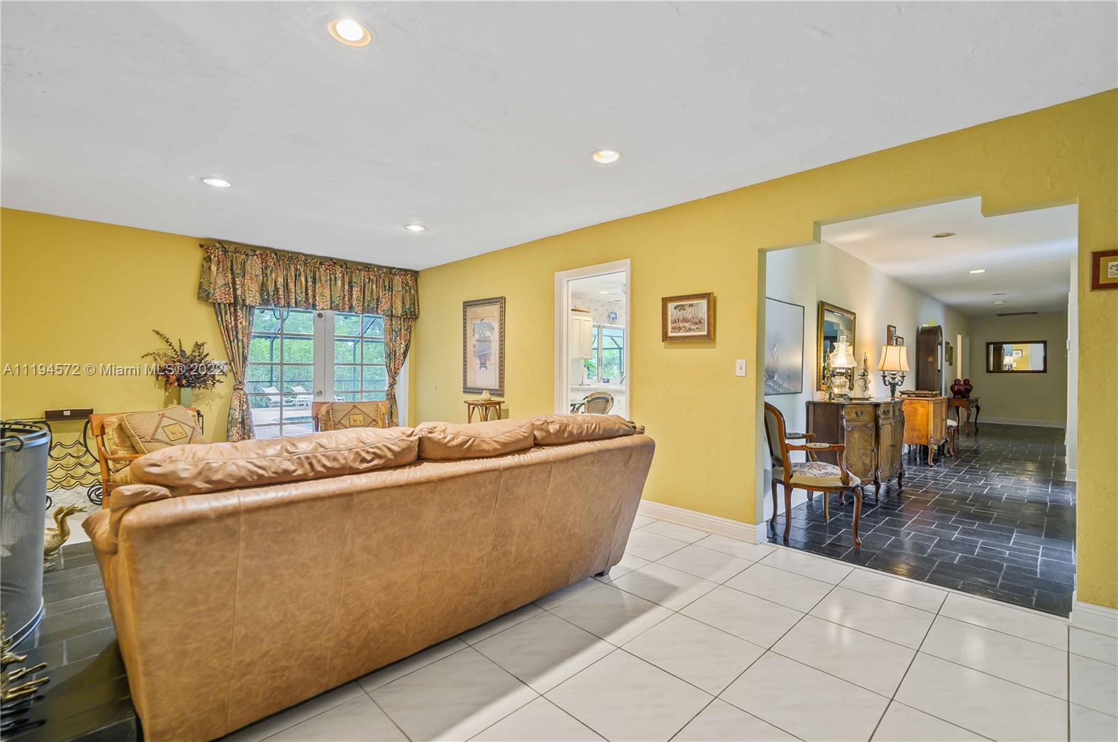 Amazing opportunity in the highly sought after gated community of Hammock Oaks! This waterfront property boasts the perfect canvas and magnificent back drop to create your own masterpiece. Ideal design and floor plan, this home offers thoughtful living space, spacious bedrooms and kitchen with breakfast area overlooking the pool/patio area. Charming characteristics also include a wood burning fireplace, welcoming family room, formal dining room, slate tile foyer entrance and french doors leading out to a tropical paradise. Enjoy a private sunset shimmering off the water from the patio area like a true Floridian. Other features include 2 car garage, circular driveway and screened in pool area. Excellent location in South Coral Gables nearby shops, great hospitals and top notch schools.