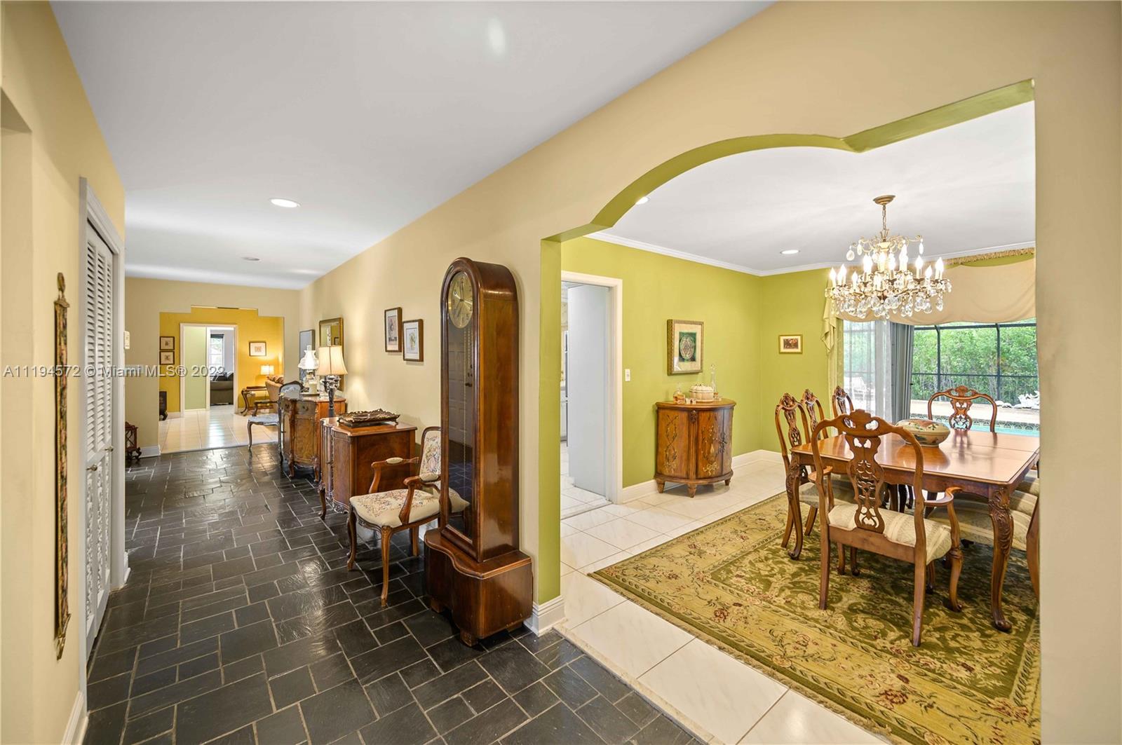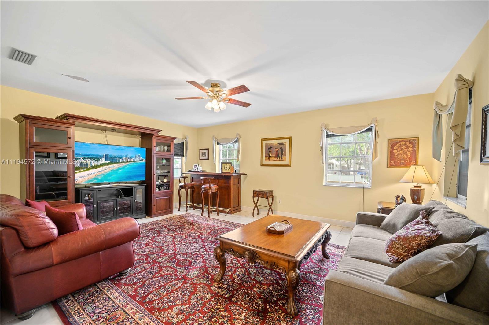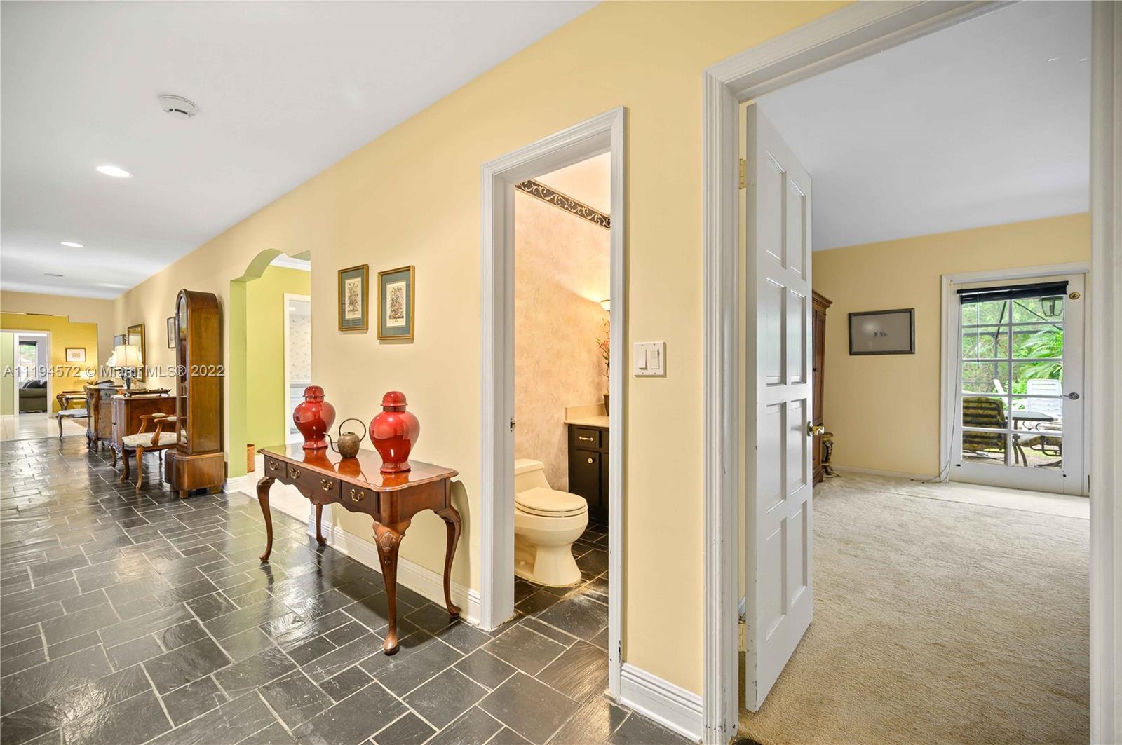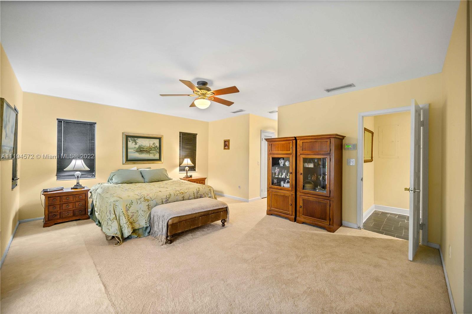 Amazing opportunity in the highly sought after gated community of Hammock Oaks! This waterfront property boasts the perfect canvas and magnificent back drop to create your own masterpiece. Ideal design and floor plan, this home offers thoughtful living space, spacious bedrooms and kitchen with breakfast area overlooking the pool/patio area. Charming characteristics also include a wood burning fireplace, welcoming family room, formal dining room, slate tile foyer entrance and french doors leading out to a tropical paradise. Enjoy a private sunset shimmering off the water from the patio area like a true Floridian. Other features include 2 car garage, circular driveway and screened in pool area. Excellent location in South Coral Gables nearby shops, great hospitals and top notch schools.
