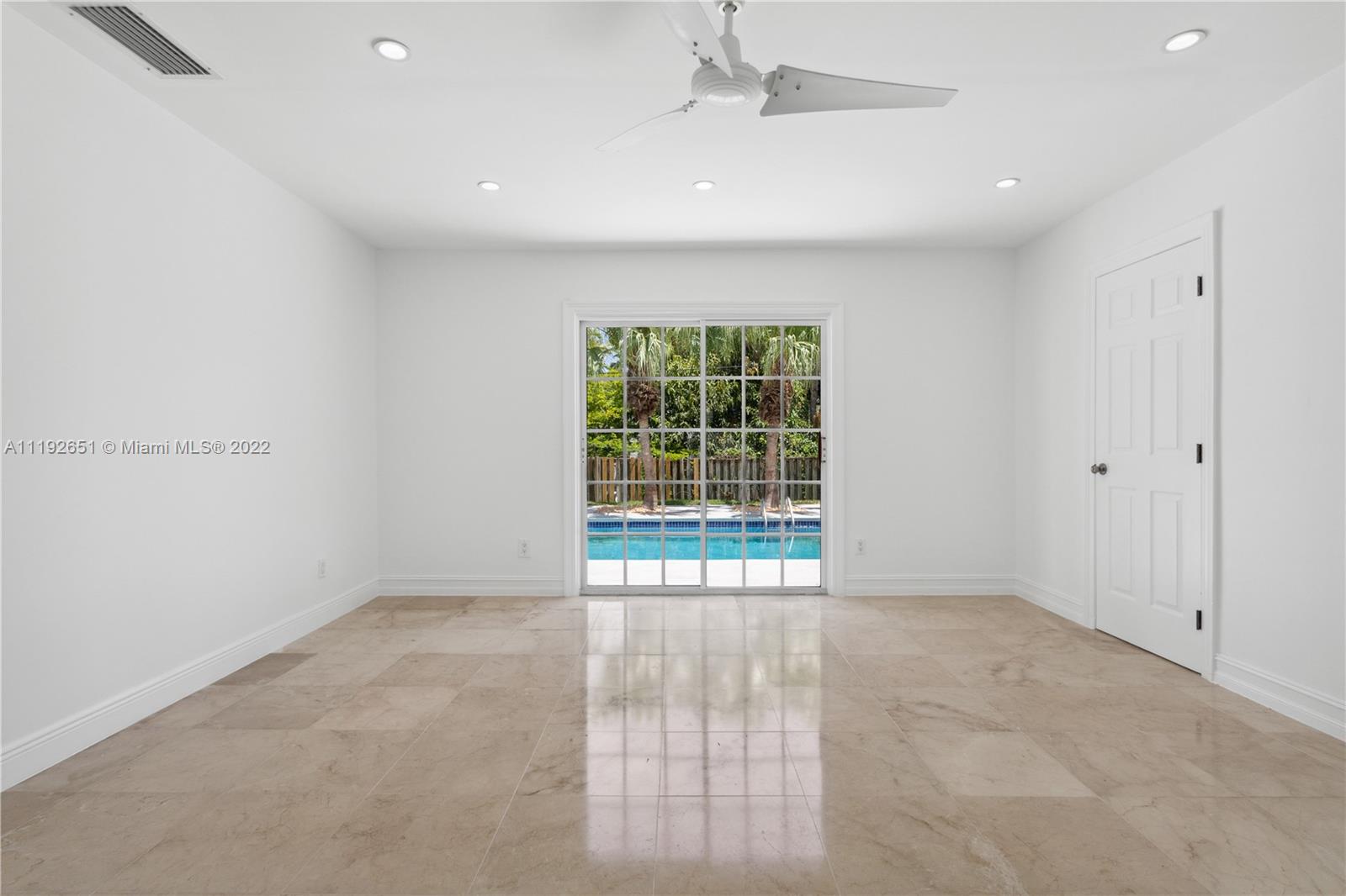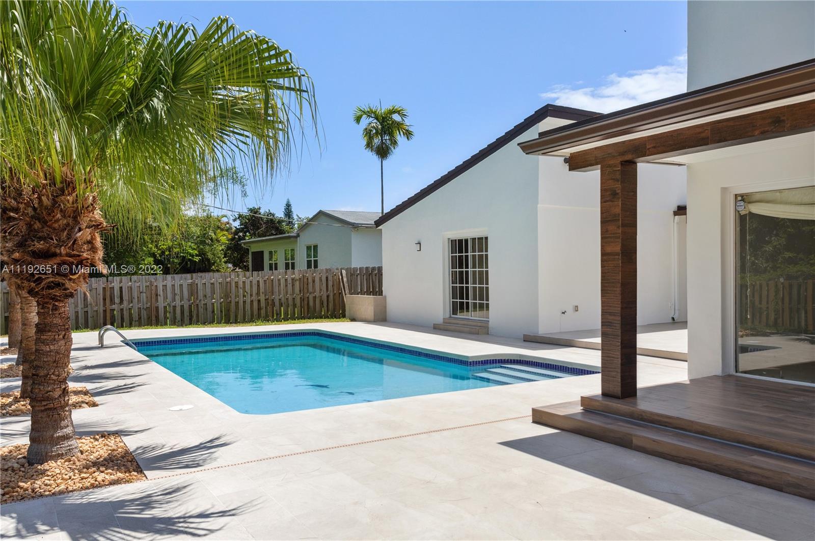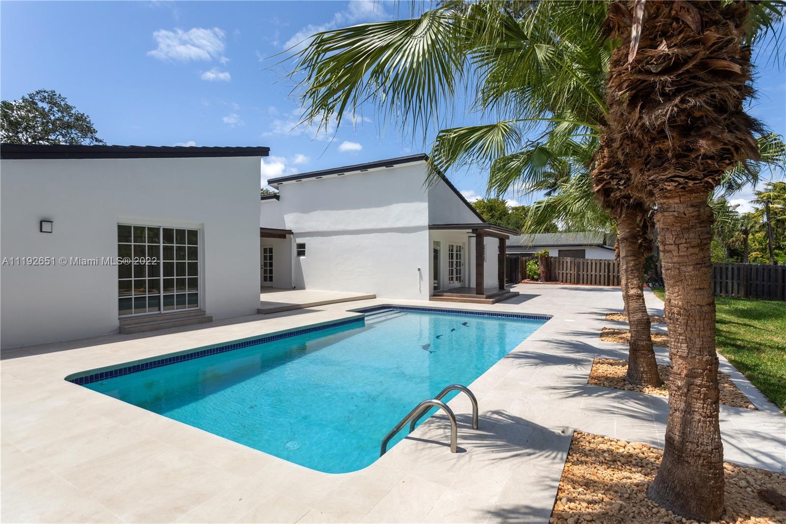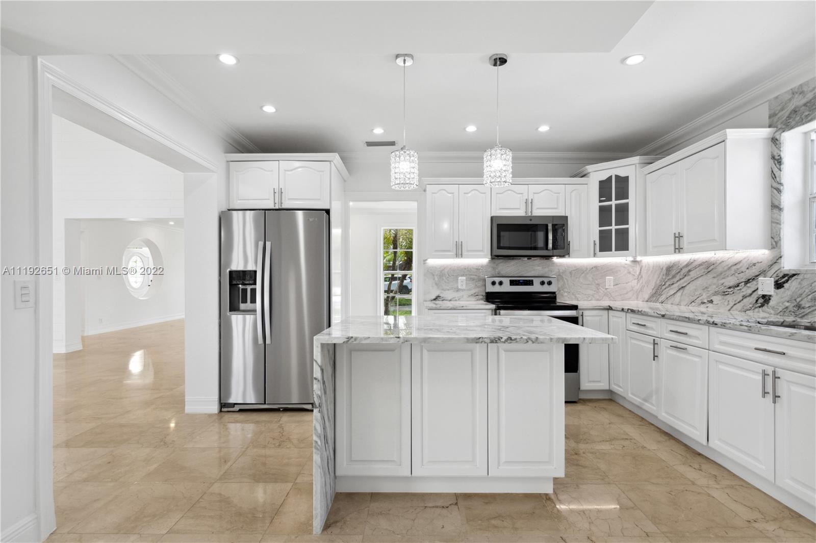 Florida dreaming in this fabulous updated home in the sought-after Kings Bay gated community in Coral Gables. The newly updated spacious and airy split-floor plan in this 4,000 sf space feels bright and welcoming. 5 bedrooms, (2 primary suites), plus an office and 3 full bathrooms, marble flooring throughout, an eat-in kitchen with new stainless steel appliances, and a laundry room. Light-filled interiors feature soaring vaulted ceilings, and beautiful French doors beckon you to the pool area and spacious backyard, a comfortable spot to relax with a morning cup of coffee or watch the sunset. The shaded covered patio is perfect for enjoying the outdoors and entertaining. A wonderful place to call home. This community has riparian rights to the Deering Bay Marina boat ramp.