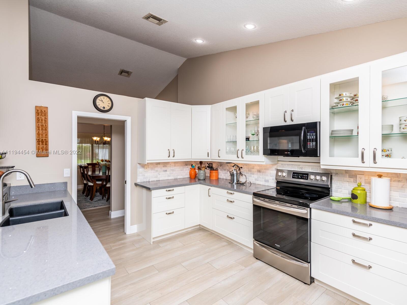 Remodeled dream family home in lovely Forest Ridge within walking distance of Silver Ridge Elementary, Tree Tops Park and community pool, tennis/pickleball and basketball courts amid some majestic live oaks. Home features all new hurricane impact windows and doors, vaulted ceilings, enhanced storage and lighting throughout open kitchen and room areas. New ceramic plank flooring throughout entire house and travertine in spa themed and designed bathrooms with additional storage and lighting. New wifi thermostat, water heater, sprinkler system. Large backyard and garden easily accommodates a pool. New interior and exterior house colors in calming tranquil neutrals throughout. Updated white kitchen with tall cabinetry and undermount lighting make the gray quartz countertops glisten.
