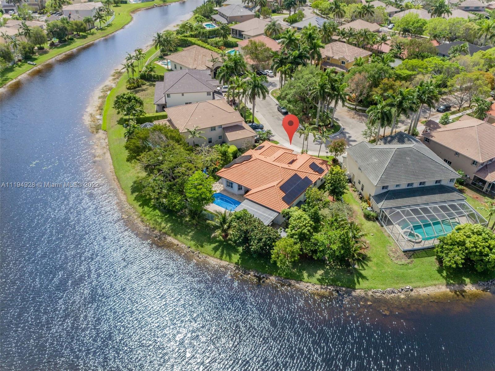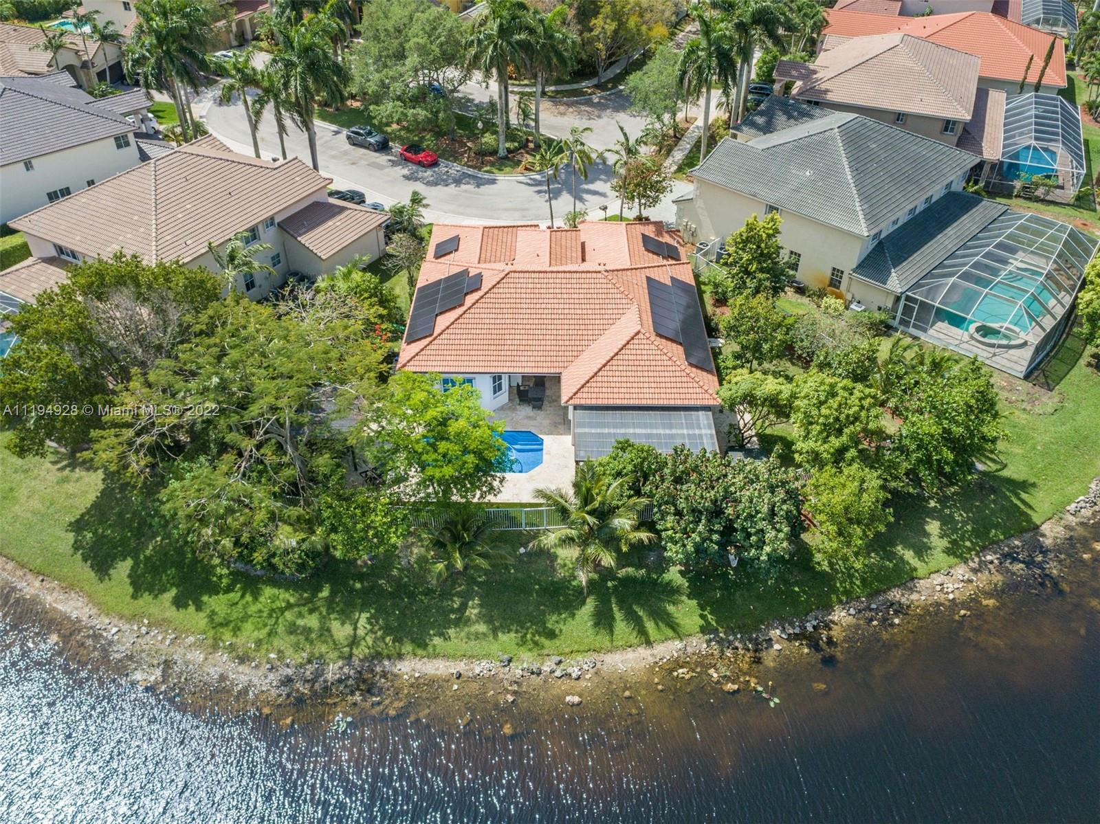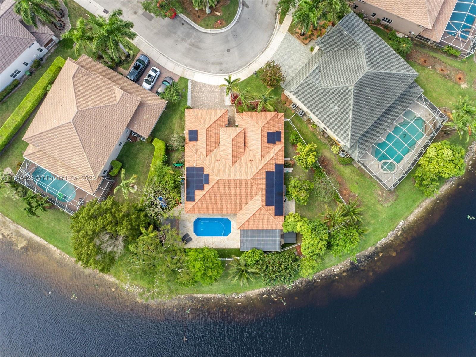 Panoramic Wide Water Views from Oversized (14,089) Cul-de-Sac Lot located in Savanna. New Roof (2019). The floor, kitchen and bathrooms was upgraded in 2020. Accordion Shutters. TROPICAL PLANTS. High Ceilings. New washer and dryer. New A/C (2022). Solar panel installed in 2021 producing 11.6kw. Amazing outdoor area with BBQ, fridge, table and chairs covered by pergola with ceiling fans, a second pergola is used as solarium for the pool area. Automatic mosquito misting system in backyard installed in 2021.NOT included in sale are: outside audio equipment, outside bar stools, all other outside furniture, and all indoor furniture. YES, it is included in the sale: hub tub, outdoor kitchen, Grill island, bar island, Outside TV, Security cameras, Automated mosquito misting system.