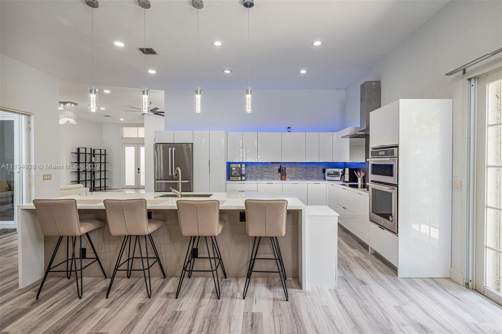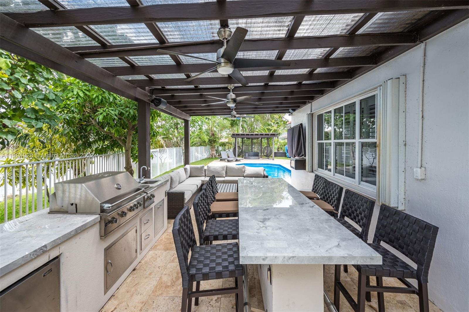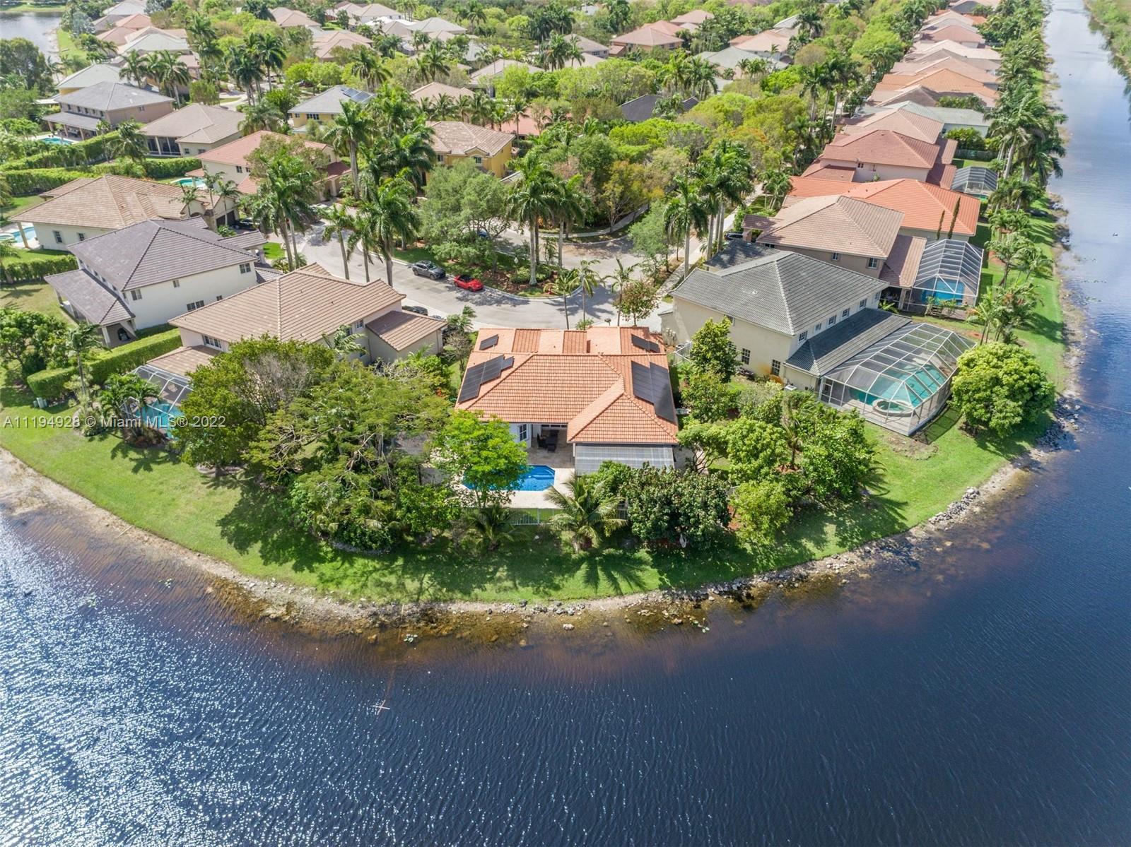 Panoramic Wide Water Views from Oversized (14,089) Cul-de-Sac Lot located in Savanna. New Roof (2019). The floor, kitchen and bathrooms was upgraded in 2020. Accordion Shutters. TROPICAL PLANTS. High Ceilings. New washer and dryer. New A/C (2022). Solar panel installed in 2021 producing 11.6kw. Amazing outdoor area with BBQ, fridge, table and chairs covered by pergola with ceiling fans, a second pergola is used as solarium for the pool area. Automatic mosquito misting system in backyard installed in 2021.NOT included in sale are: outside audio equipment, outside bar stools, all other outside furniture, and all indoor furniture. YES, it is included in the sale: hub tub, outdoor kitchen, Grill island, bar island, Outside TV, Security cameras, Automated mosquito misting system.
