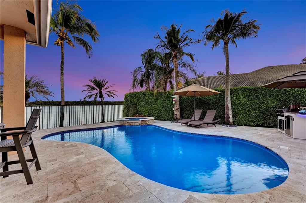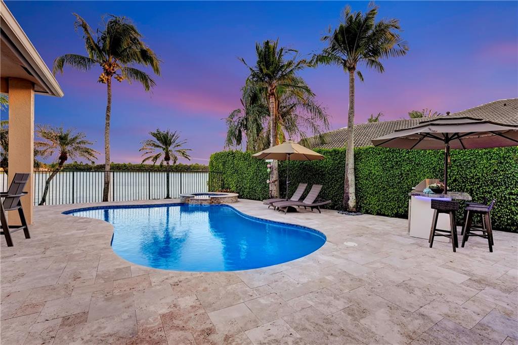 Breathtaking waterfront views nestled in the heart of Weston! Exquisite 4 Bedrooms, 3 bathrooms, 3 car garage with designer finishes throughout and over $150K in upgrades. Plenty of room to spread out and relax in your lushly landscaped private oasis backyard. Live like you are on vacation with panoramic water views, heated pool, travertine extended patio, and barbeque island. Enjoy special moments with family and friends in your entertainer's kitchen with double Viking wall ovens and connecting custom bar. Luxurious oversized primary suite is your peaceful retreat with walk-in custom closets and spa-like bathroom. New Roof 2018. This home has been loved and meticulously maintained! Welcome home to Weston living at its very best!