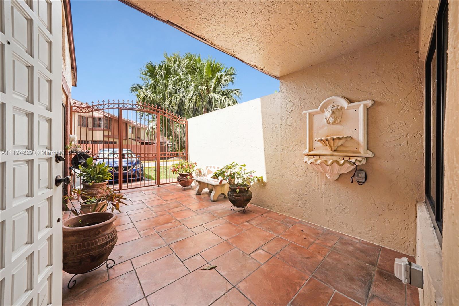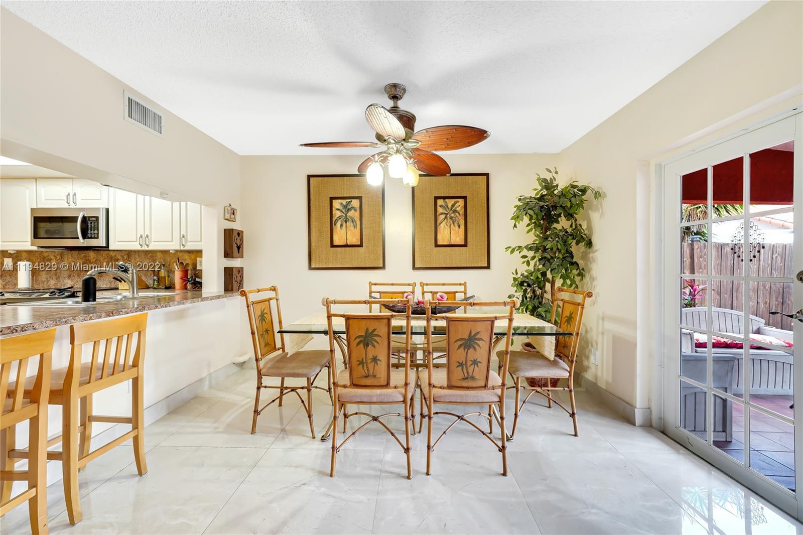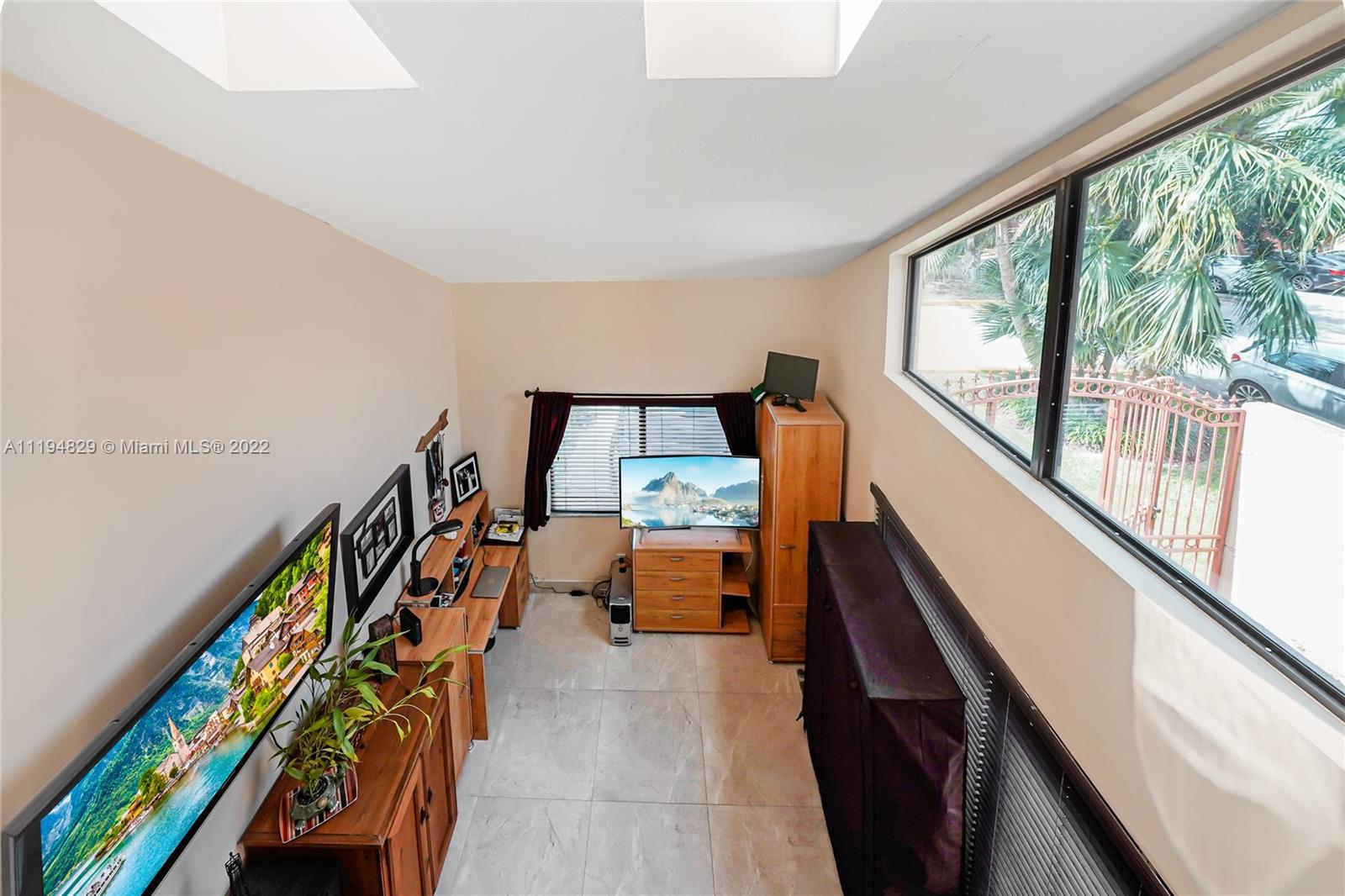 Prepare to fall in love with this beautiful townhouse! Located on a corner unit this lovely abode offers a front courtyard and charming entrance. On the first floor you have a full bathroom, charming open concept kitchen overlooking the living quarters with plenty of natural light coming from the French doors that lead you to the back patio. Large den with 4 skylights and high ceilings. This space can be used as an office, children's playroom or additional bedroom/family room. Upstairs you have 1 full bathroom and 3 bedrooms including the primary suite where you have an additional personal restroom. Private fenced backyard with great space for entertaining or simply enjoy the wonderful year-round weather. Impact windows and porcelain tiles throughout. Community offers pool and clubhouse.