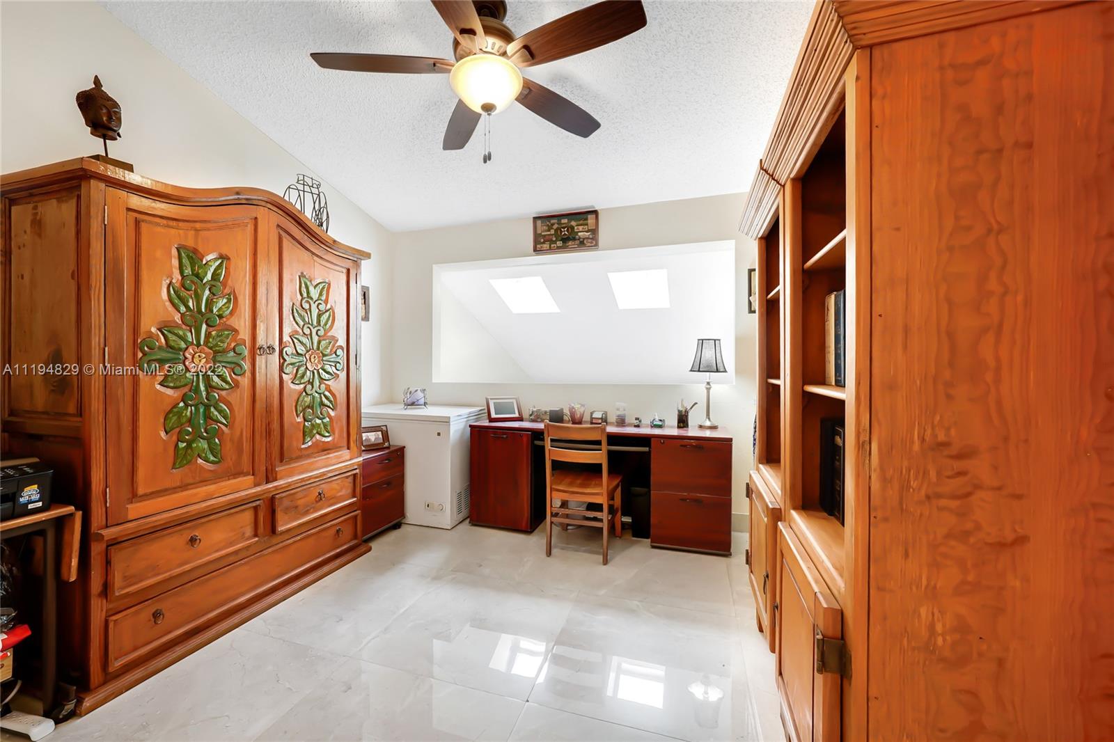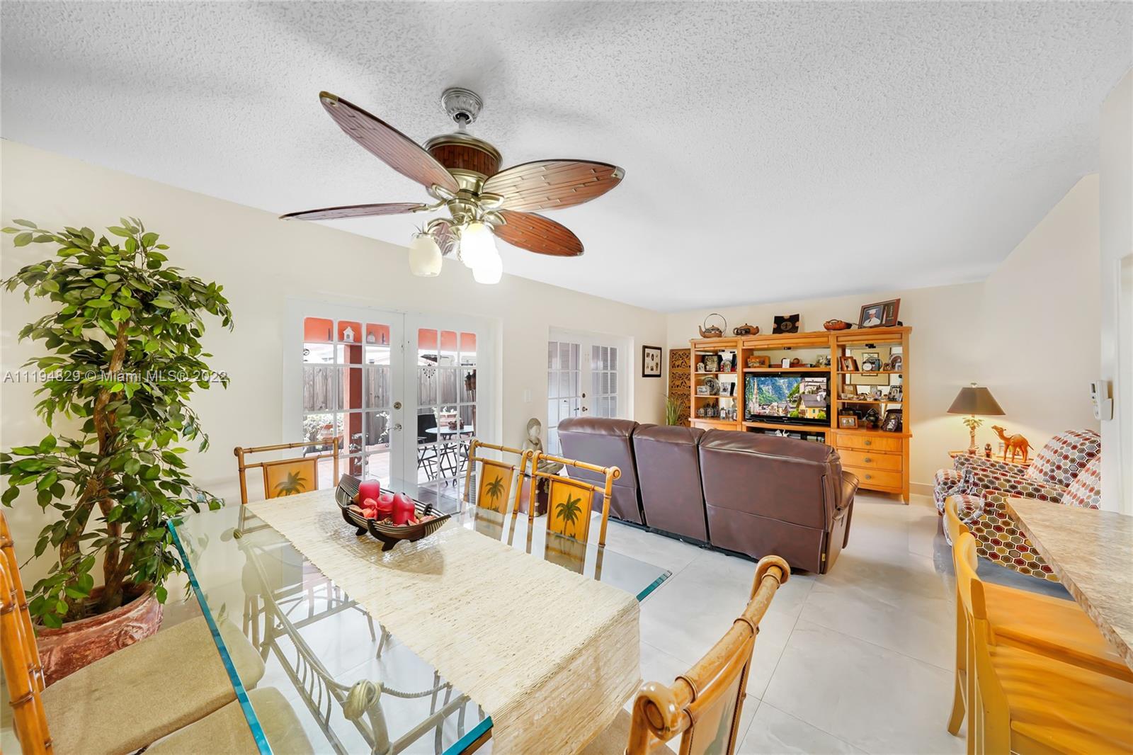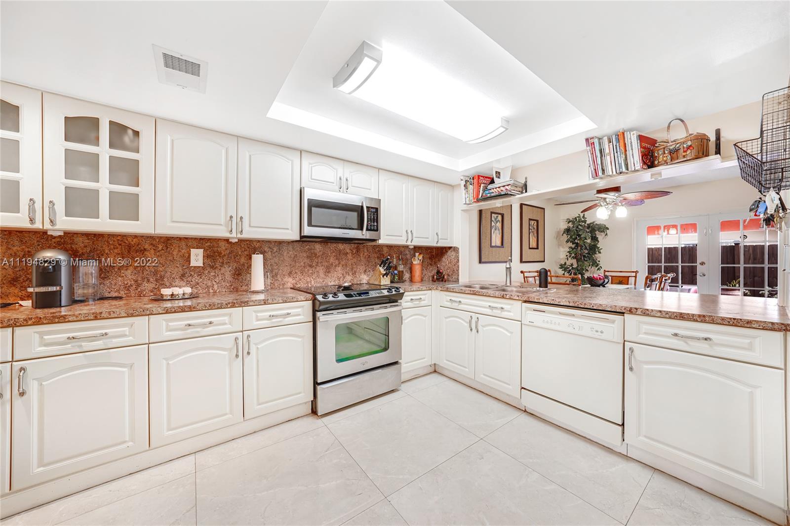 Prepare to fall in love with this beautiful townhouse! Located on a corner unit this lovely abode offers a front courtyard and charming entrance. On the first floor you have a full bathroom, charming open concept kitchen overlooking the living quarters with plenty of natural light coming from the French doors that lead you to the back patio. Large den with 4 skylights and high ceilings. This space can be used as an office, children's playroom or additional bedroom/family room. Upstairs you have 1 full bathroom and 3 bedrooms including the primary suite where you have an additional personal restroom. Private fenced backyard with great space for entertaining or simply enjoy the wonderful year-round weather. Impact windows and porcelain tiles throughout. Community offers pool and clubhouse.