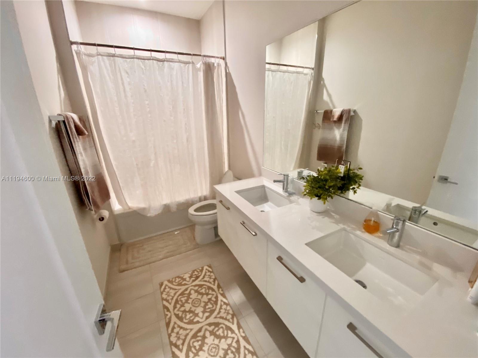 Gorgeous home in Downtown Doral Canarias! Main level on the 2nd floor w/ a great room plus a large kitchen and family room. Large porch that overlooks a lush community garden, 2-car garage at the rear where a courtyard greets you into a first floor to in-laws quarters or home office. All bedrooms have walk-in closets. Master bathroom has a gorgeous bathtub and spacious shower. Home is appointed with the world's most luxurious designer finishes, such as quartz countertops, Subzero/Wolf appliances, beautiful stainless steel hood in kitchen, Kohler fixtures and Italkraft cabinetry. House has a statement glass staircase adds style to the home as does premium tile and wood flooring! This Fiji Model B has 3025sqft (180+ Than A). And Tesla Charger.
