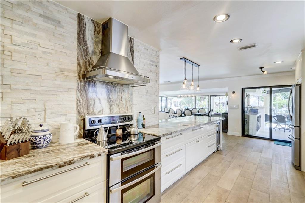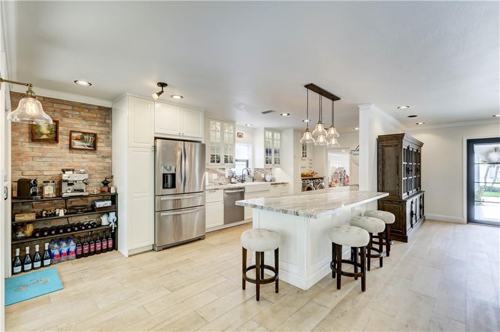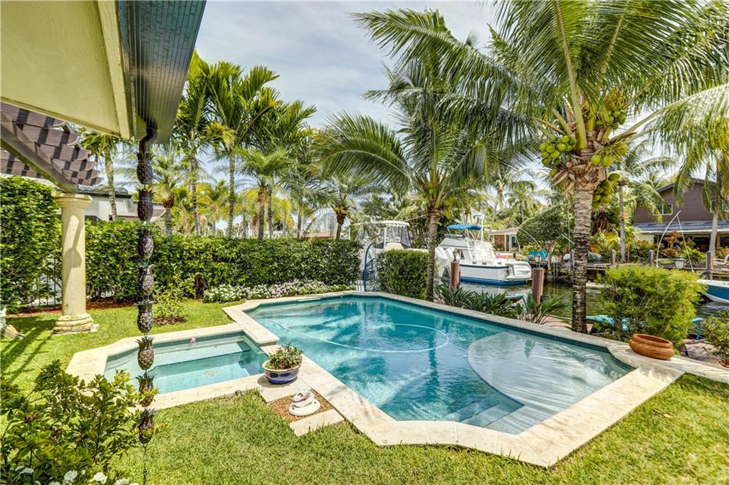 Tastefully updated waterfront home in Pompano Isles. 60' of direct ocean access right off the intracoastal waterway. This home has 3 bedrooms & 2 baths Spacious open floor plan perfect for entertaining indoors and outdoors. Newer kitchen with large island with granite counters, white coastal cabinetry & stainless steel appliances has 2 ovens for the person that loves to cook with wine cooler. Italian porcelain plank flooring throughout living areas and hardwood in bedrooms. Great outdoor space with covered lanai, outdoor bar, heated saltwater pool & spa, tropical landscaping and waterfront dock to accommodate your boat. All impact windows and doors. Brick paved circular driveway and courtyard entry with privacy gate. Near all restaurant's, stores, View this home, love it, buy it !
