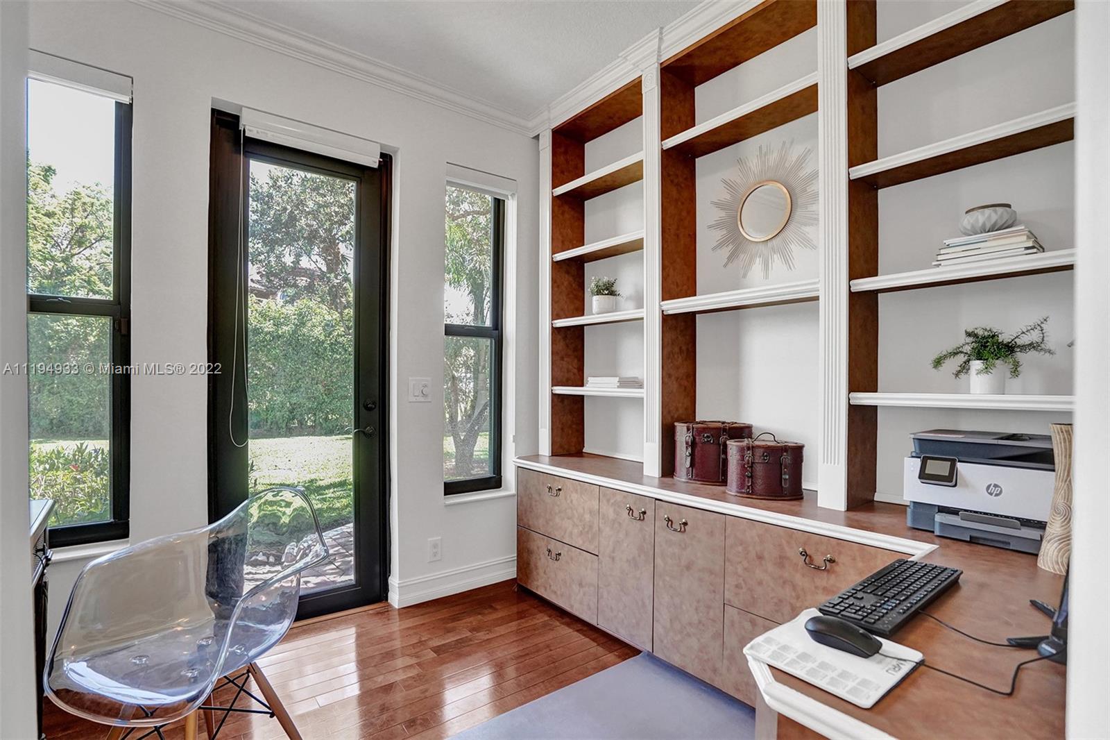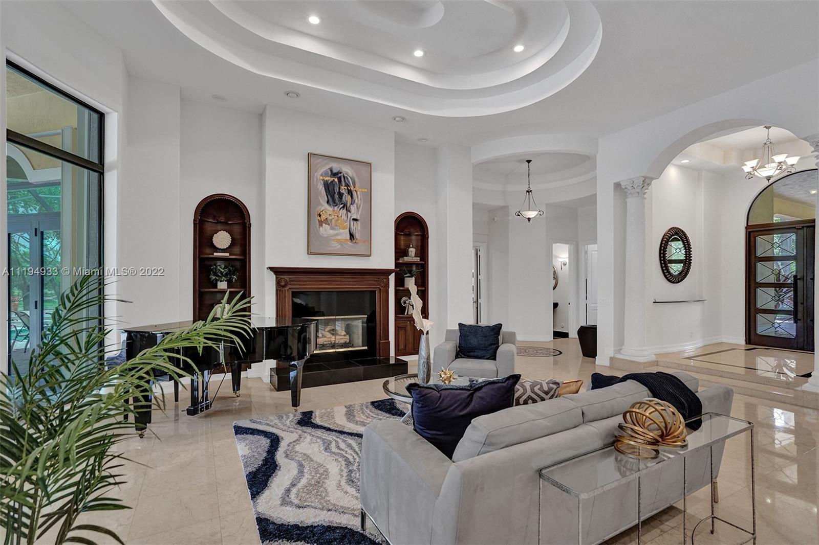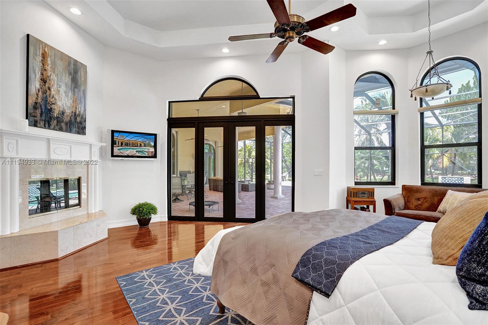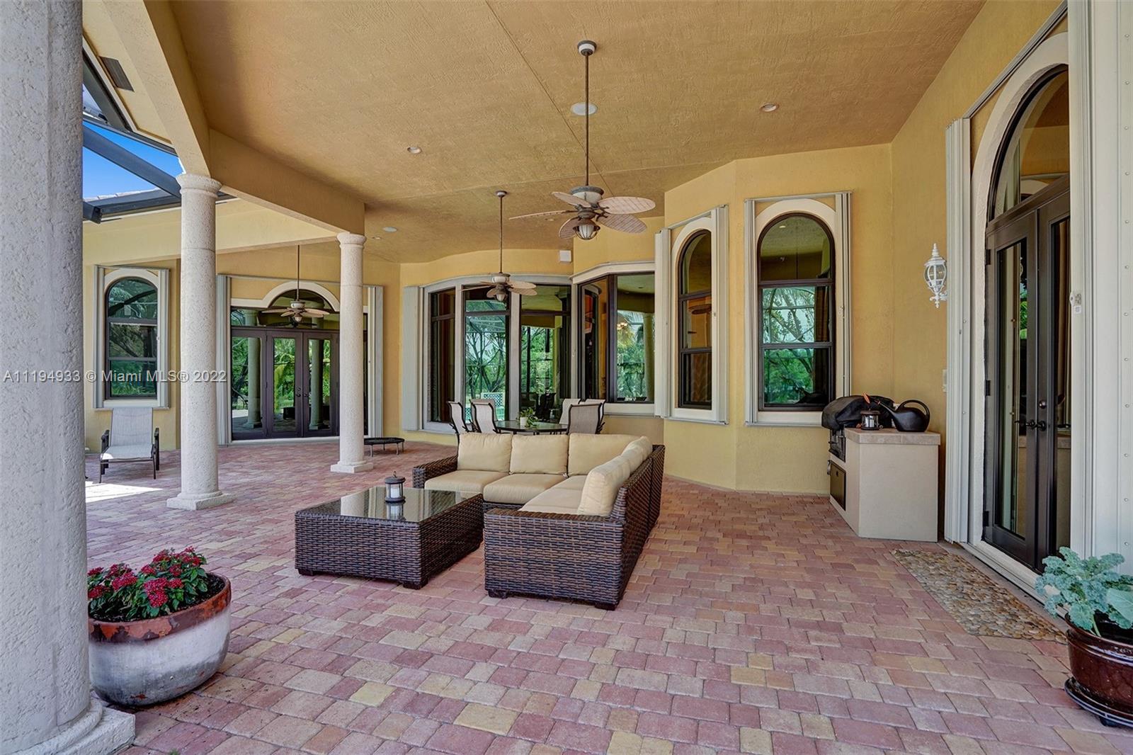 Stunning custom-designed home in the gated community of Windmill Lake Estates that sits on a 1+ waterfront acre. This home features NEW impact windows and doors. 5 bedrooms, 5.5 baths, a formal office, office in the master bedroom, custom theatre room, and den. Newly screened expansive paver patio and salt pool/spa area w/ summer kitchen, 3 car side garage, long circular driveway w/ grand porte-cochere. Marble in all living areas, wood in bedrooms. Sunken bar w/ wine fridge. Fireplace in living rooms and master bedroom. Freshly painted interior. Gourmet kitchen w/ center island, granite countertops, spacious pantry and top of the line appliances. Master bedroom w/ soaring ceilings, and 2 large walk-in closets w/ cabinetry. Marble master bath w/ jacuzzi, bidet, and large walk-in shower.