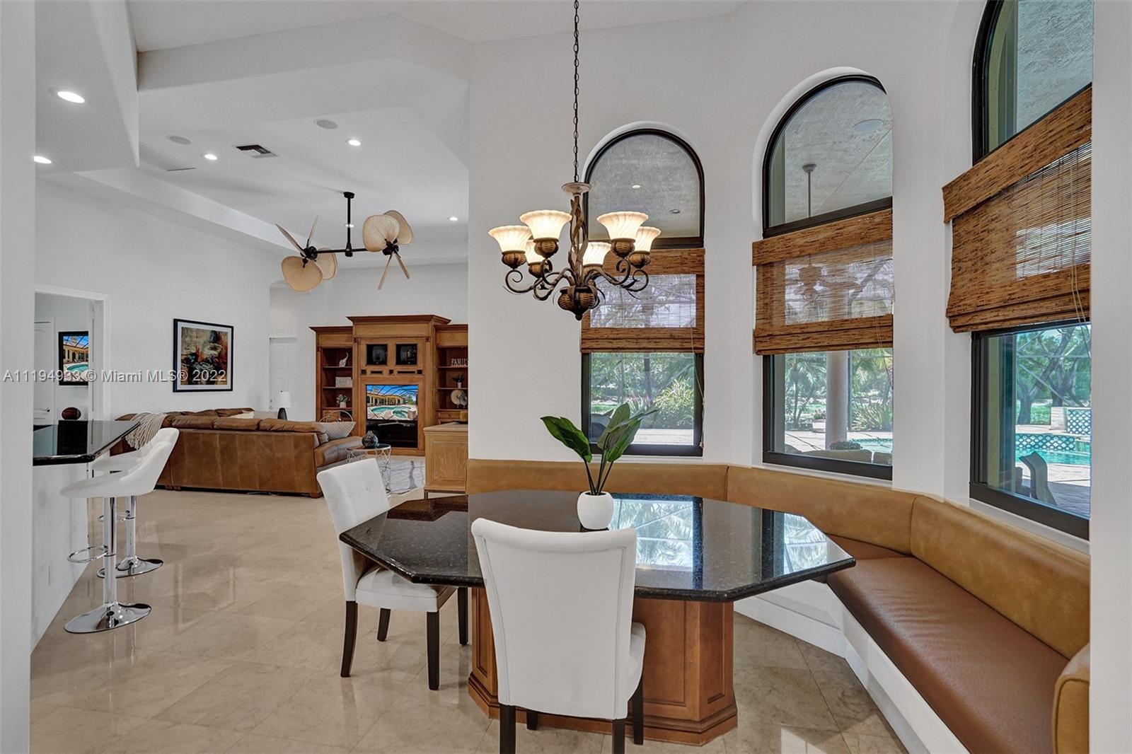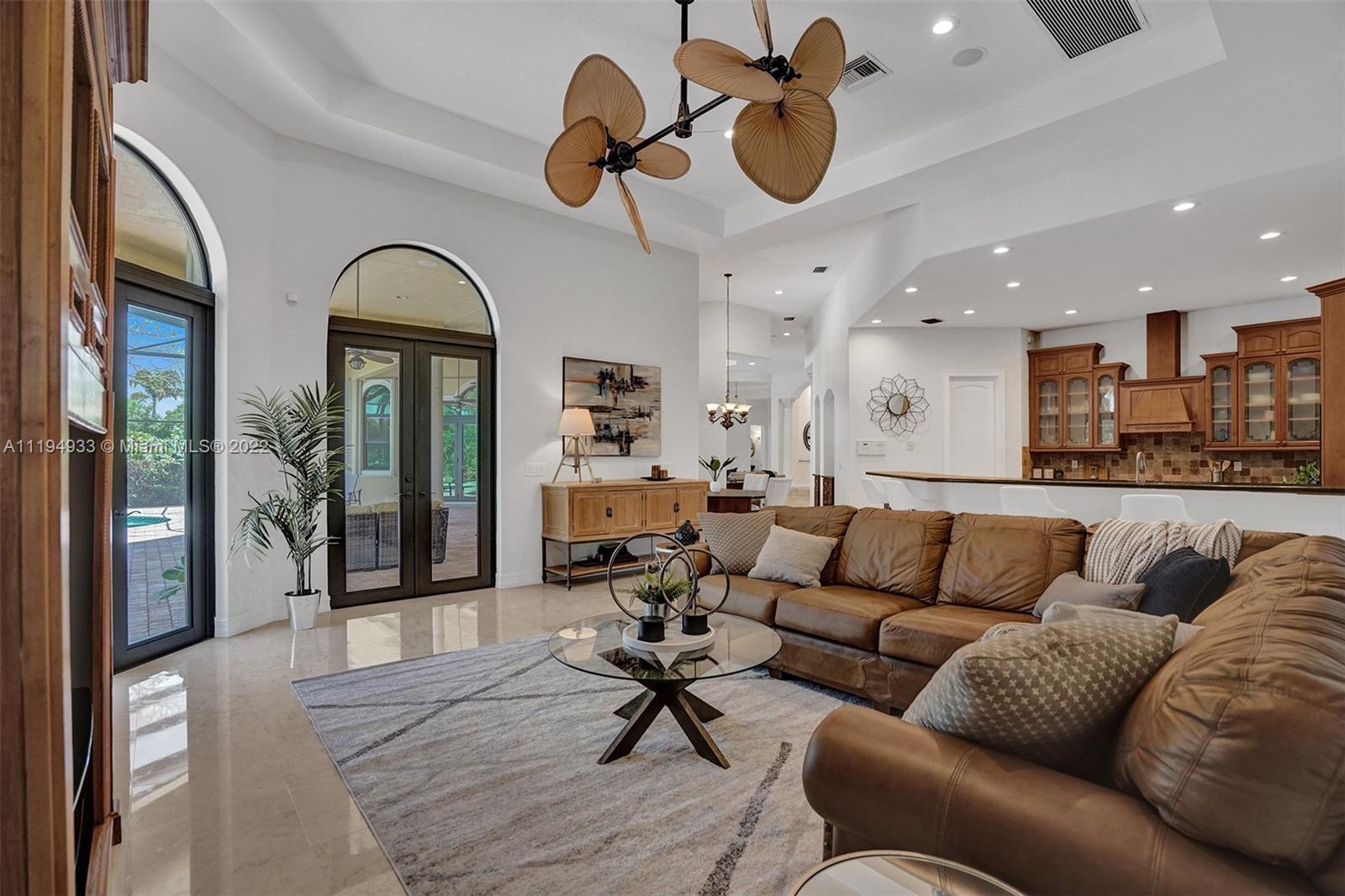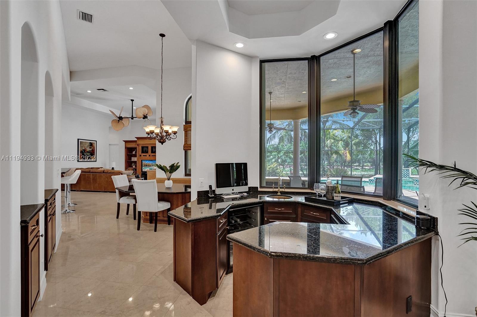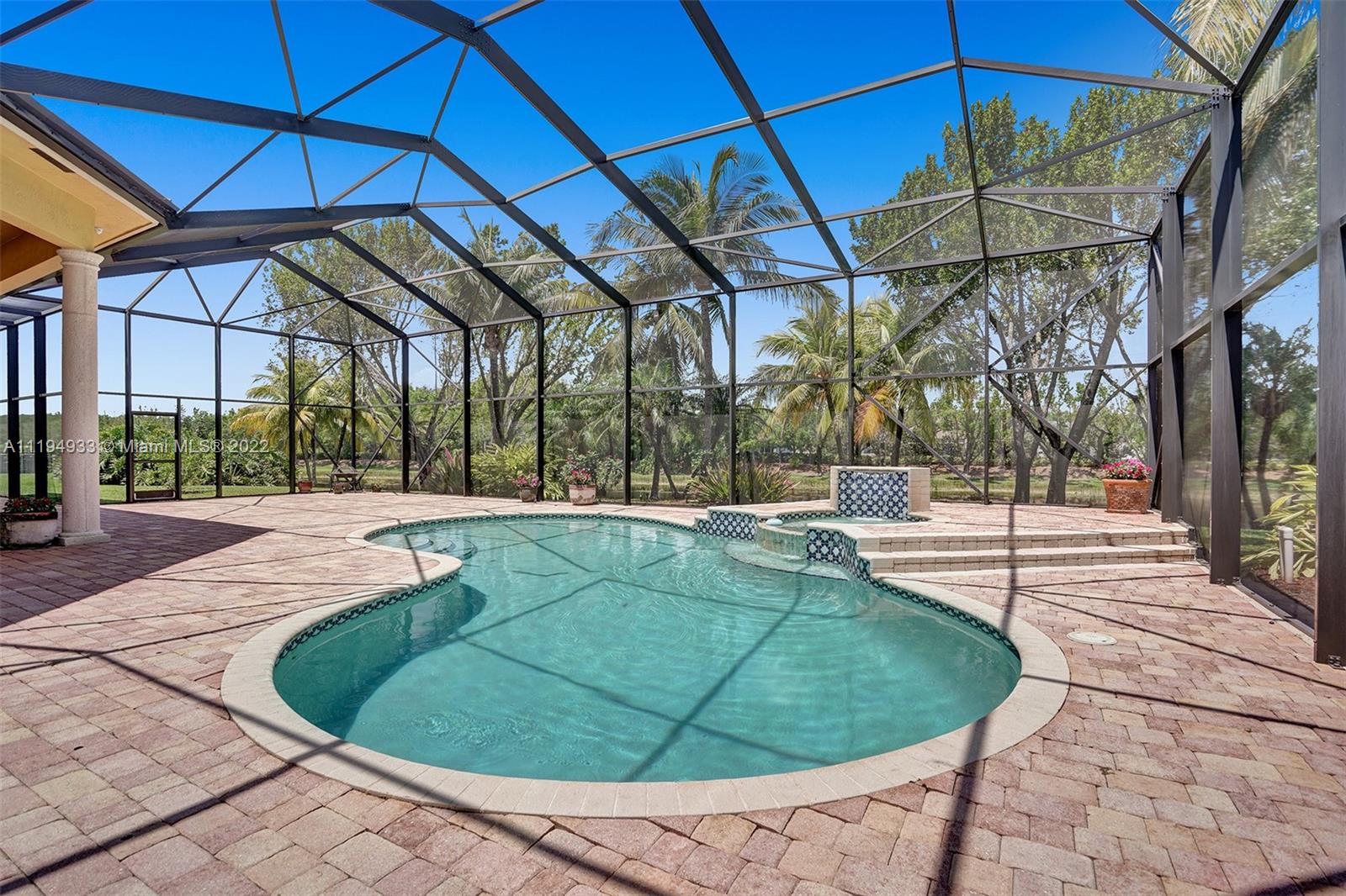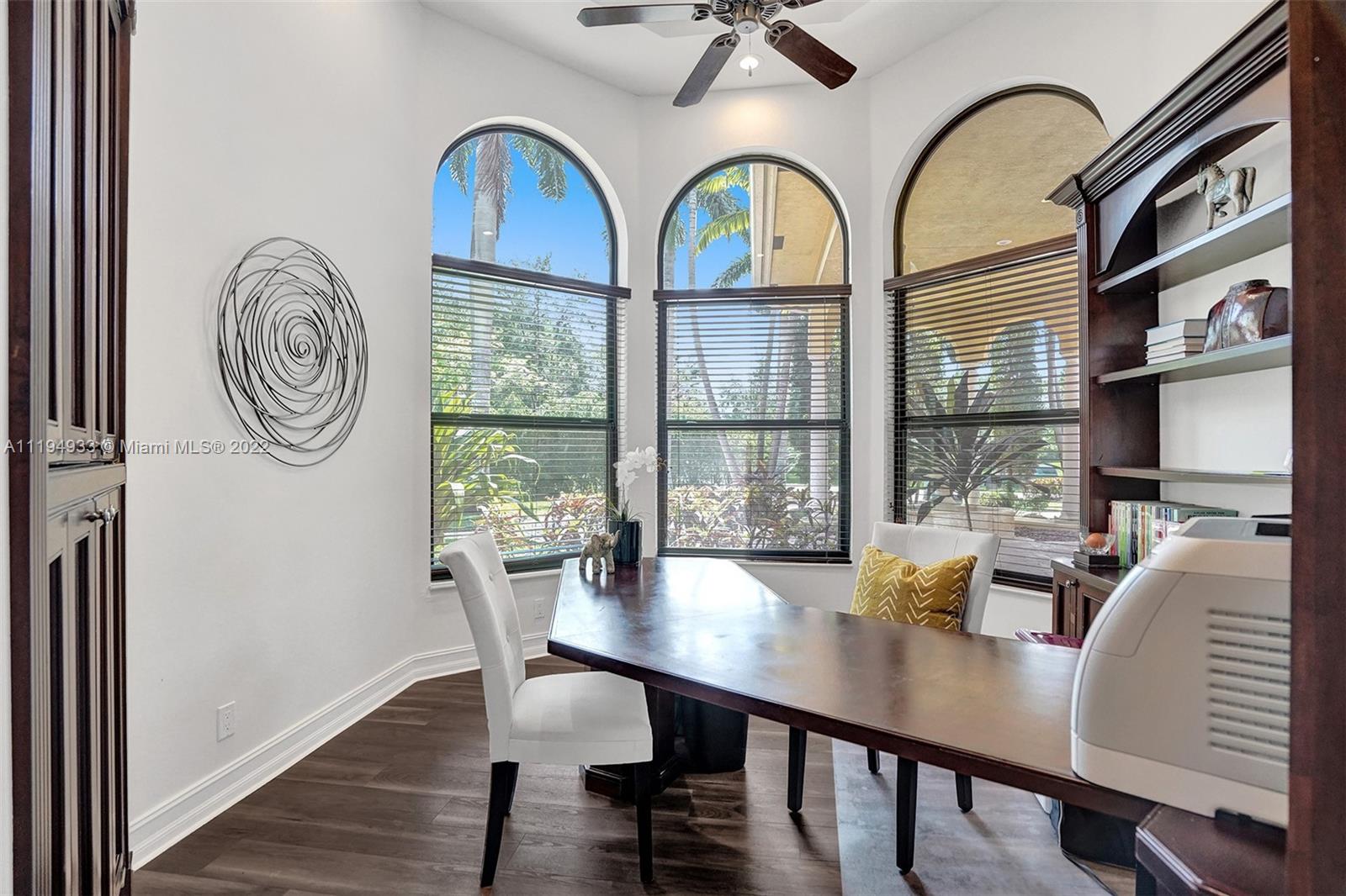 Stunning custom-designed home in the gated community of Windmill Lake Estates that sits on a 1+ waterfront acre. This home features NEW impact windows and doors. 5 bedrooms, 5.5 baths, a formal office, office in the master bedroom, custom theatre room, and den. Newly screened expansive paver patio and salt pool/spa area w/ summer kitchen, 3 car side garage, long circular driveway w/ grand porte-cochere. Marble in all living areas, wood in bedrooms. Sunken bar w/ wine fridge. Fireplace in living rooms and master bedroom. Freshly painted interior. Gourmet kitchen w/ center island, granite countertops, spacious pantry and top of the line appliances. Master bedroom w/ soaring ceilings, and 2 large walk-in closets w/ cabinetry. Marble master bath w/ jacuzzi, bidet, and large walk-in shower.