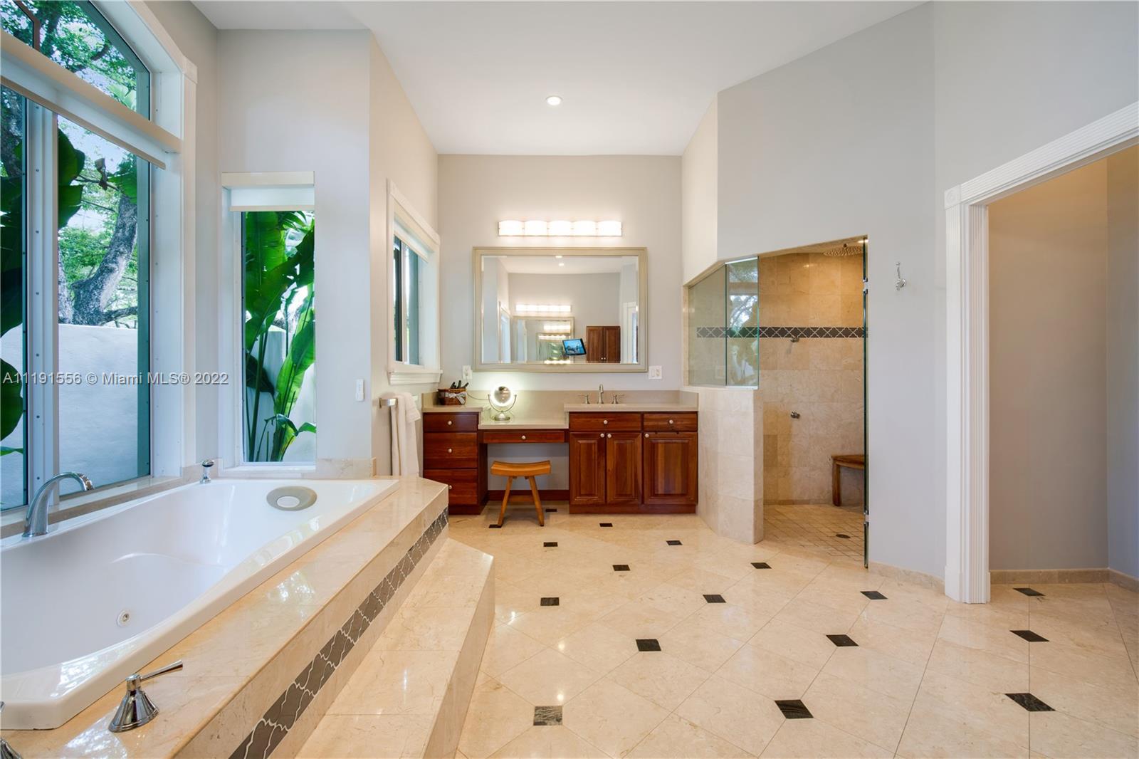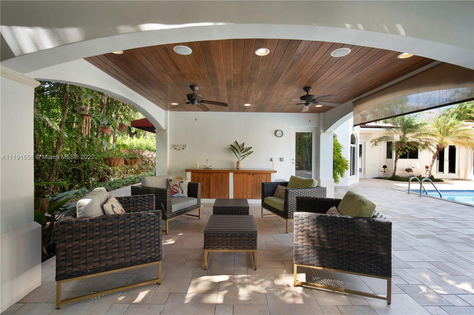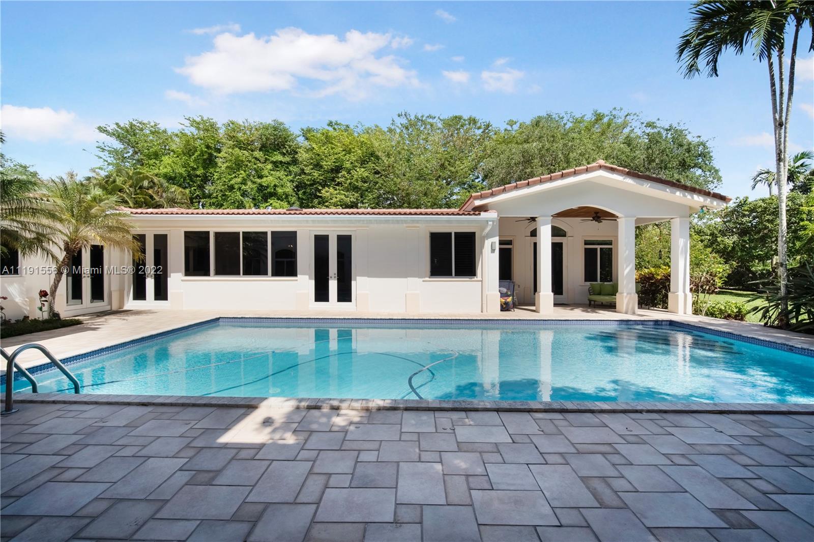 Located on a quiet and scenic street between Coral Pine Park and Pinecrest Gardens, this stunning Pinecrest property sits on a builders acre lot. The main house has 5 bedrooms and 2 are upstairs. The large open kitchen is equipped with top notch appliances and offers a beautiful view to the pool area. The spaces are generous and sunlight pours in throughout the house. The bar in the family room makes it a wonderful area to entertain. The spectacular master suite is over 1,000 square feet of privacy with office spaces, a large walk-in closet, and an oversized bathroom with a jacuzzi. The independent guest house is perfect for visitors or to be used as in-law quarters. The main house is connected to a generator. This resort-like, lush backyard offers lots of covered areas for entertaining.