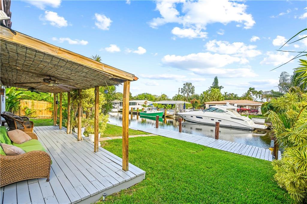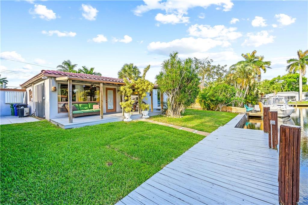 No Fixed Bridges! Unrestricted waterway access to the ocean! Boating community! This recently updated home is situated on a deep-water canal in the Citrus Isles. This beautiful home has warm, naturally lit living spaces, all renovated from the original 50s design. The kitchen comes with all high-end stainless appliances, granite countertops, custom cabinetry, a large gas stove, and features a custom-designed art piece. Through the glass back door are a covered porch and seating area great for relaxing and get-togethers. The expansive outdoor space can comfortably fit a pool. Water frontage on the canal is 65', and the property can accommodate up to a 55' vessel.