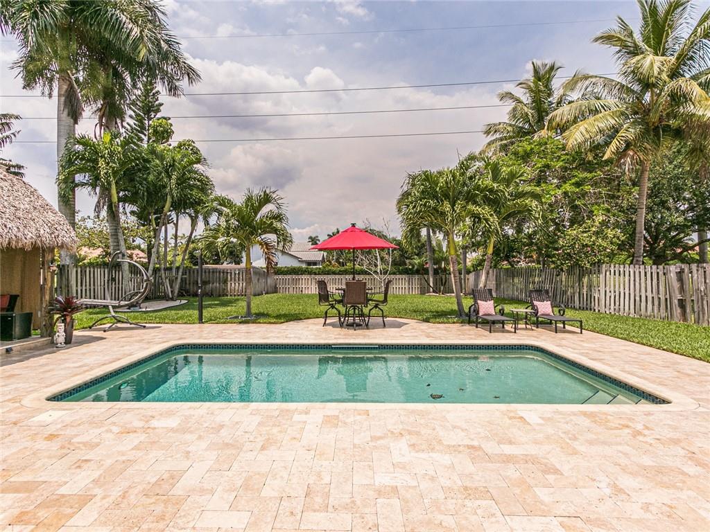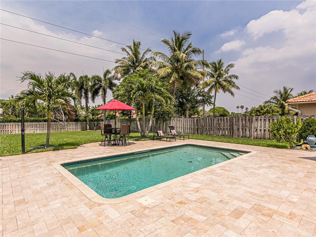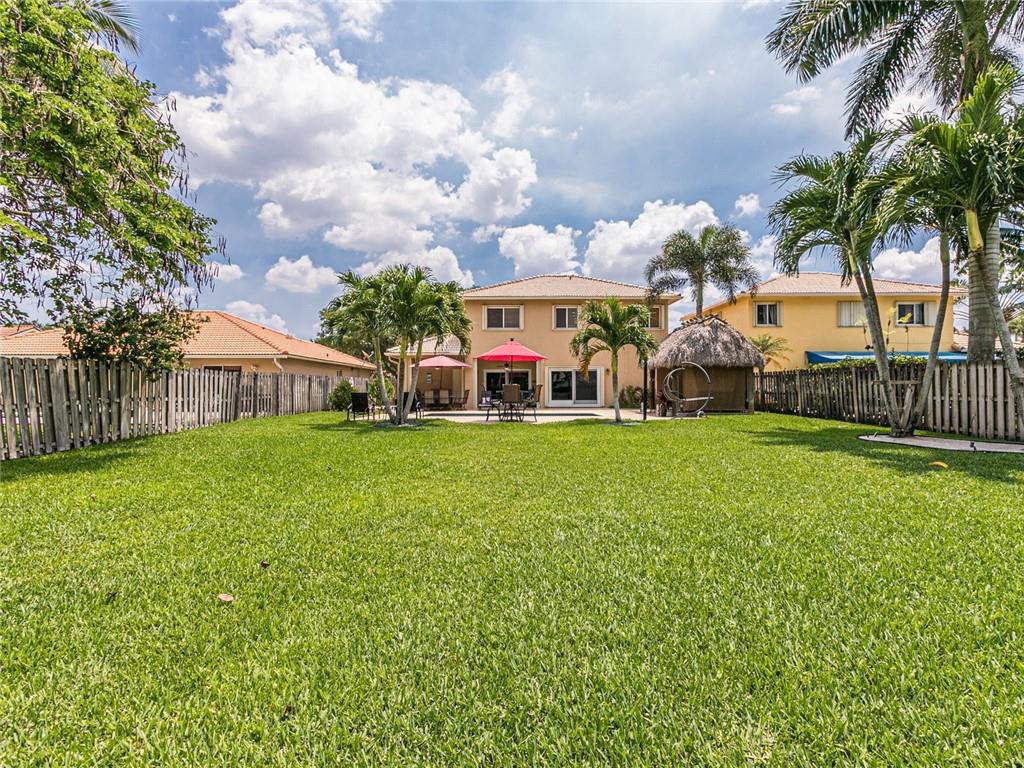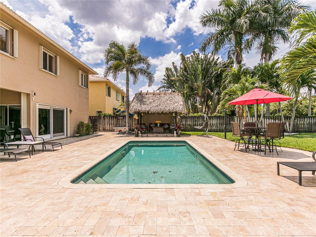 Outstanding opportunity to own this amazing home! This spacious home has 5-bedrooms & 3.5 bathrooms. One bedroom & full bath on the main floor. Kitchen was updated with granite counters & solid wood cabinets. Separate laundry room off kitchen. Hurricane shutters throughout plus impact sliding doors. Neutral tile flooring on the main, wood flooring upstairs. Make memories in the huge backyard, it's a tropical oasis with a private pool, a nearly 1,200sf travertine deck and a Chickee hut built in 2016 with electric! Plumbed for an outdoor kitchen. The manicured lawn has an electronic irrigation system that draws water from the canal. Garage has built in cabinets and Swisstrax flooring. Too much to list - see additional features sheet. Hurry this won't last! Professional pictures coming soon.