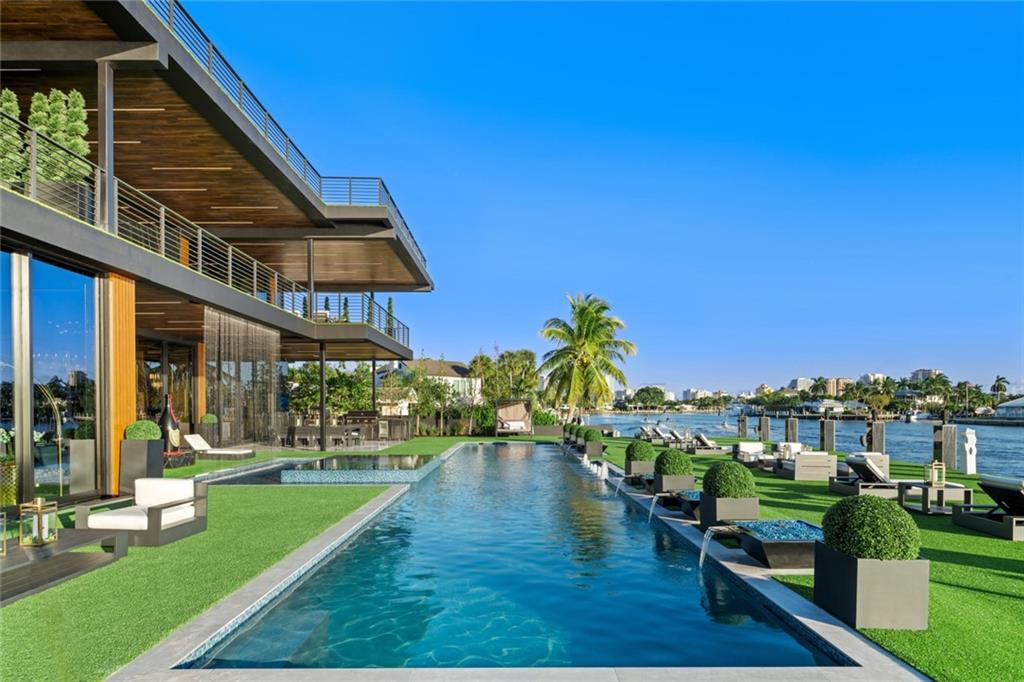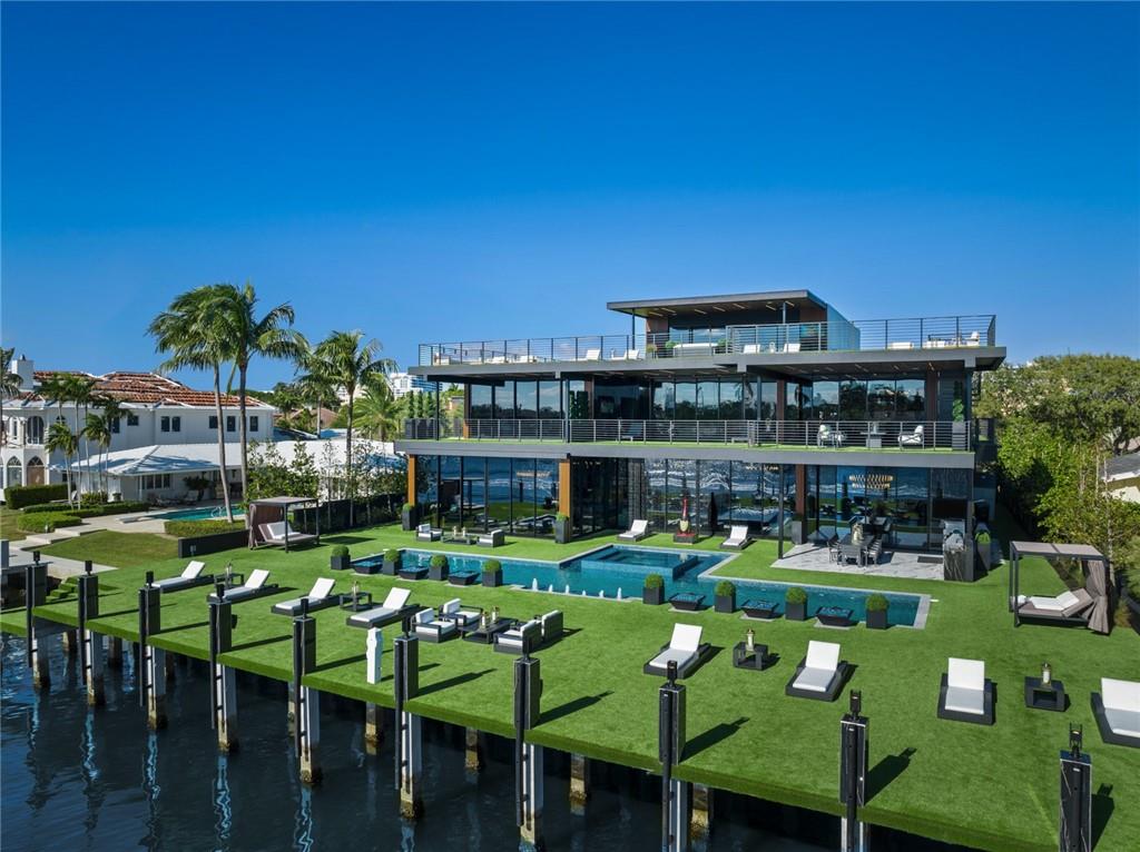 THE most amazing house for sale in Fort Lauderdale is now ready to move in! Wide open water views Located in one of the few gated neighborhood with dedicated police patrol for your privacy and security. This magnificent solid concrete modern house has high ceilings, floor to ceiling double insulated glass sliders . Immense kitchen, wine cellar, 5 bedrooms, 11 bathroom, sauna, club room, gym, office, library, 2 laundries, home theater, all with incredible finishes and details never seen before. Commercial grade Otis elevator. Huge pool and spa, brand new seawall with 25'X110' concrete dock with all necessary power for a superyacht. Over 6,000 sq/ft of roof terrace with putting green and spa. Just too much to list. House has just been completed new video available