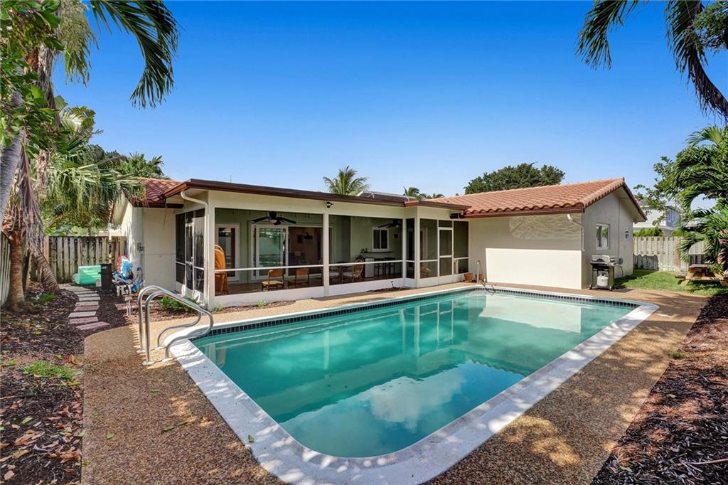 Hidden gem in Coral Ridge Country Club on one of the quietest streets. 3/3 with POOL. 2 Primary Bedrooms both En-Suite with walk in closets. 3rd Bedroom good size. Kitchen equipped with all Stainless Steel GE Appliances and has lots of counter and cabinet space. Hardwood and tile throughout. BRAND NEW IMPACT WINDOWS AND DOORS brings in lots of natural light. Epoxy Flooring in 2 car garage with loads of built in cabinetry and front loading GE Profile Washer/Dryer. Screened in patio overlooking pool adds for even more living/entertaining space. Home has New A/C, Hot Water Heater and Electric. Other features included are: ADT Alarm System, NEST Thermostat, Custom Brick Firepit, Ring Doorbell. Close to shopping, dining and beaches.
