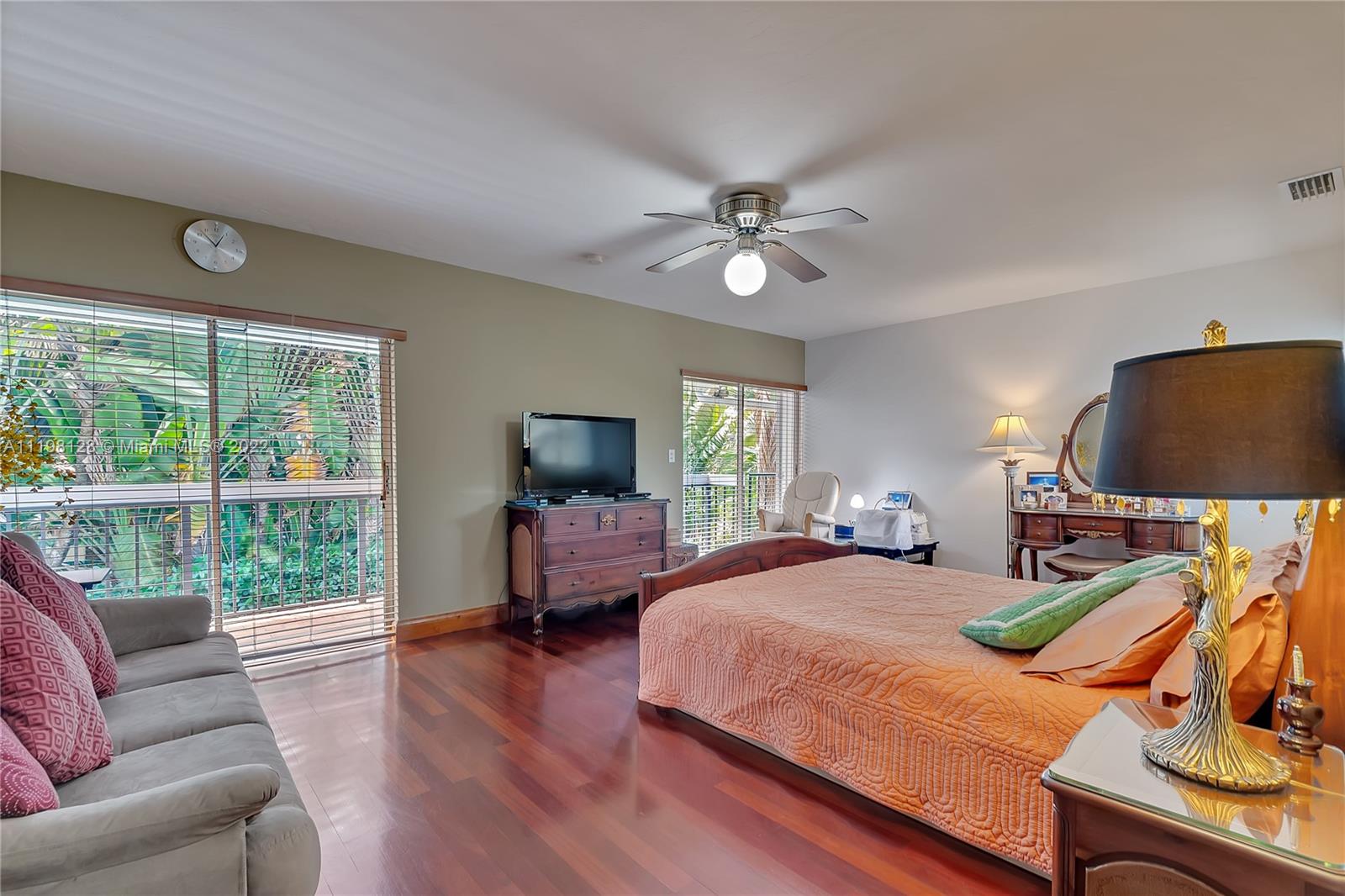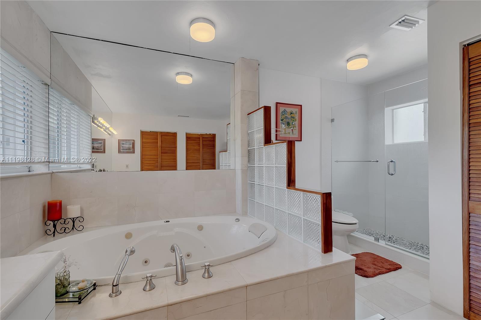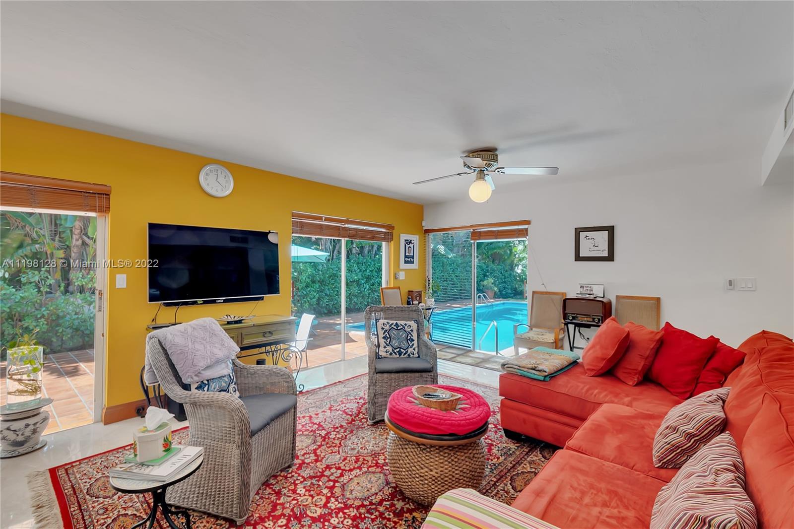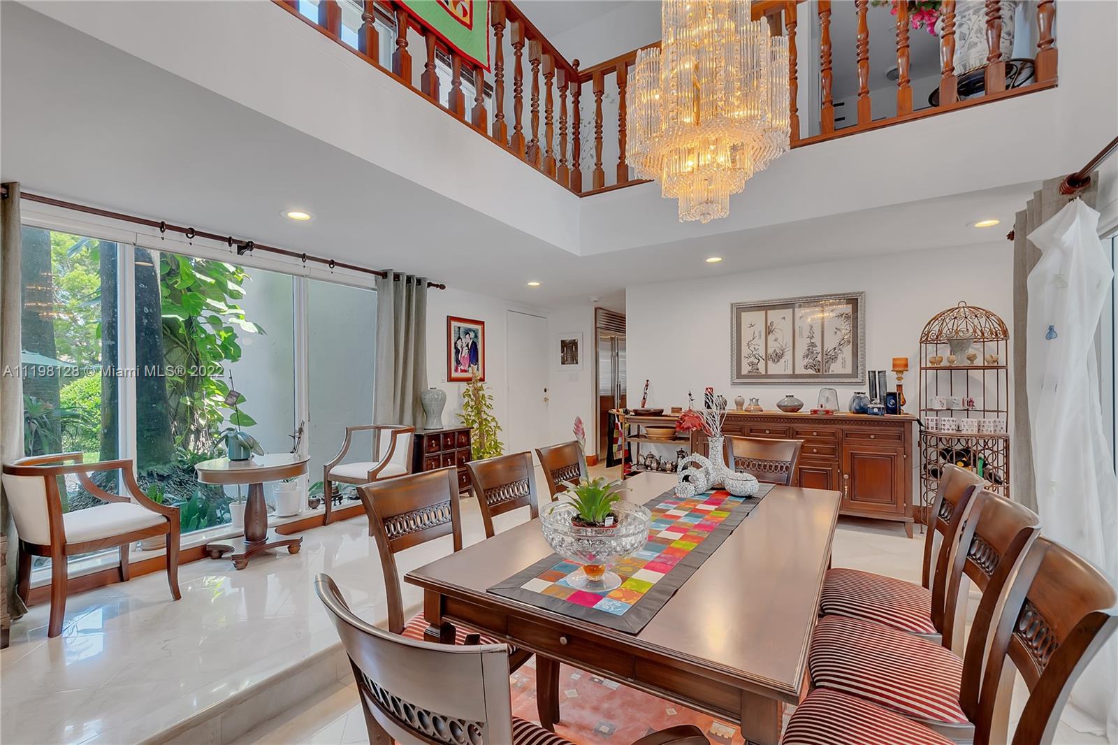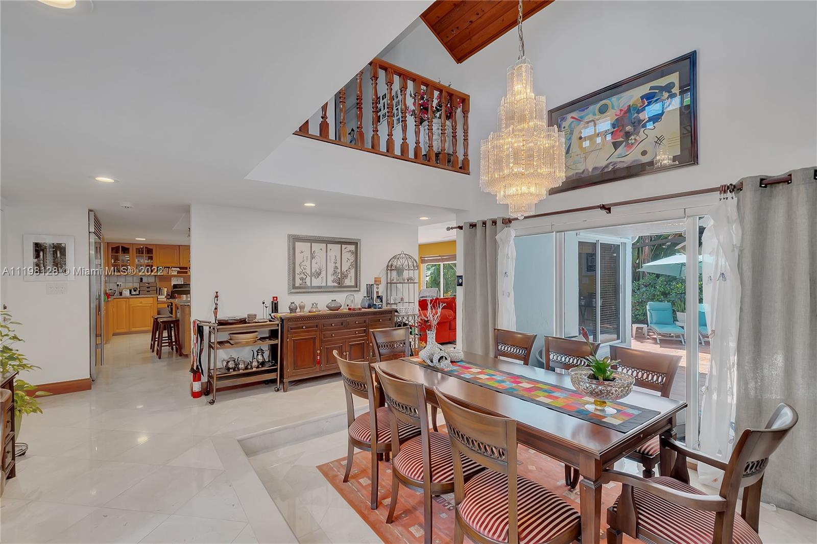 Fantastic, contemporary 5 bedroom/ 4 bathroom home tucked away on a quiet street in gated Pinecrest by the Sea. Enter this lovely home by way of the convenient porte-cochere. Grand formal living and dining rooms with soaring tongue and groove, vaulted ceilings. Spacious kitchen features plentiful cabinetry, granite countertops, new subzero refrigerator, double ovens, island with seating and opens to the large family room with beautiful views of the tropically landscaped backyard and pool. Office suite with bedroom and cabana bathroom downstairs. 4 additional bedrooms, including the generously-sized master suite, are located upstairs. New roof and AC units. Voluntary HOA, roving security. 2 car garage and circular driveway.