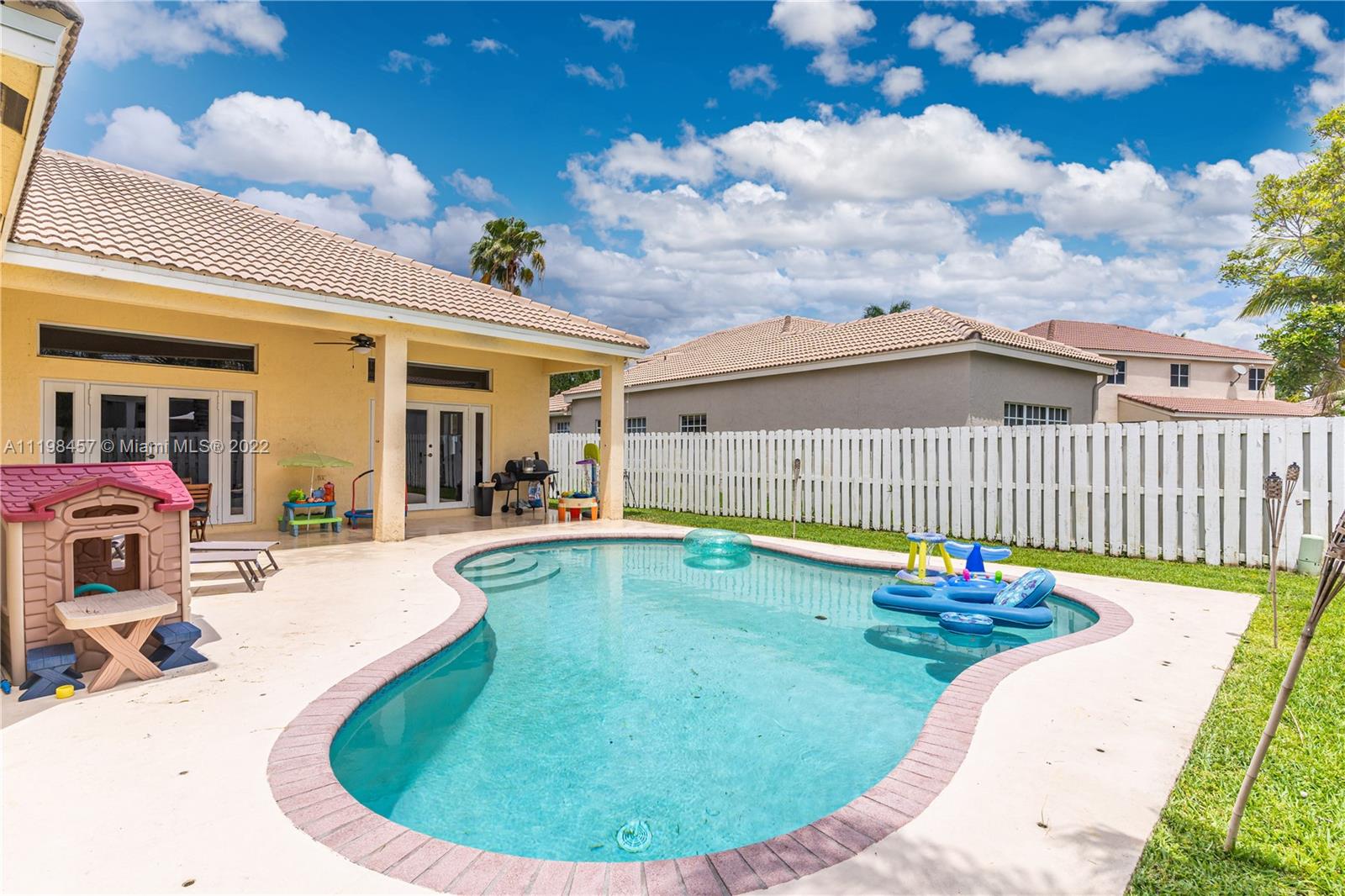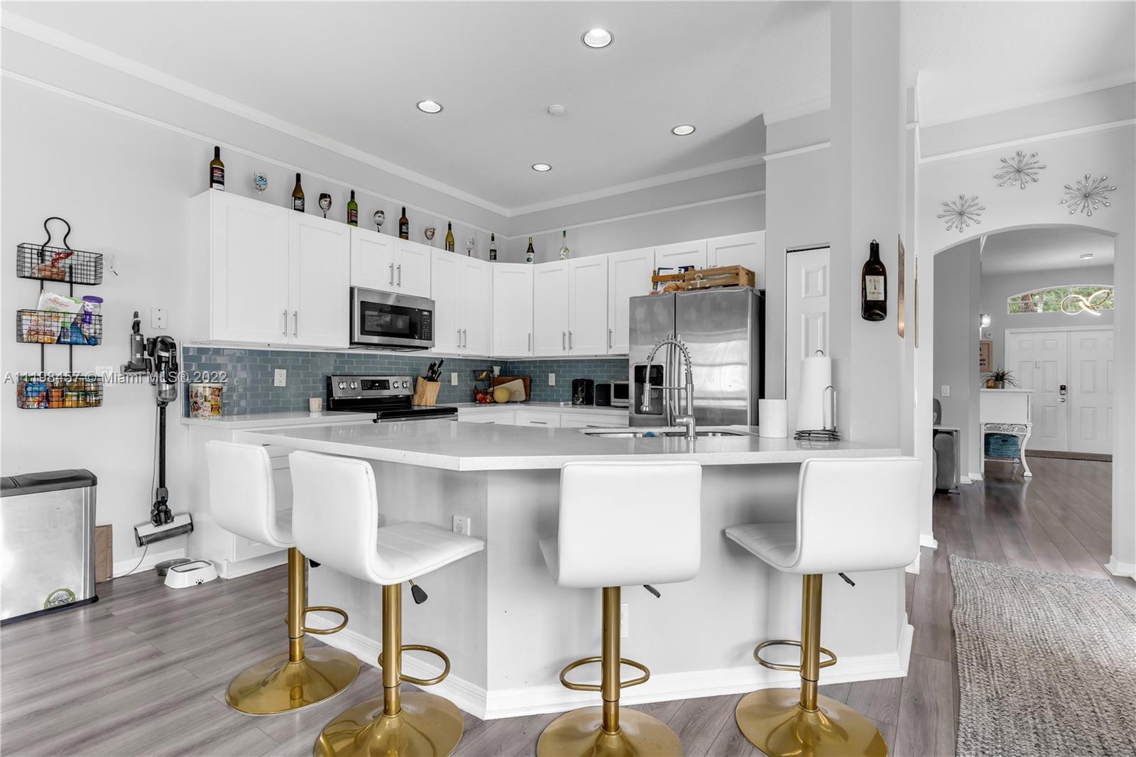 This is your chance to own a piece of paradise in Weston, Florida. This immaculate 4-bedroom, 2.5-bathroom home comes with a 2-car garage, laundry room with tub, and private backyard pool. You’ll be greeted by laminate wood floors, a picture-perfect living room view of your private backyard pool, and an adjoining poolside kitchen. The remodeled kitchen features stainless steel appliances, quartz countertops, and a new dishwasher. Have peace of mind with the Smart Home technology; Smart door lock, Ring doorbell, and security system. In addition, this property features: Automatic sprinkler system, and a new Energy Saving pool pump. Enjoy all that Weston has to offer in this family-friendly community complete with A+ schools. Close to Sawgrass Mills and the Turnpike for easy commuting.