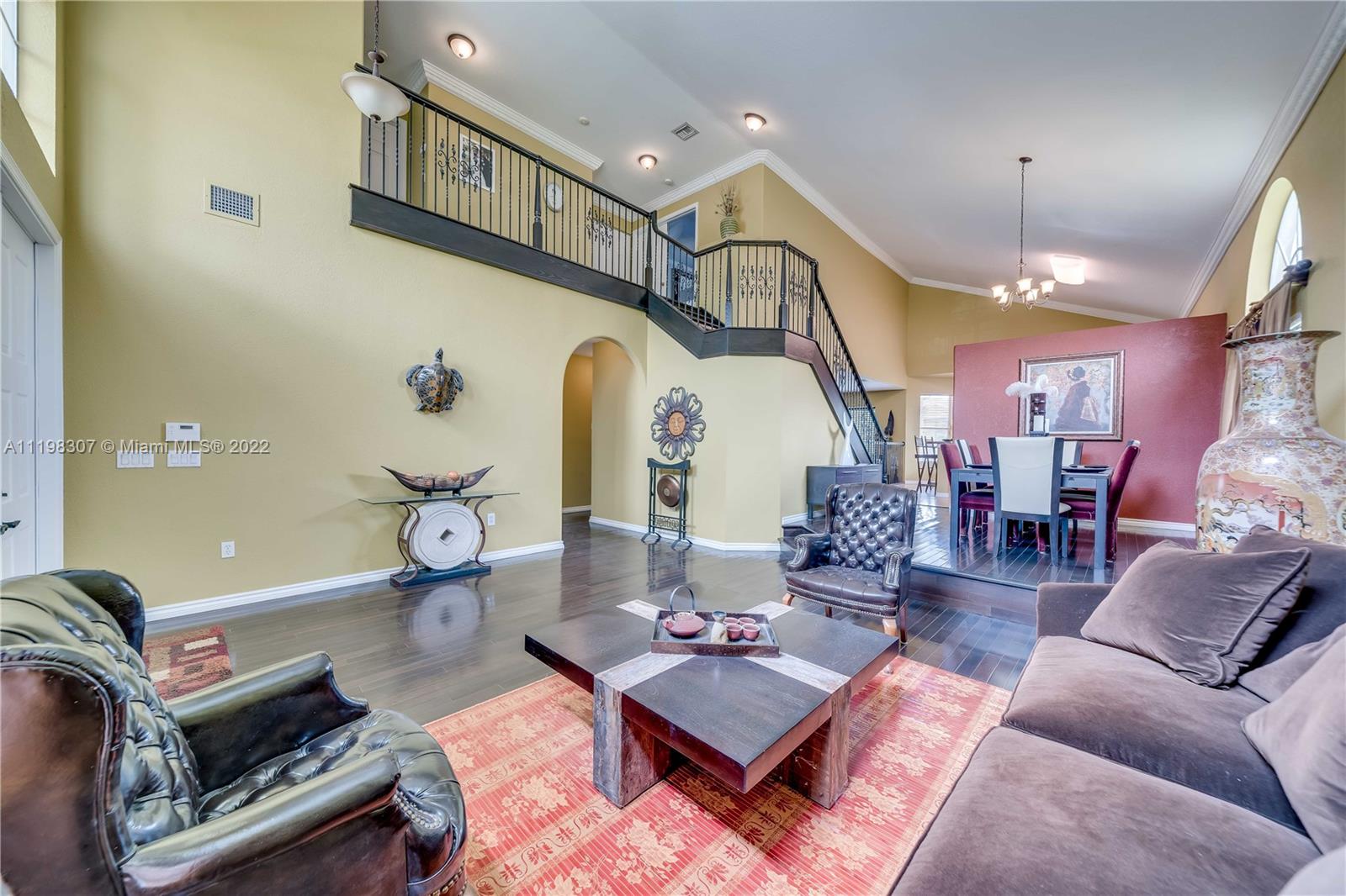 Beautiful 4/3 two story home in sought after guard gated Silver Isles! This home boasts volume ceilings, beautiful hardwood floors, and a bedroom and full bath on the first floor! The first floor offers expansive living areas ideal for any entertainer! Gourmet kitchen with granite counter tops and stainless steel appliances with views of the pool area and lake! Expansive master suite featuring his and hers bathroom , walk-in closets, and a private balcony overlooking lake and pool.
