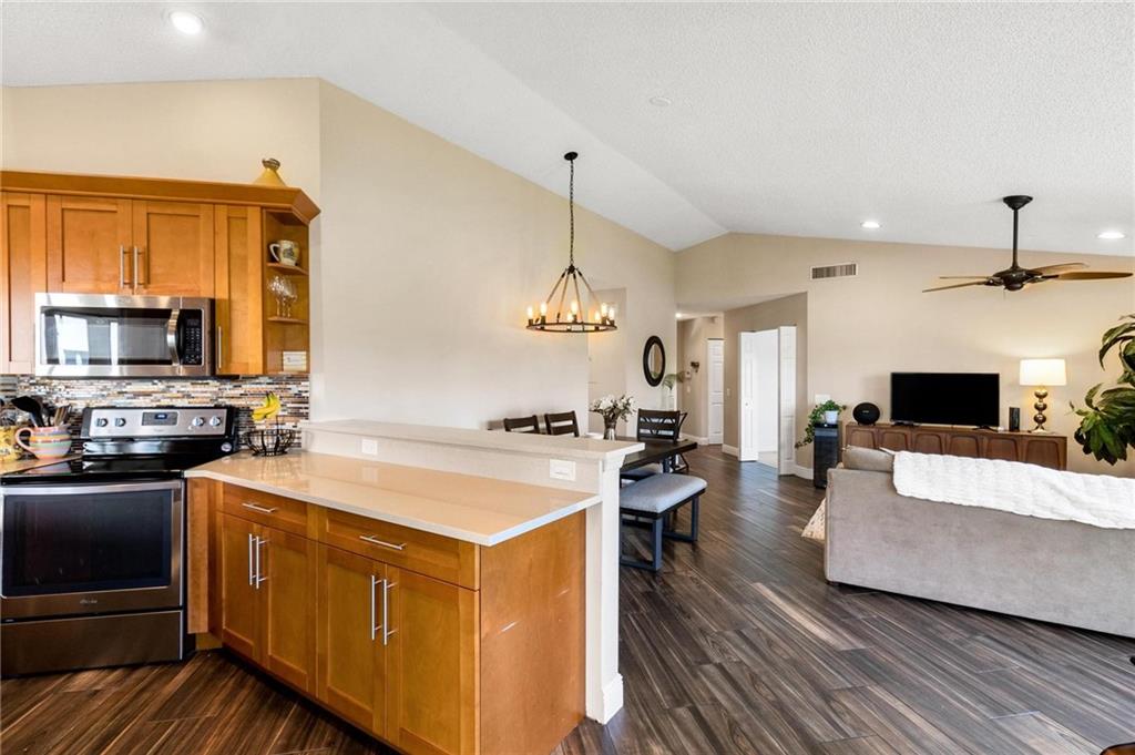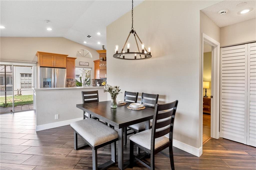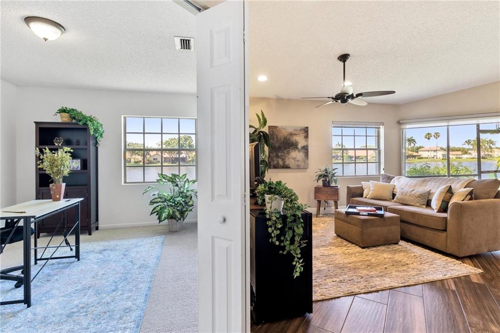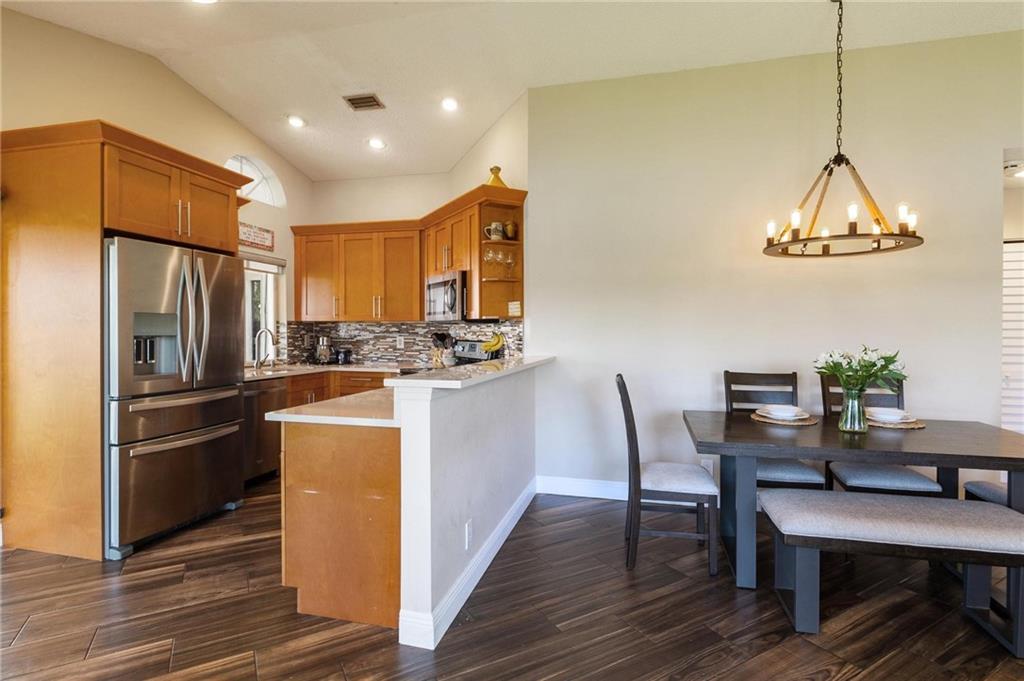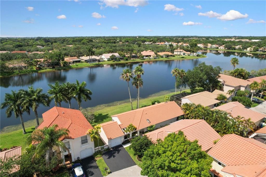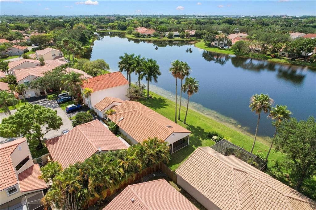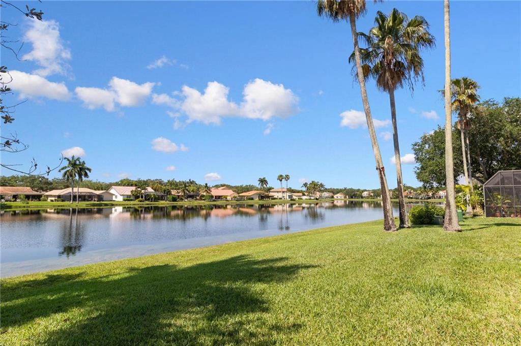AMAZING VIEWS from this Lakefront home in Garden Homes, located in the heart of Weston's quiet neighborhood of Country Isles. Walking distance to Country Isles A Rated Elementary school, and short driving access to other top-rated schools (zoned for Cypress Bay high school). Walking distance to 2 beautiful parks. Mature trees and lush, meticulous landscaping throughout the area. Charming & immaculate 3 Bedrooms, 2 bathrooms w/screened-in patio & 1 car detached garage. Renovated kitchen with quartz countertops and stainless steel appliances. Both bathrooms have been renovated recently. Hardwood look-alike ceramic tile in living room, kitchen, and foyer; laminate in 2 bedrooms & Berber carpet the 3rd bedroom, used as office/den. Skylight ceiling window in the master bathroom. Community Pool.