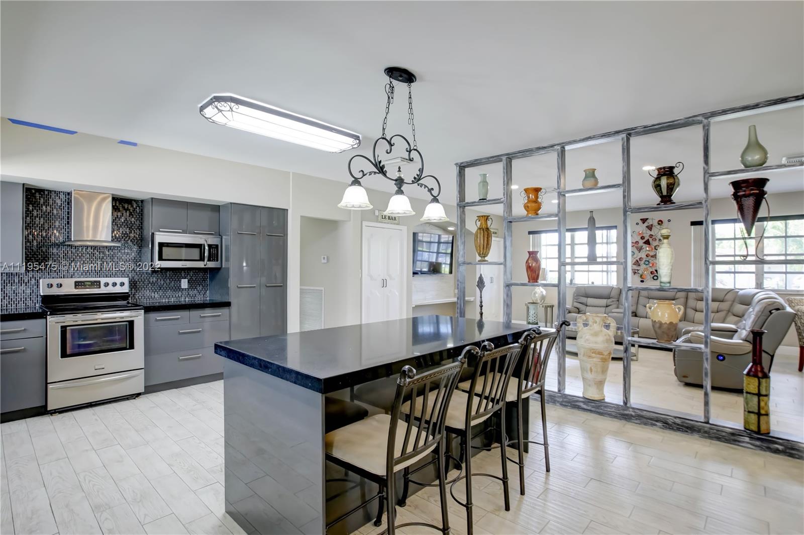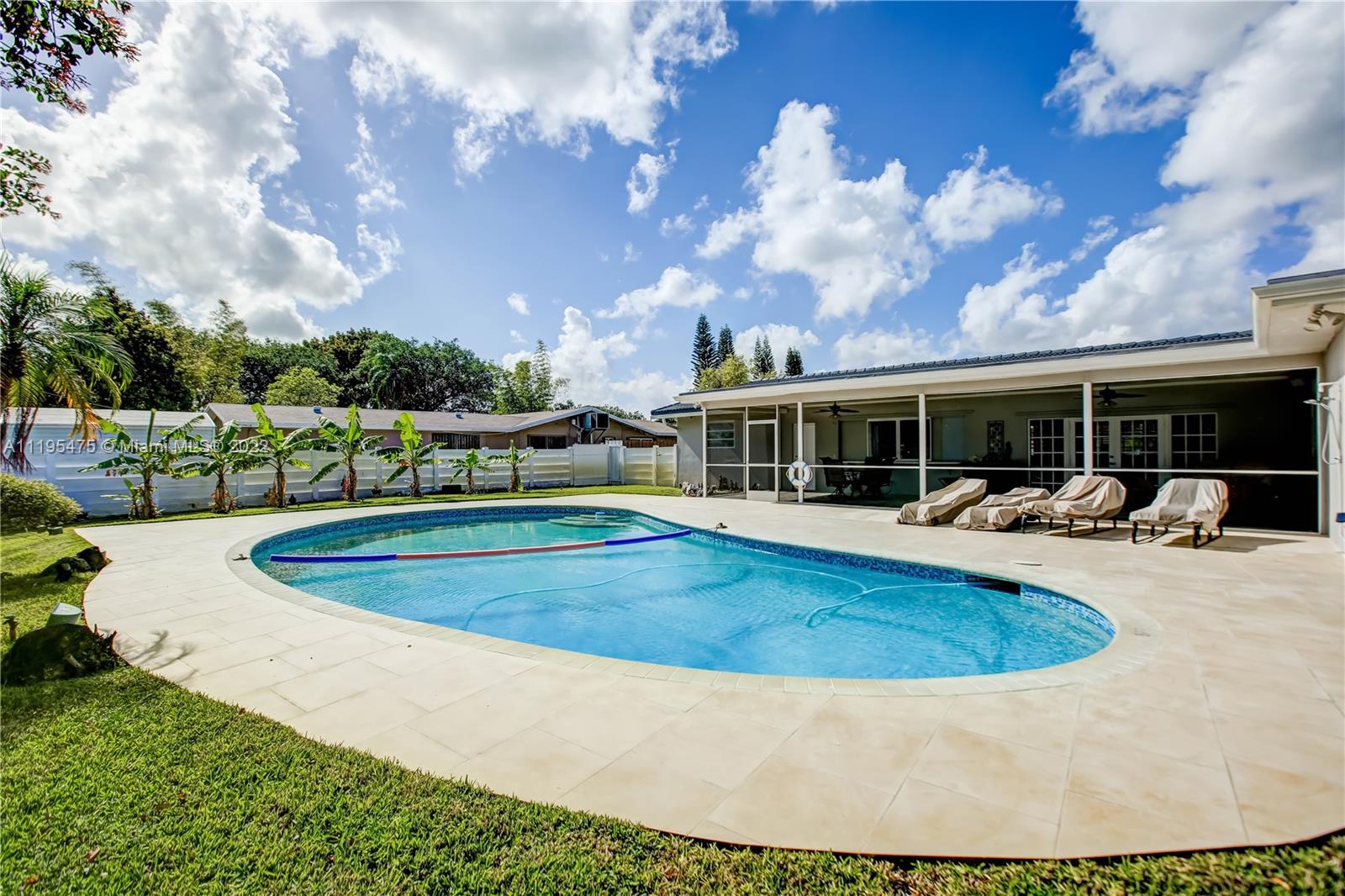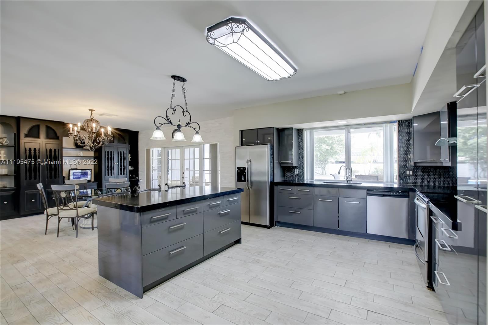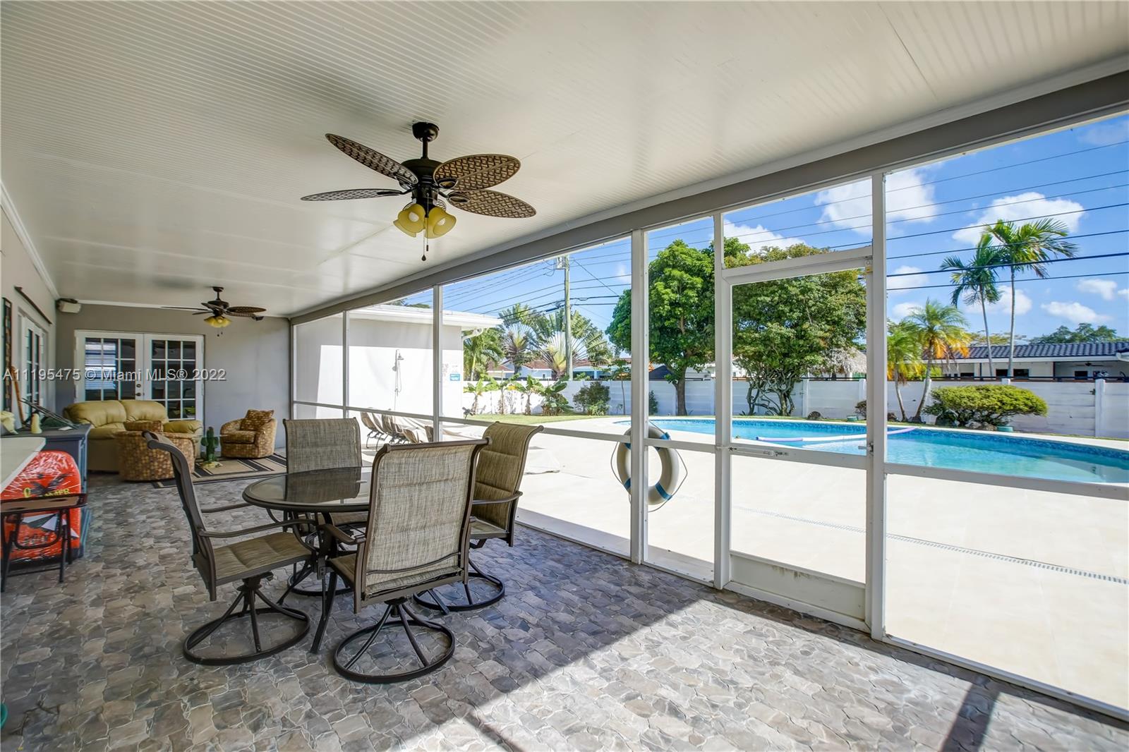 Gorgeous Modern Open Floor Plan as soon as you open the door. Kitchen, Family Room, Dining Area, Living Area are all in 1 open space. Amazing home to entertain with your Family and Friends. You will love this large backyard with new pool deck 2022 and oversized screen porch. Porcelain Tile Throughout, New Kitchen 2013, All new bathrooms 2022, New Flat Roof 2021, New AC 2020, New Tankless Water Heater 2019. Bar area, electronic closet, Cabana Bath, Circular Driveway, Hurricane Panels. Close to all restaurants, turnpike, 95. One of the nicest homes in the area. No HOA. Perfect for AIRBnb and Vacation rentals.