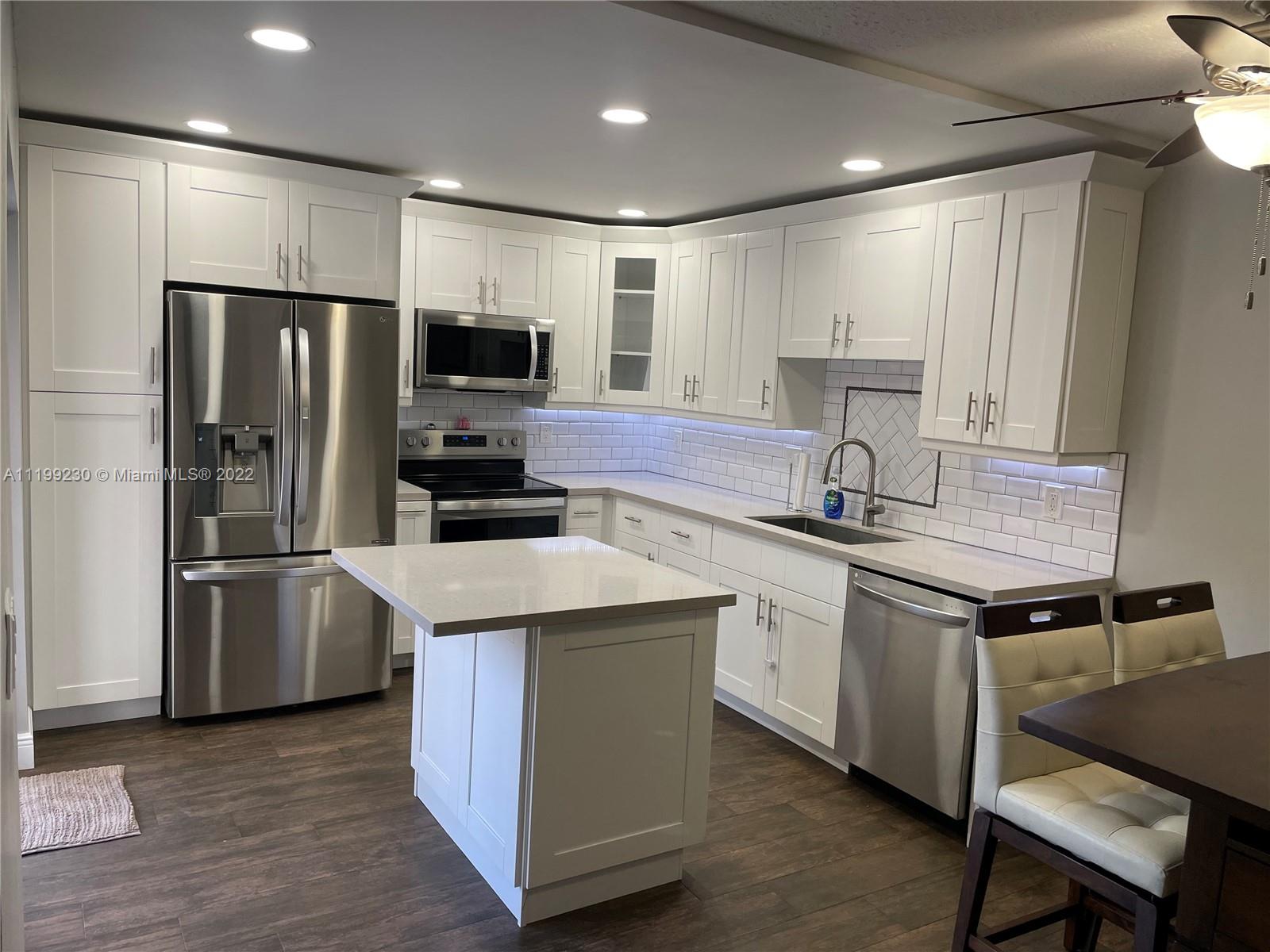 IMMACULATE FULLY UPGRADED THREE BEDROOMS TOWN HOME IN DESIRABLE COMMUNITY IN DAVIE. THIS PROPERTY FEATURES NEWER KITCHEN WITH WHITE WOOD SHAKER STYLE CABINETS, DESIRABLE QUARTZ COUNTER-TOPS, LED LIGHTING THROUGHOUT, TOP OF THE LINE LG APPLIANCES, ENGINEERED WOOD THROUGHOUT THE MAIN LIVING AREAS. NO CARPET! SPACIOUS MASTER BEDROOM WITH HUGE WALK-IN CLOSET, UPGRADED MASTER BATH WITH DUAL SINK, LARGE FRAMELESS SHOWER AND CUSTOM VANITY WITH QUARTZ COUNTER TOPS, AND TOP OF THE LINE FINISHES, ONE FULL SIZE BEDROOM DOWNSTAIRS, THERMA-TRU IMPACT FRONT DOOR AND NEW IMPACT SLIDING GLASS DOORS ALL THROUGHOUT THE HOUSE, ALLOWING YOU TO GET MAXIMUM INSURANCE CREDIT. LOW PROPERTY TAXES!!! ENCLOSED PRIVATE PATIO, FAST APPROVAL AND PETS WELCOMED.