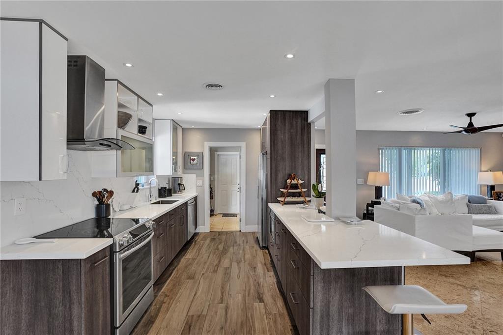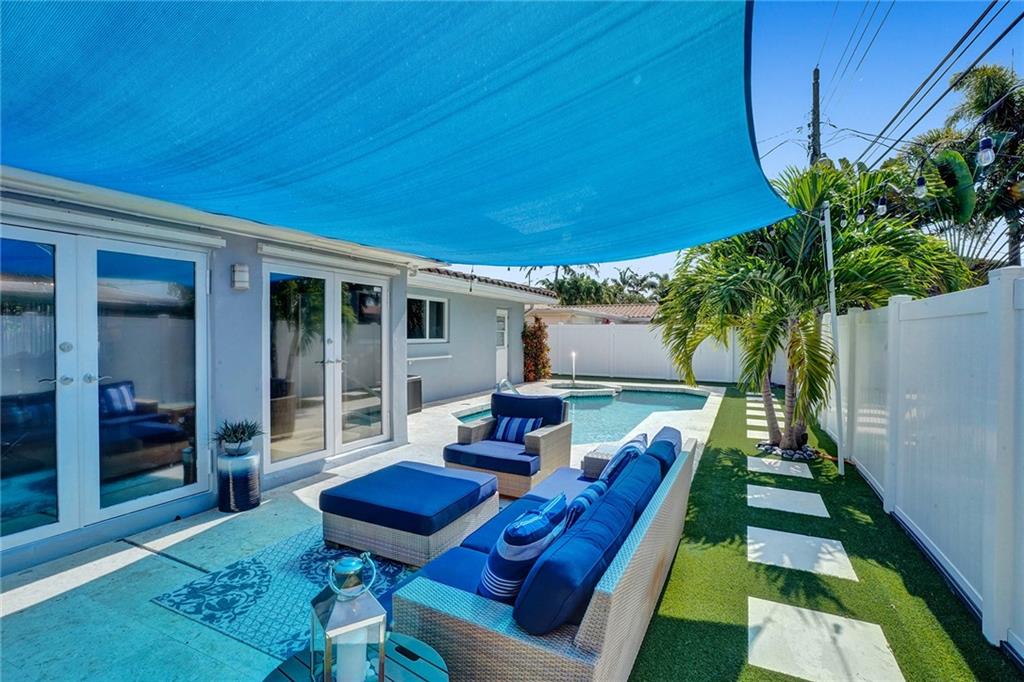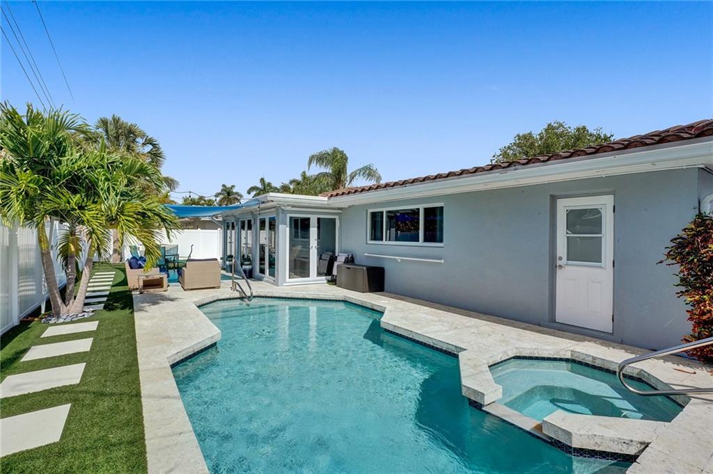 THE HOME YOU HAVE BEEN WAITING FOR! Beautifully updated 2 bedroom 2 bath in desirable Imperial Point offering a spacious and open floorpan. Great central location close to restaurants, shopping, entertainment and the beach. Stunning outdoor space with custom heated pool and spa, turf and multiple sitting areas. Updated kitchen, lighting and flooring designed with a clean modern decor. Restored terrazzo in the bedrooms, ample closet space and storage. Laundry room with desk area leads to a 1 car garage. Recent flat roof replacement, impact windows updates, newer appliances, hot water heater and HVAC system. The owners have taken care of this home and you can see that as soon as you arrive. Dont miss this opportunity to own a gem in East Fort Lauderdale.