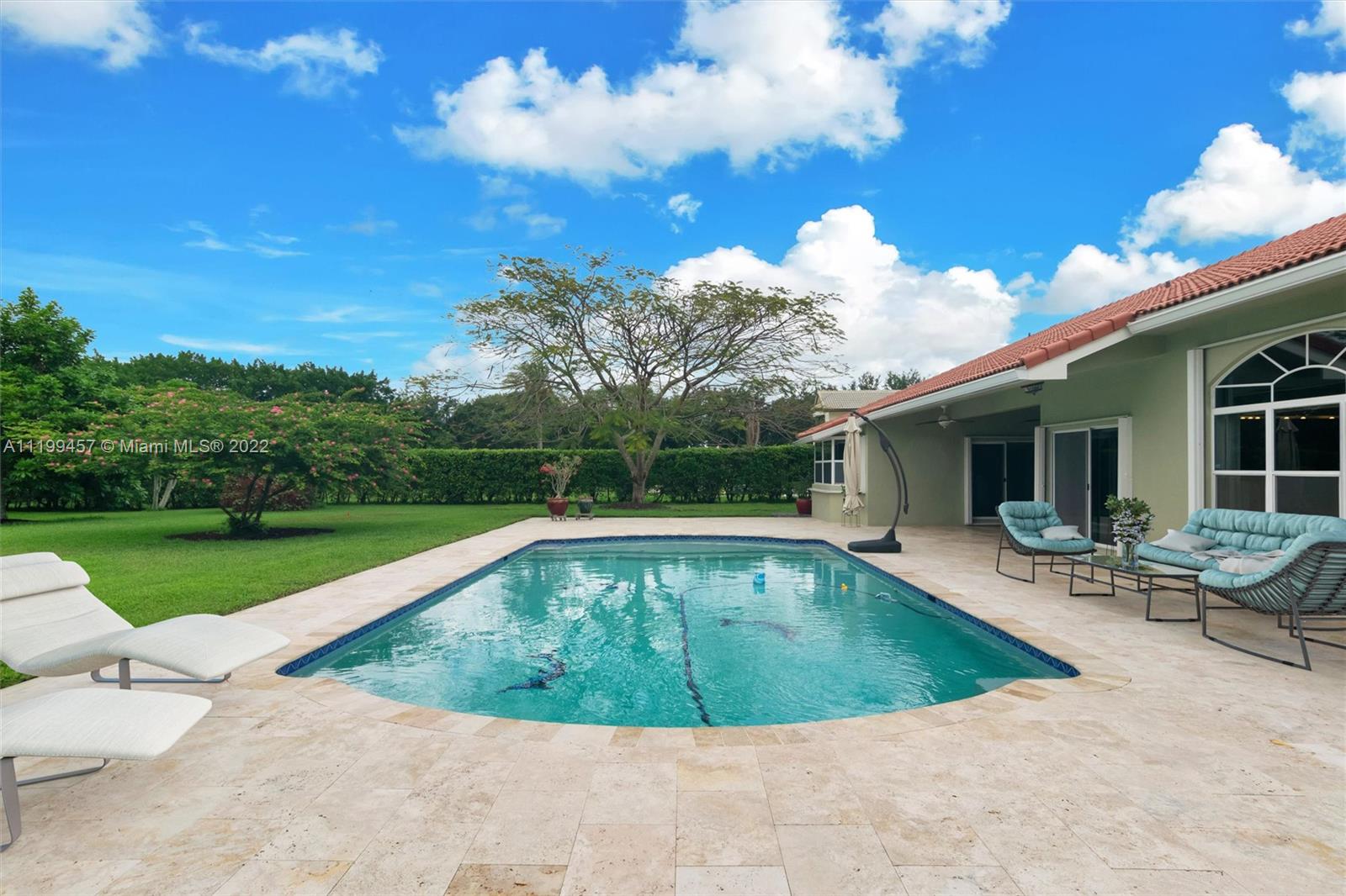 Nestled among one of Davie's best kept secret gated enclaves - Mystique Estates and situated on a quiet cul-de-sac, amongst lush landscapes, sits this stunning executive estate. Upon entering, quickly visitors are swept away by the pristine, freshly painted (2022), entertainers dream. Over-looking a resort-style pool (40X20), fruit and flowering trees, sprawling over an over-sized acre, only begins to set the scene for stunning sunsets. The main suite features two large walk-in closets that anyone would envy, and a spacious ensuite with garden tub and separate large walk-in shower. A split bedroom plan, affords plenty of privacy. Flex space can be a fourth bedroom or work-from-home. Wind protection, new PEX plumbing (2022), 2 EV charging stations, newer AC (2020), tankless water heater.