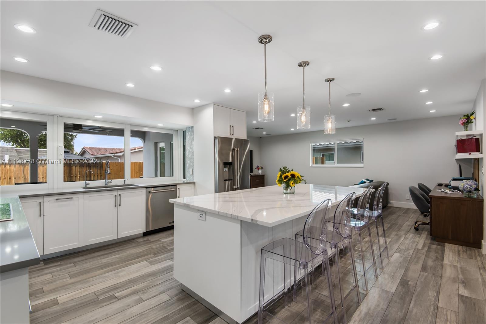 A rare, modern and completely remodeled masterpiece is finally available in the coveted Emerald Hills section of Hollywood. The home is move-in ready and has it all! Stunning chef's kitchen, Italian Porcelain Floors, updated bathrooms, large master bedroom with pool view, and all high end finishes. The property's roof, A/C's, electrical, plumbing, PGT impact windows and doors were all installed/completely replaced within the last few years, with proper permits. The home has LED lighting throughout, JBL speakers inside and outside, smarthome app features, hybrid water heater and spray foam insulation. The large and zen backyard has new travertine pavers and a pool that was recently resurfaced and re-tiled. Large two car garage comes ready for an electric car. Will GO, ACT FAST!