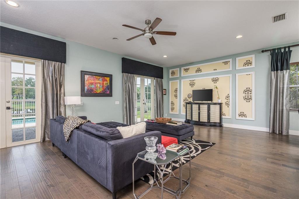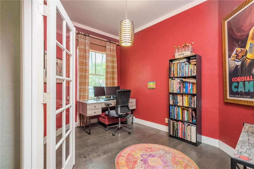 This house has the best location! Located on a cul-de-sac, you have a quiet neighborhood surrounded by a beautiful lake. This pie shaped lot gives you the space to have your dream backyard with complete privacy. Enter the house to the 4th bedroom/office with glass french doors. Keep going into the large great room with a massive updated kitchen featuring floor to ceiling custom cabinetry, stainless steel appliances including a built in double oven, and a gigantic island. Enjoy the beautiful wood floors throughout the living areas and beautiful newer carpet in the master and one of the guest rooms. This house has everything and is ready for you!