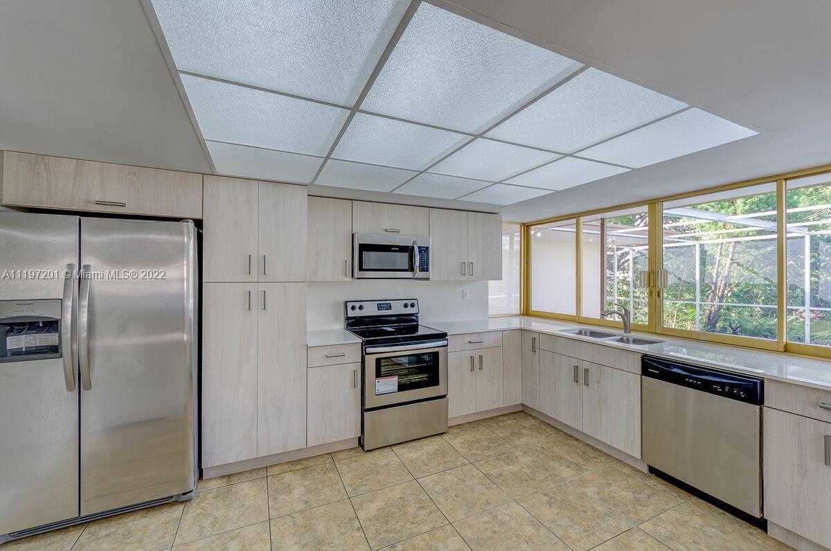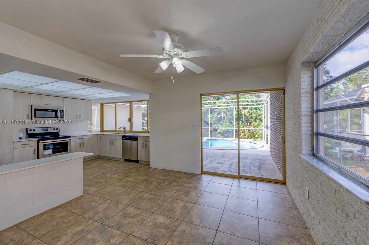 Spacious Pool home features 3 Bedrooms /2Bath with 1 Car Garage. The bright living room & renovated eat-in kitchen with stainless steel appliances, a double sink, a beautiful view from the kitchen window, and sliding door access to outdoor space. Ceiling fans and Wood/Tile Floors throughout. Great for entertaining with screened pool. There is a short distance to Hard Rock Stadium and Hard Rock Guitar/ Casino, easy access to the interstate FL Turnpike.